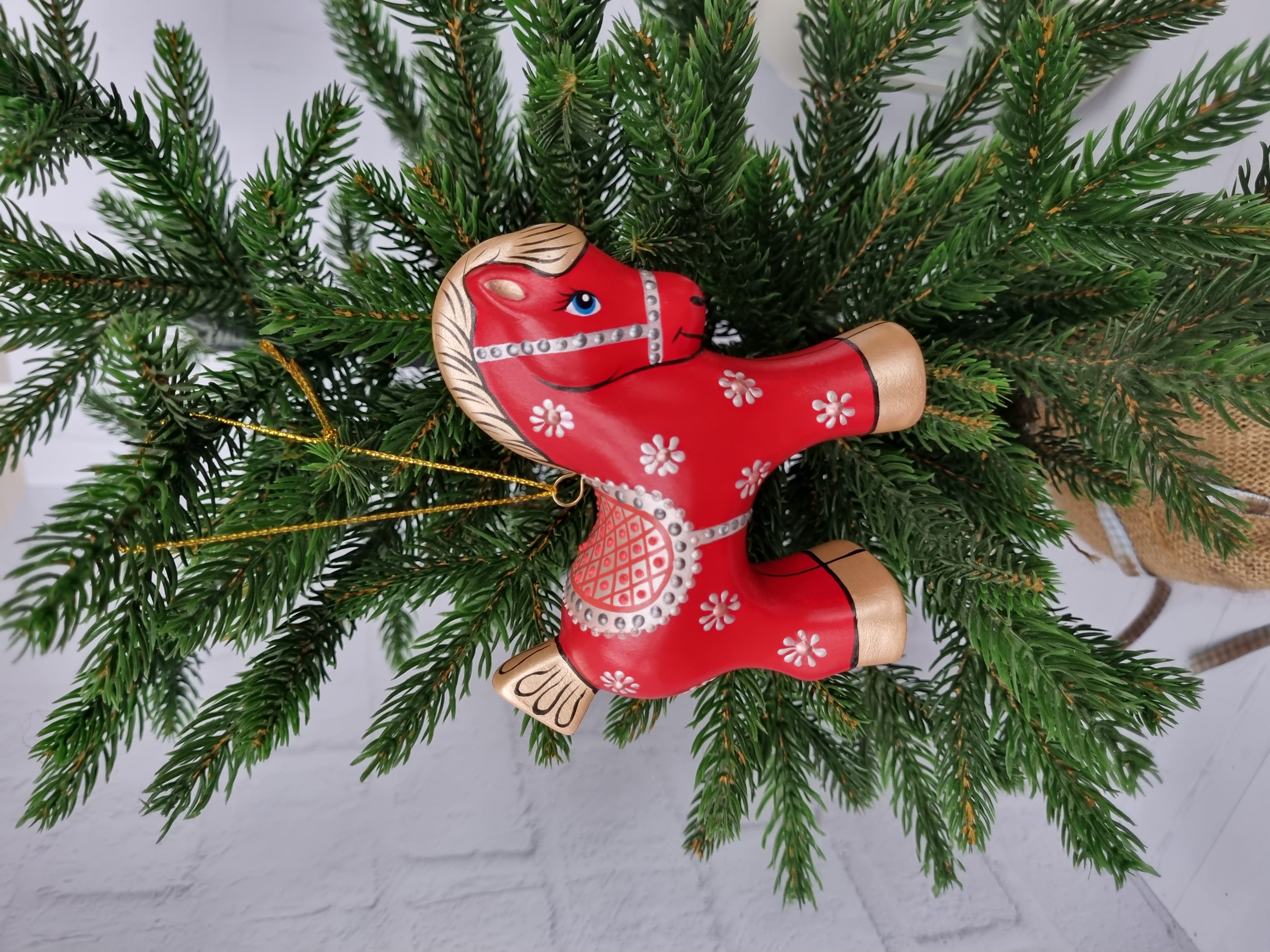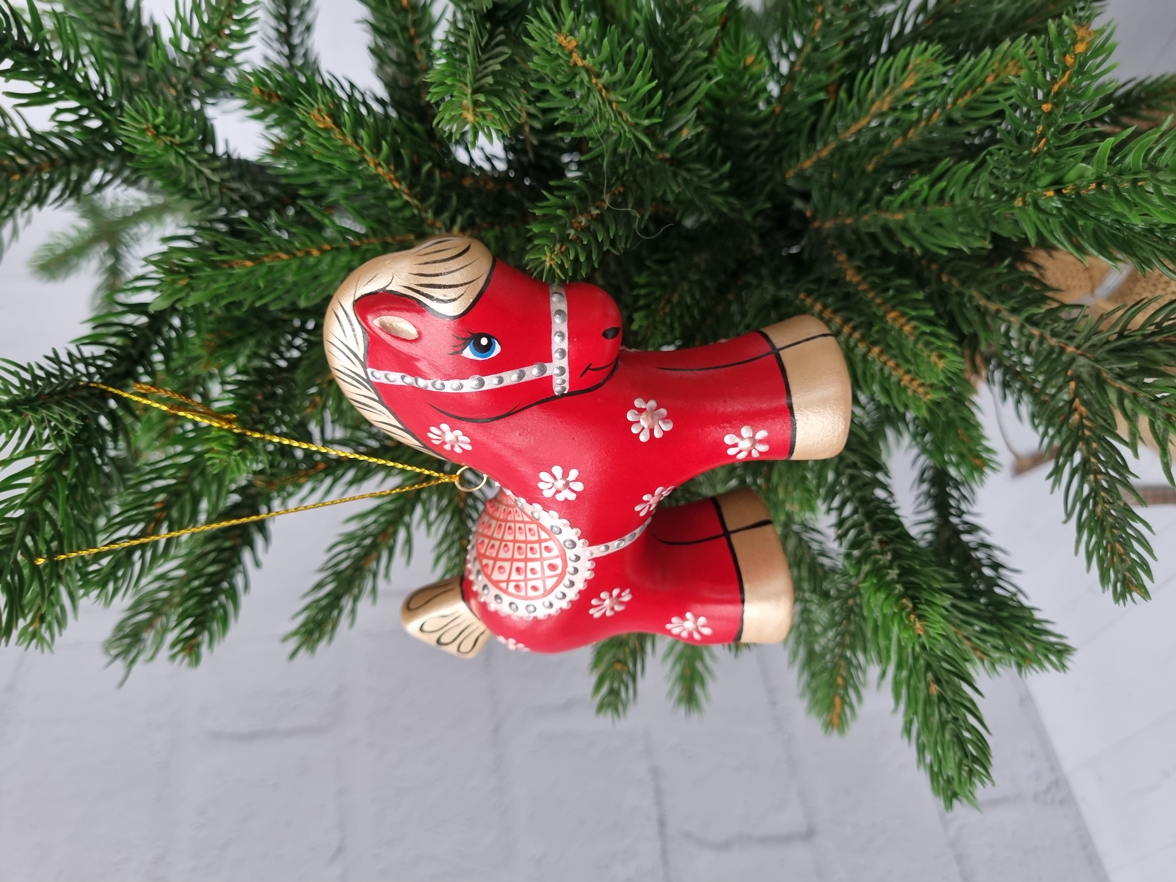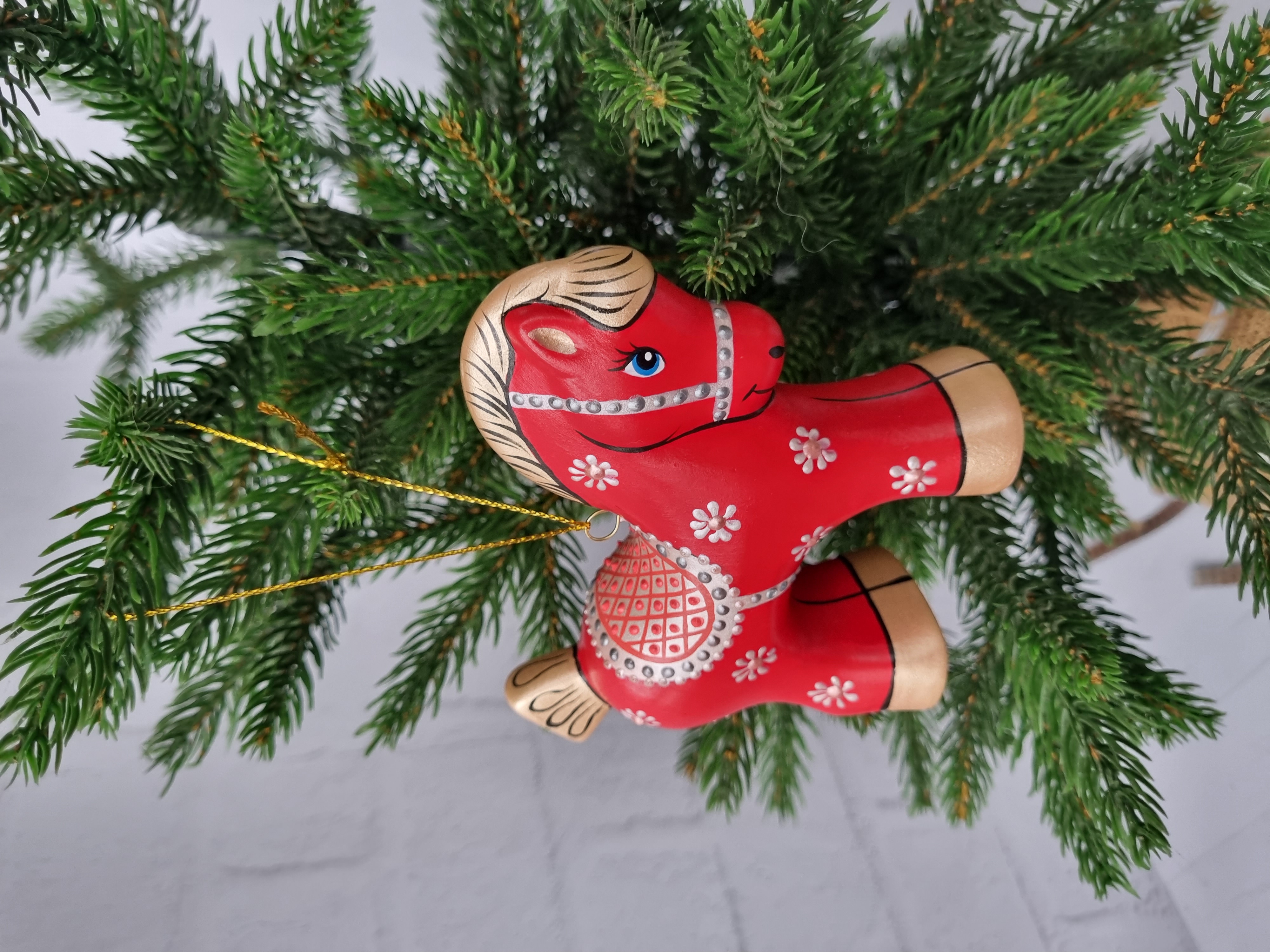 Конь-Огонь ёлочная игрушка из фарфора