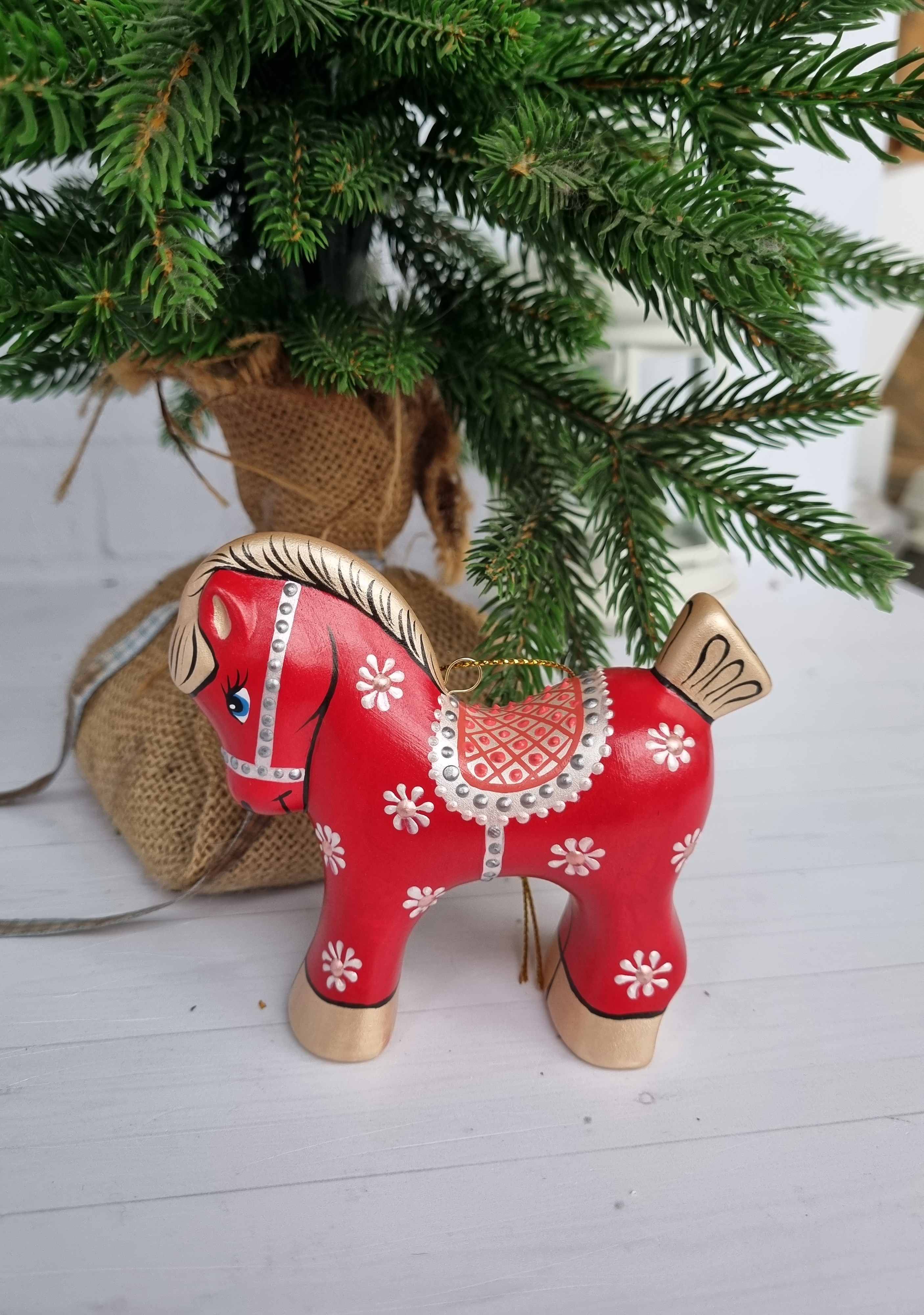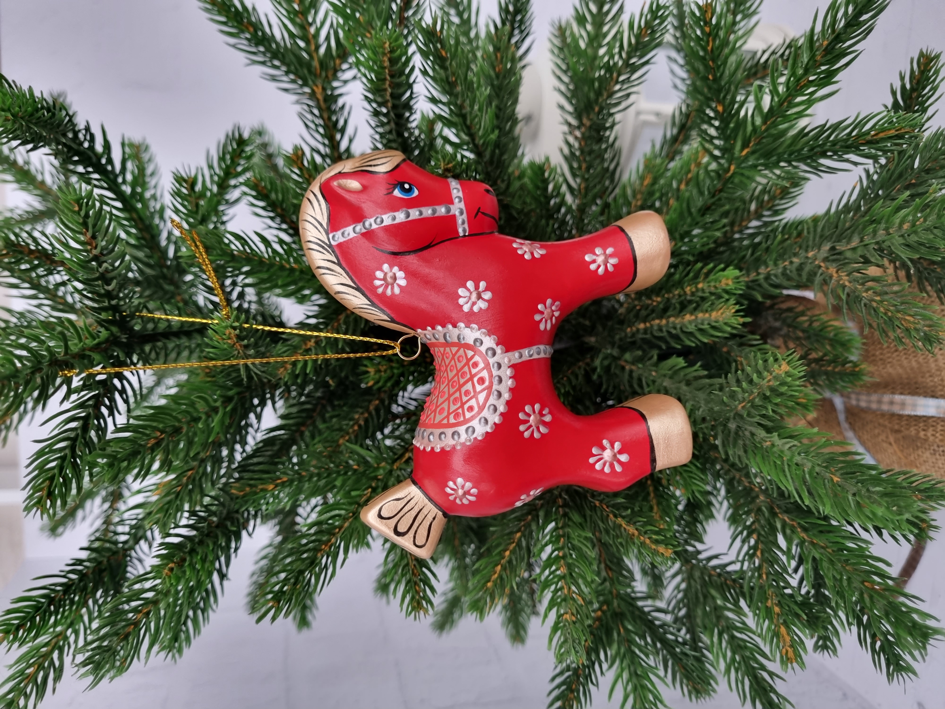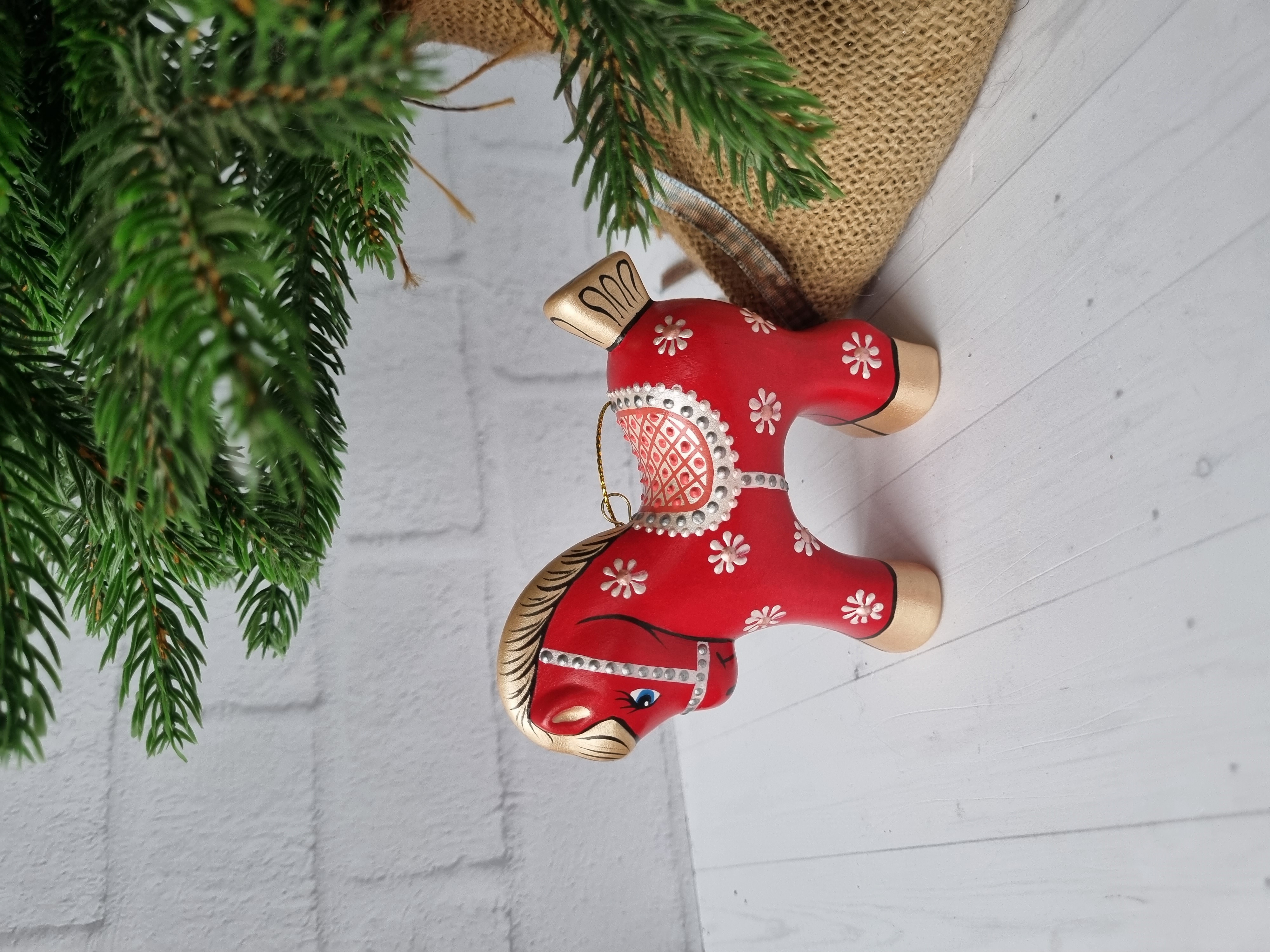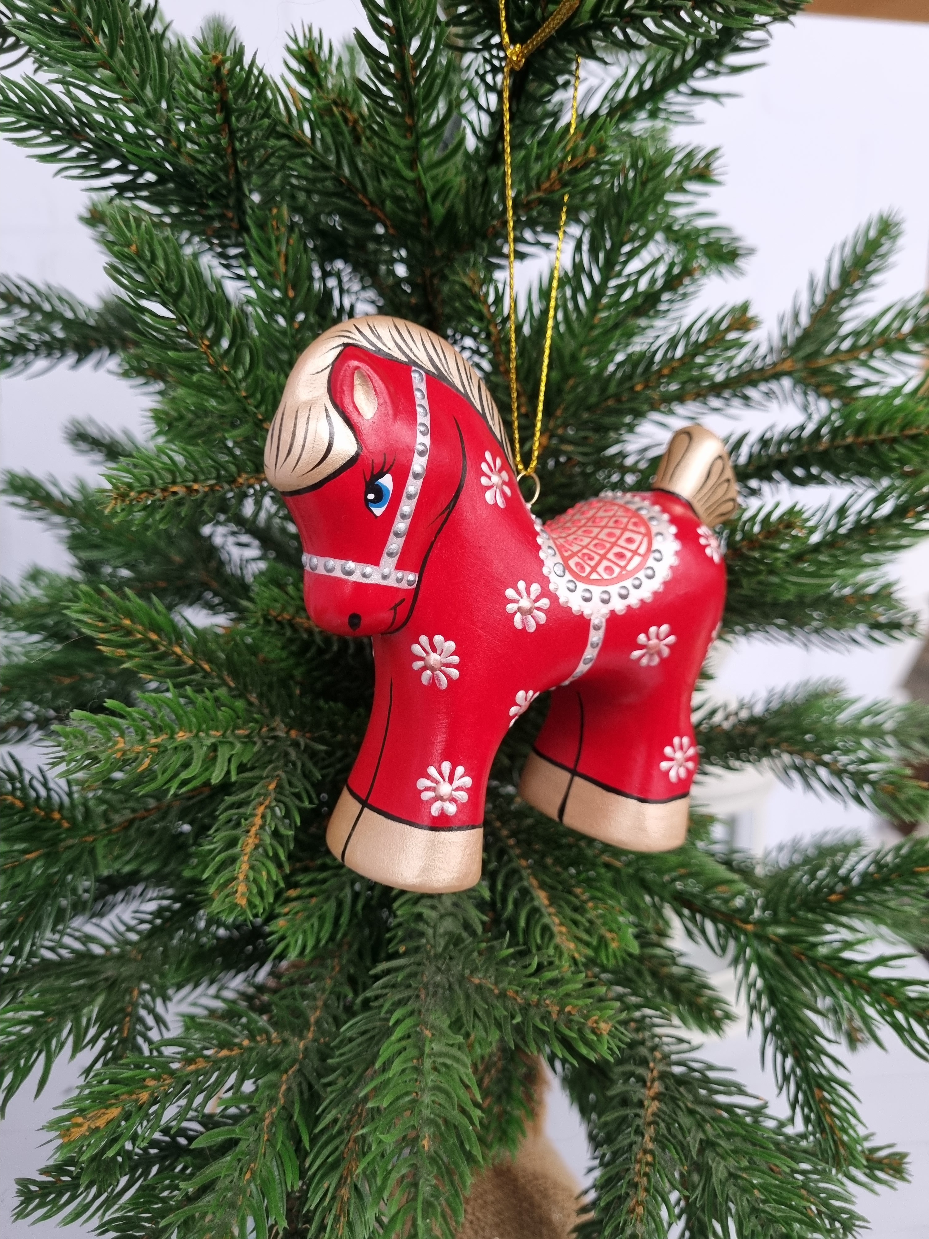 Конь-Огонь ёлочная игрушка из фарфора