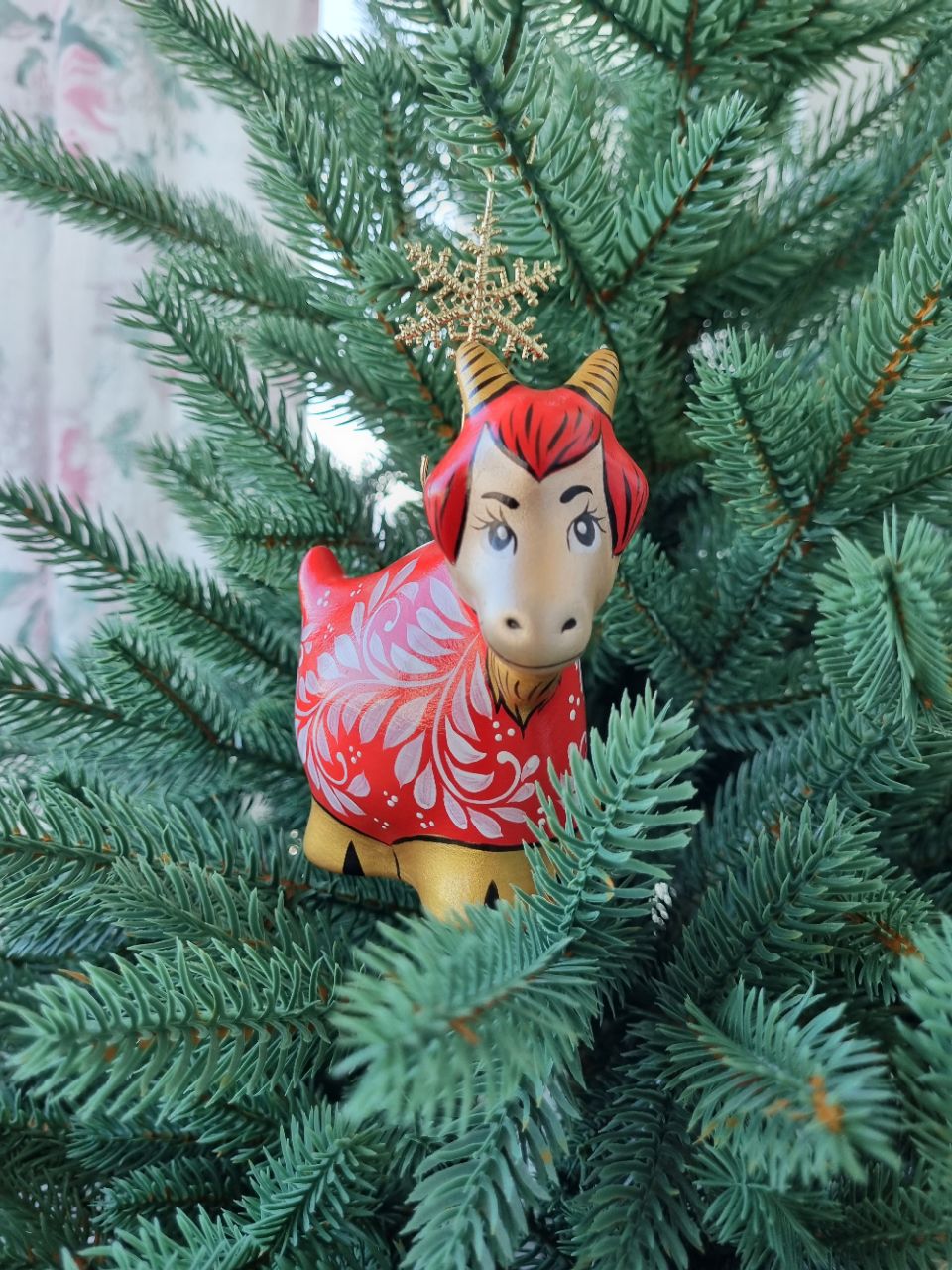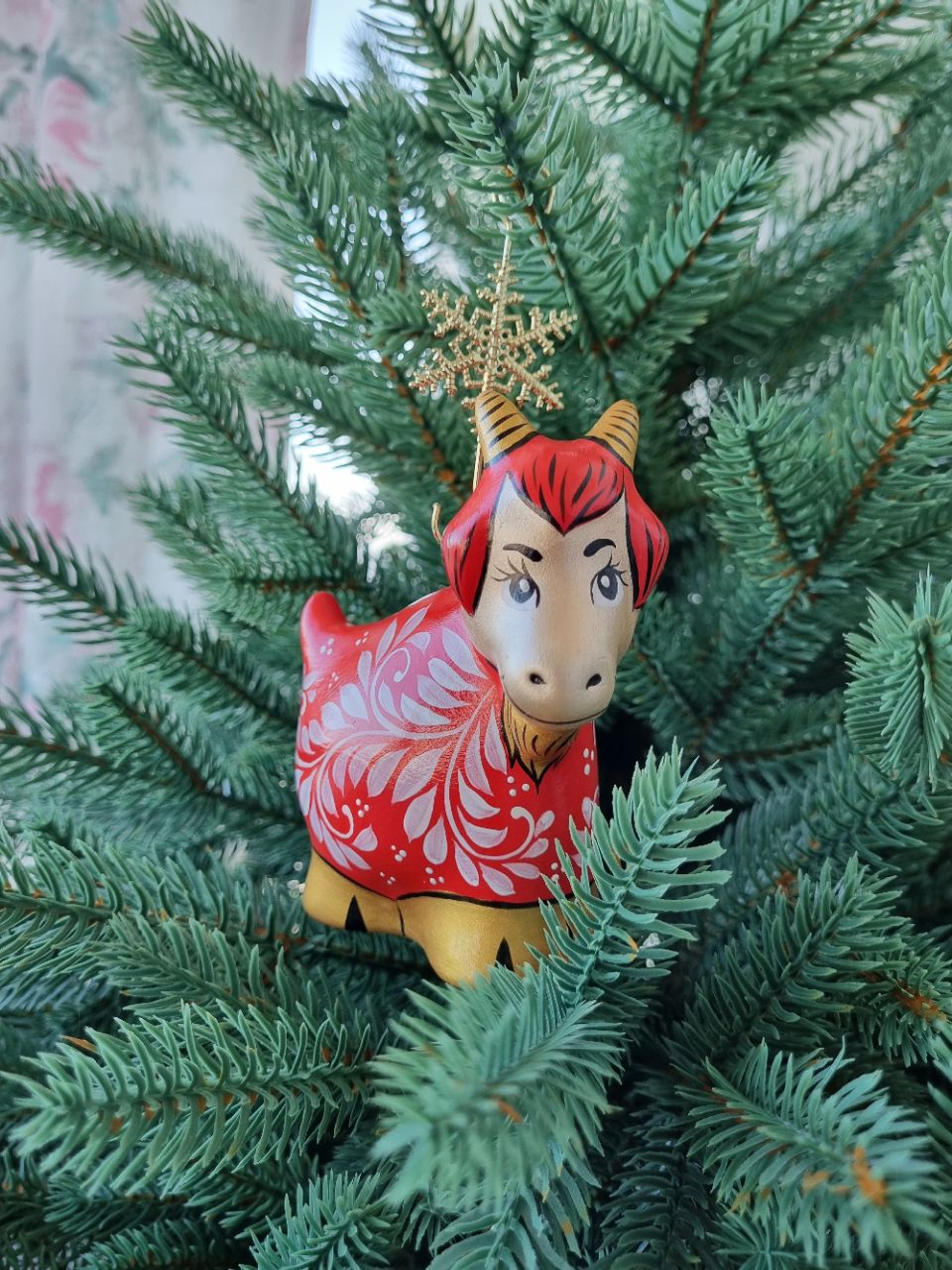 Фарфоровая игрушка огненная коза