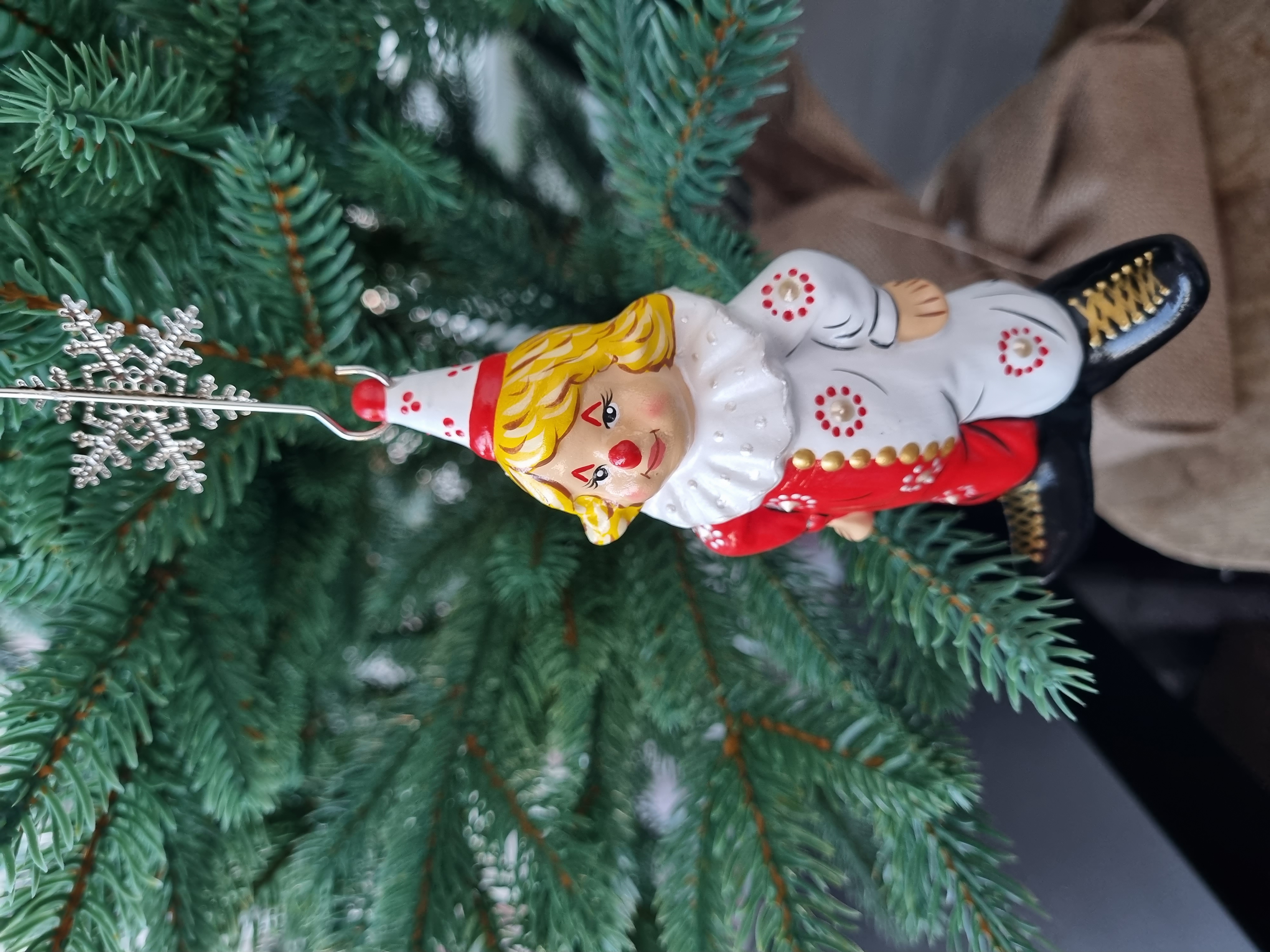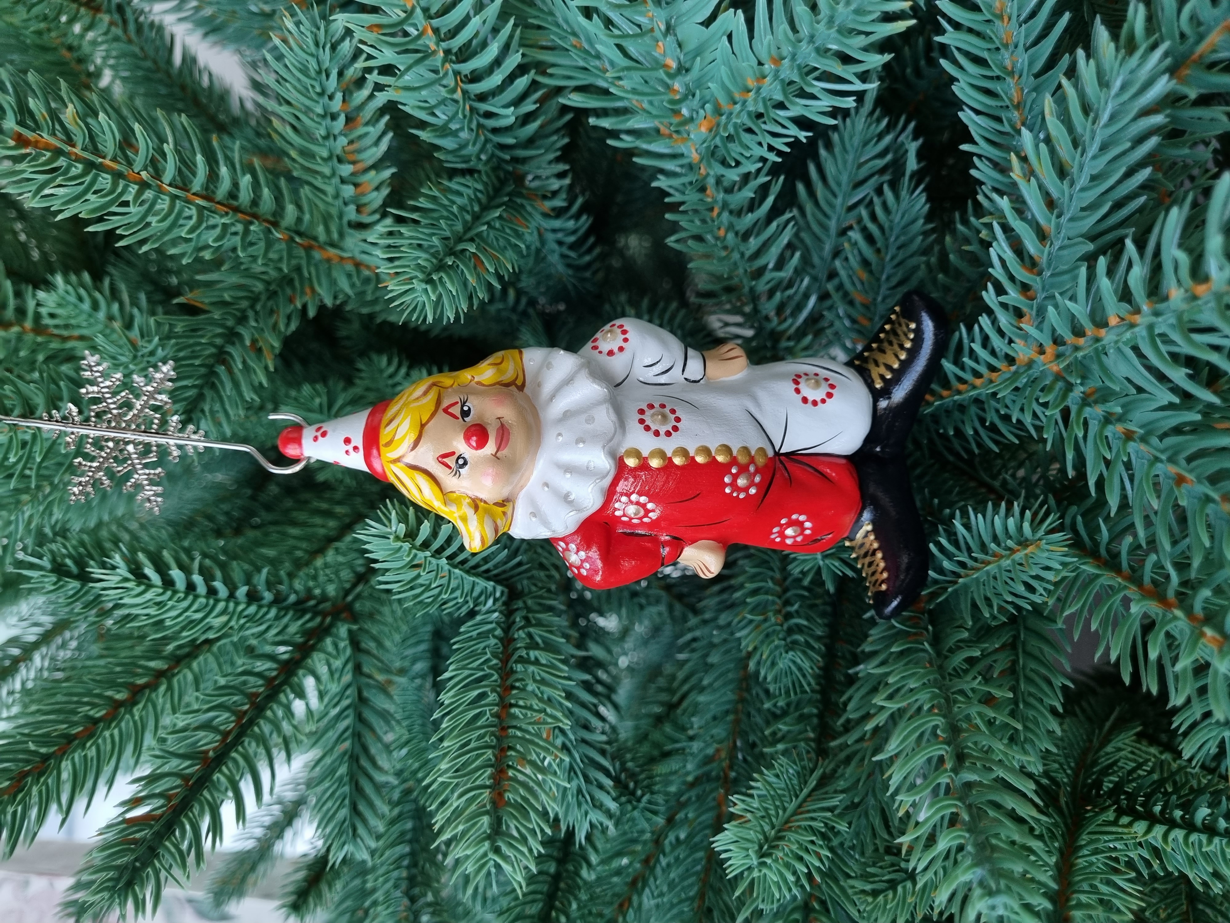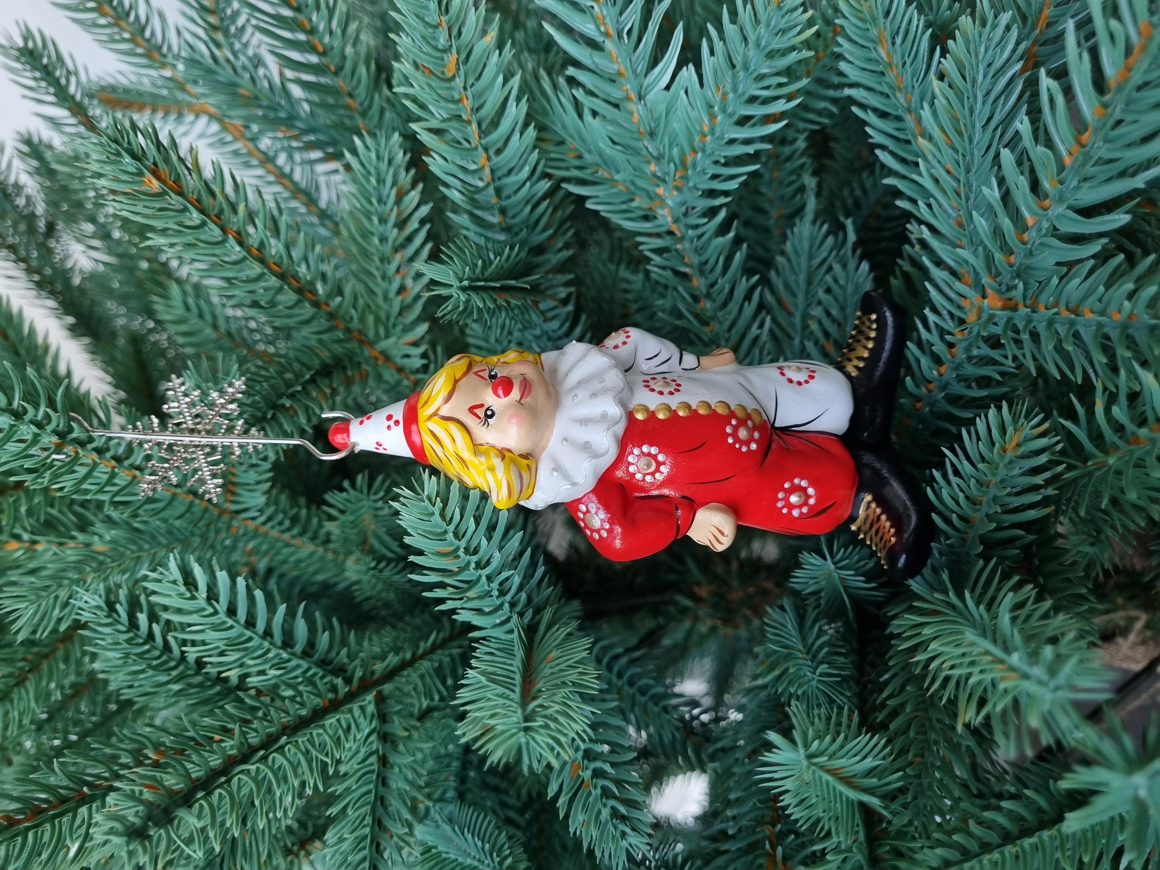 Клоун в красно- белом костюме