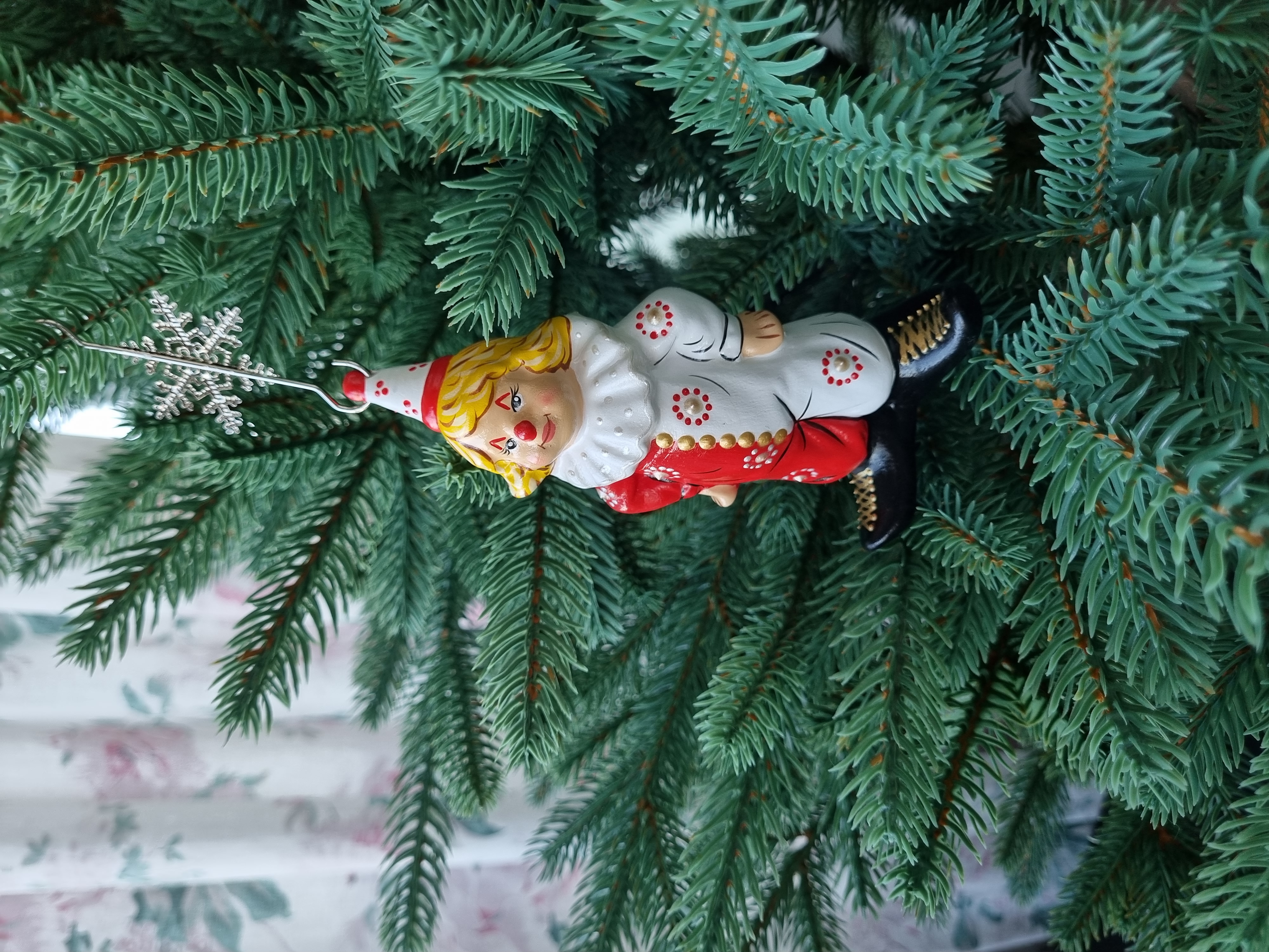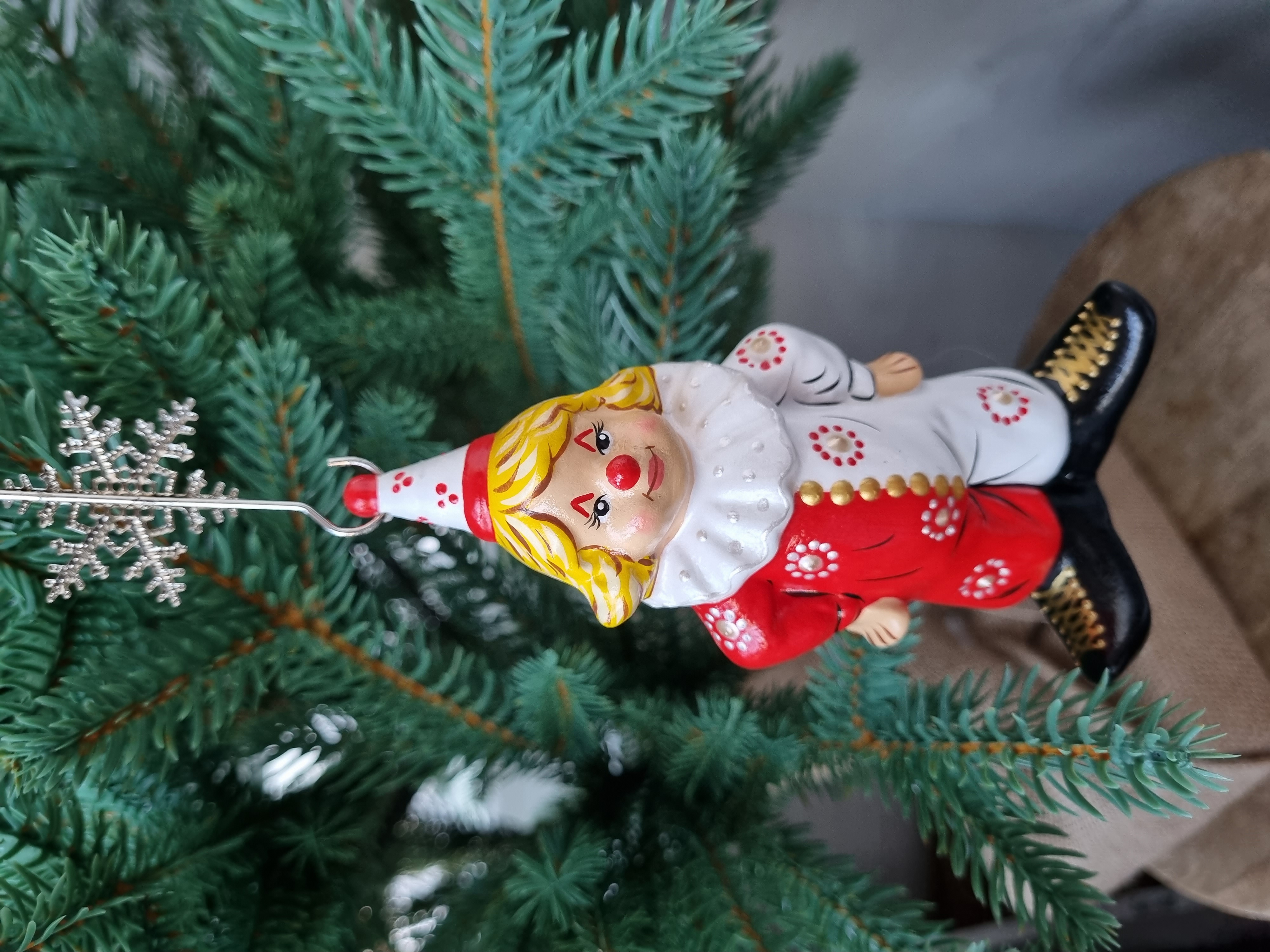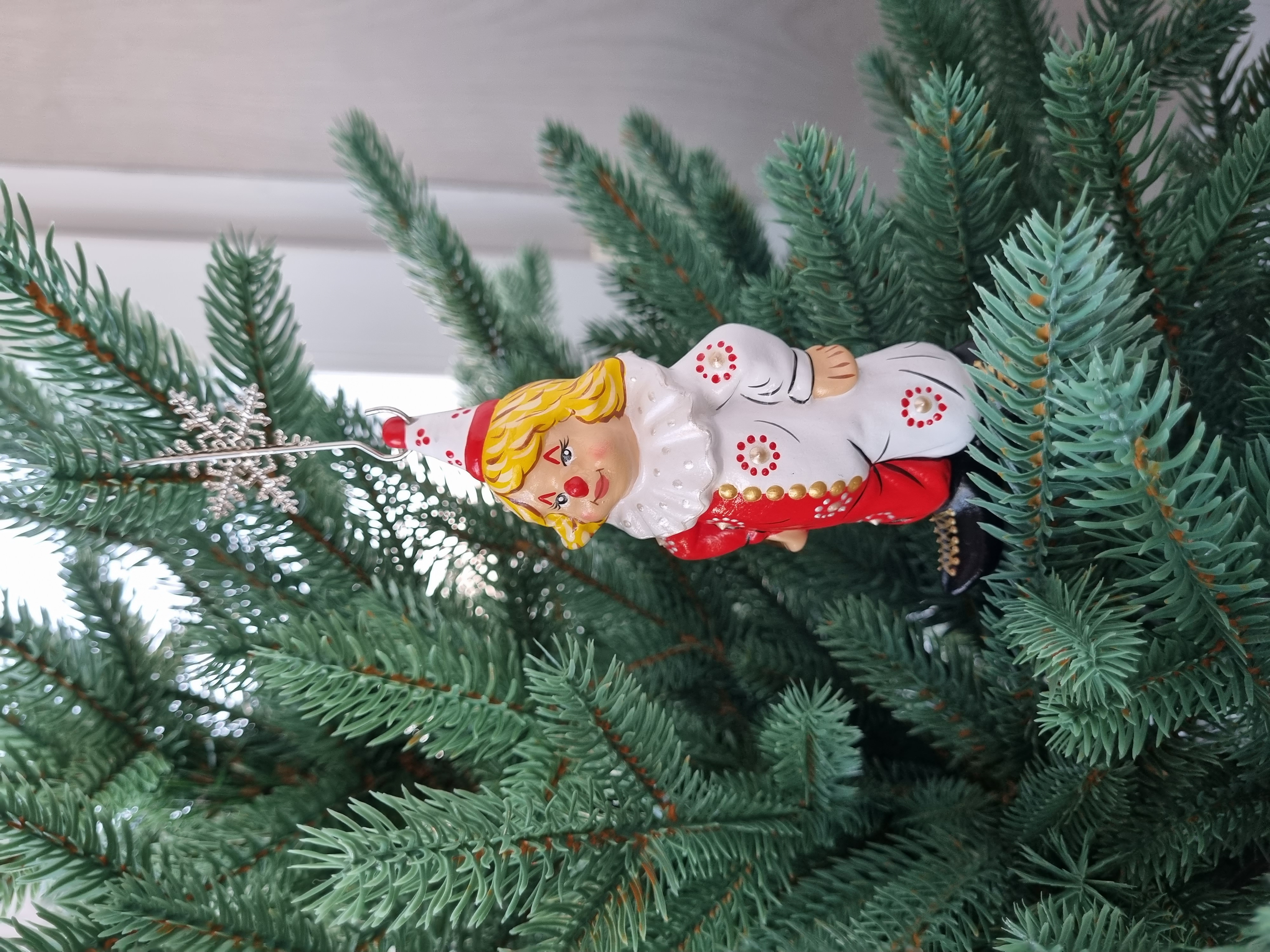Клоун в красно- белом костюме