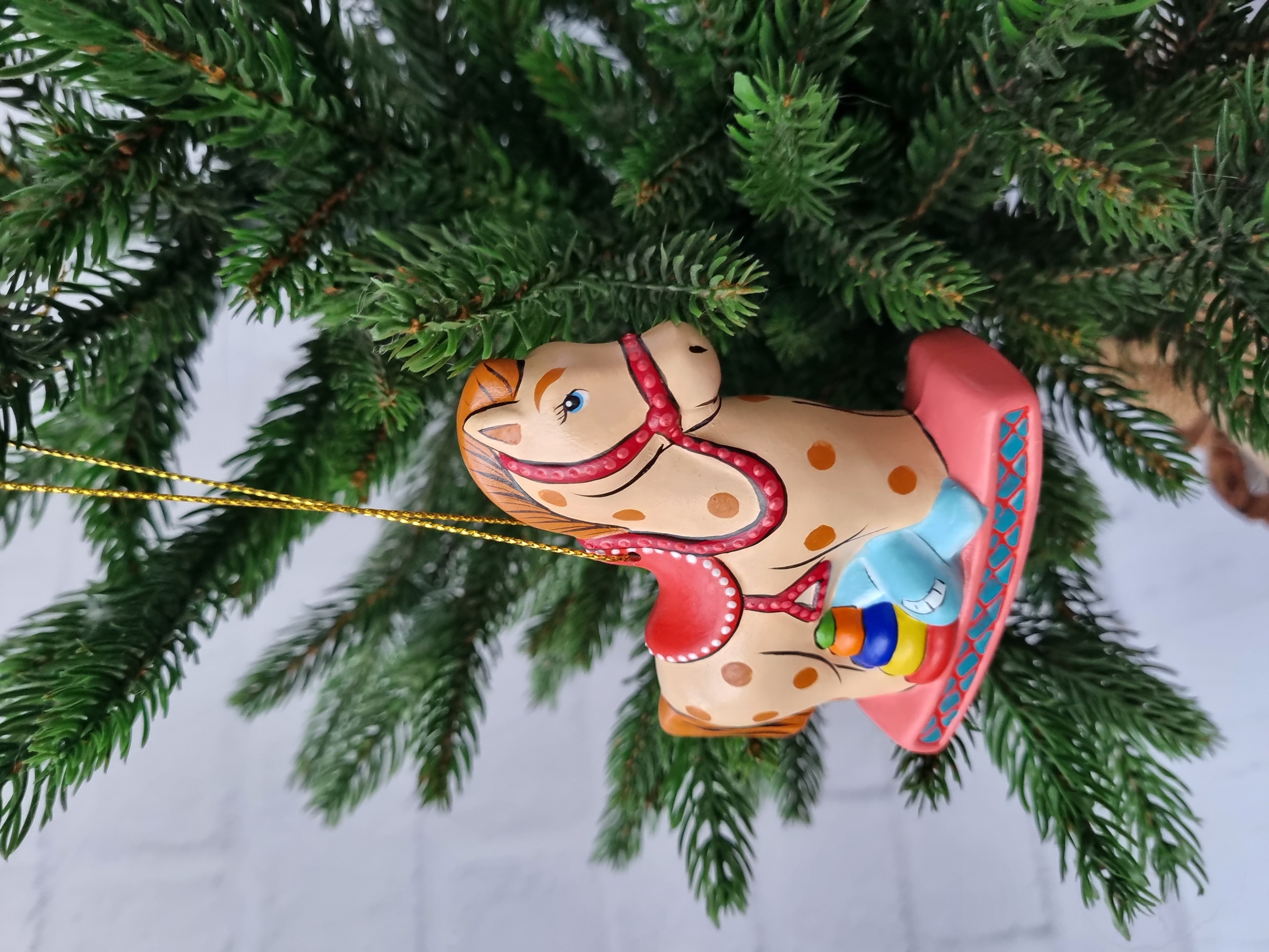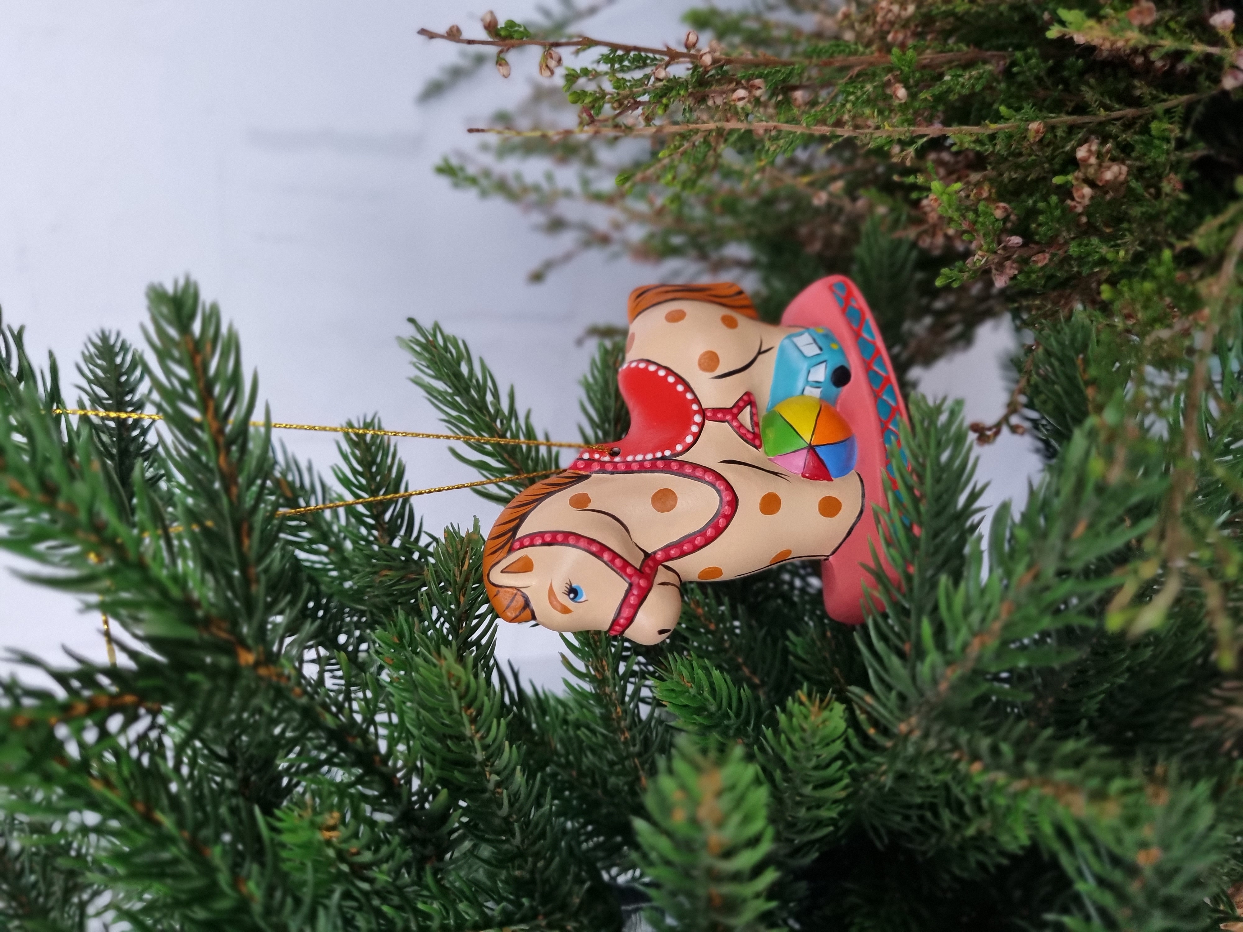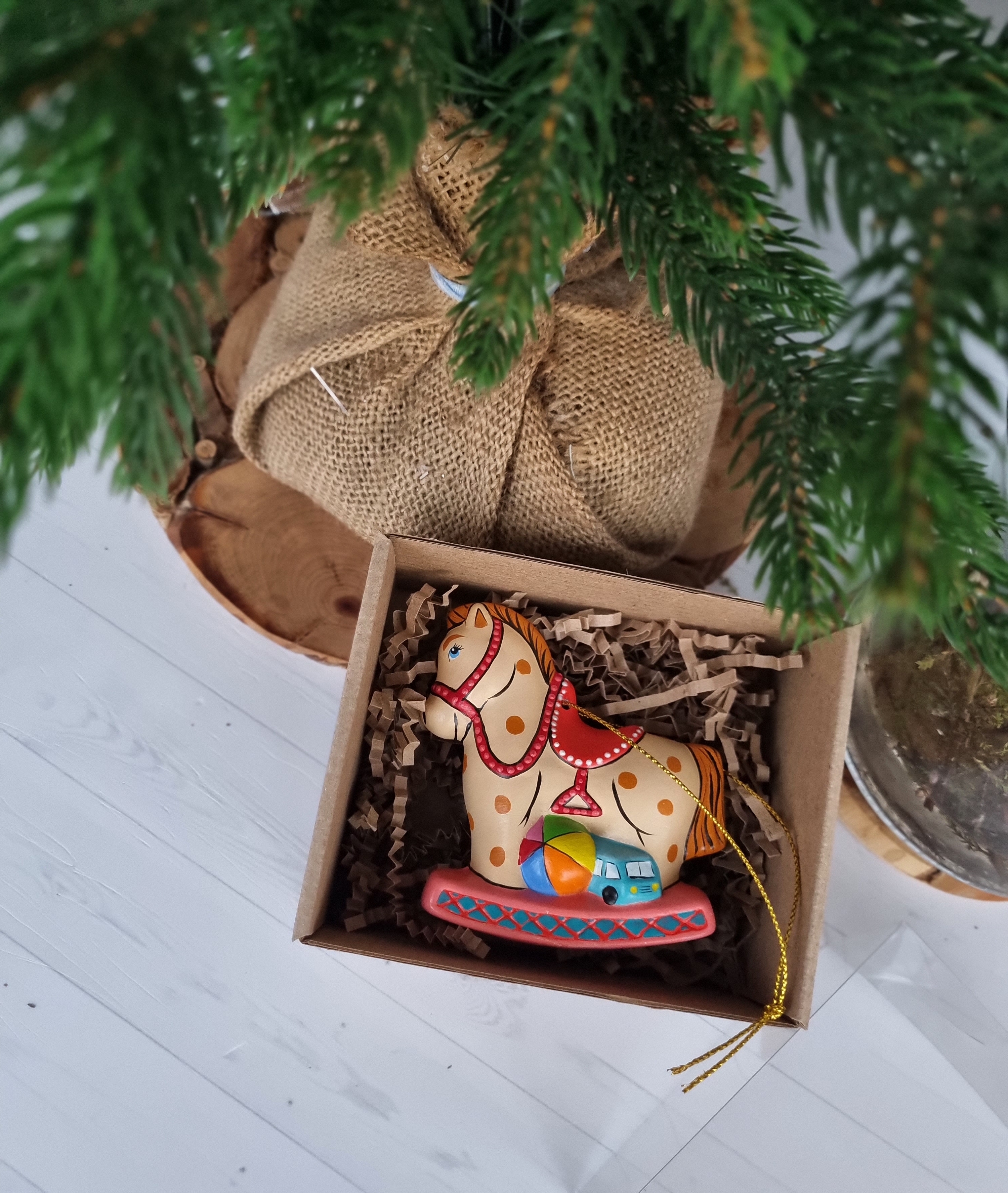 Лошадка с игрушками ёлочная игрушка из фарфора