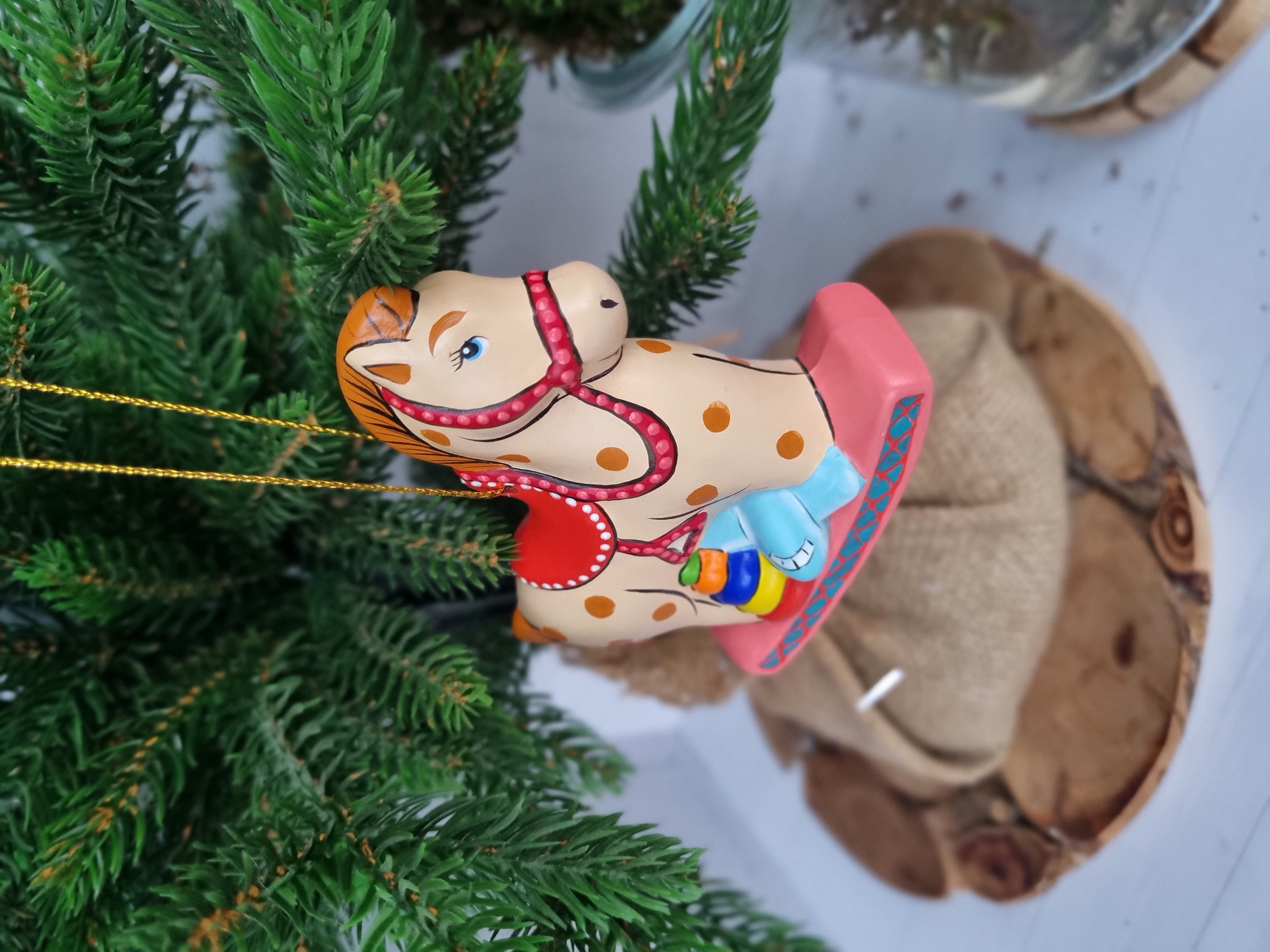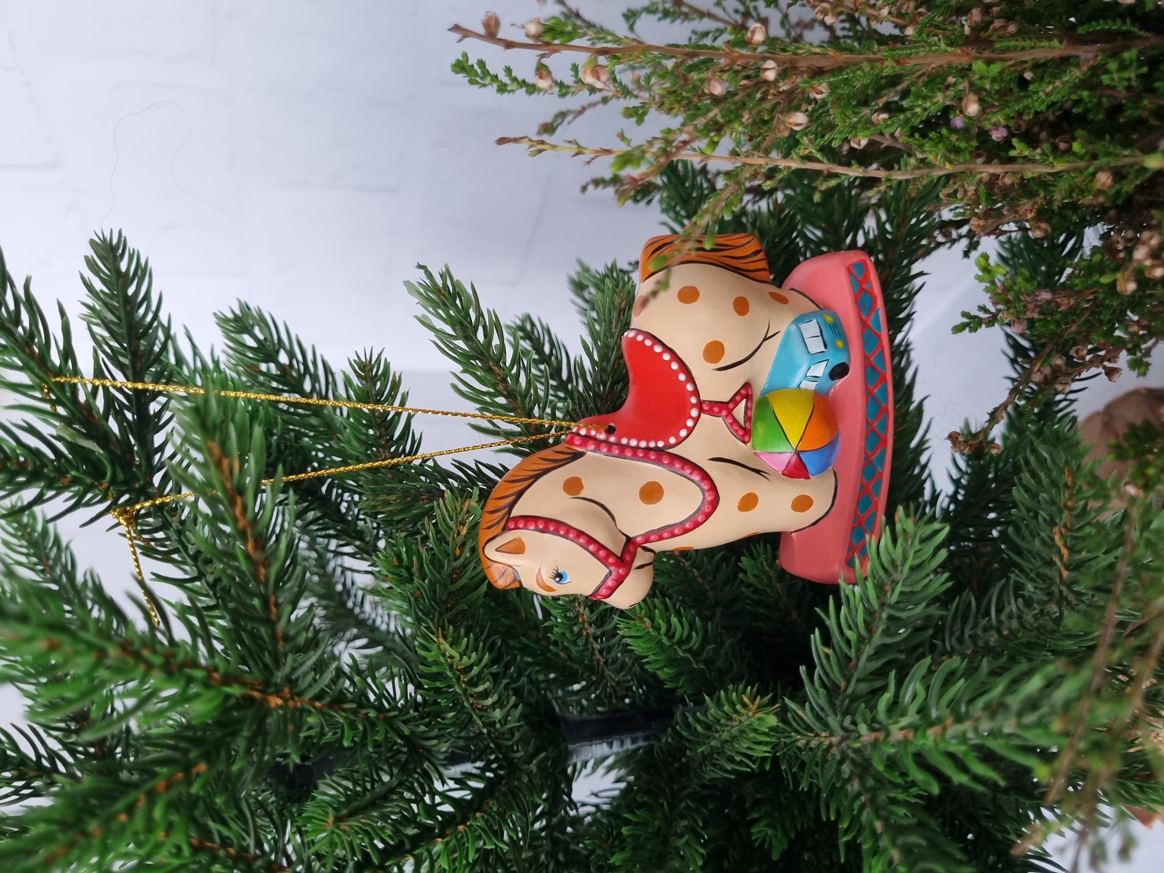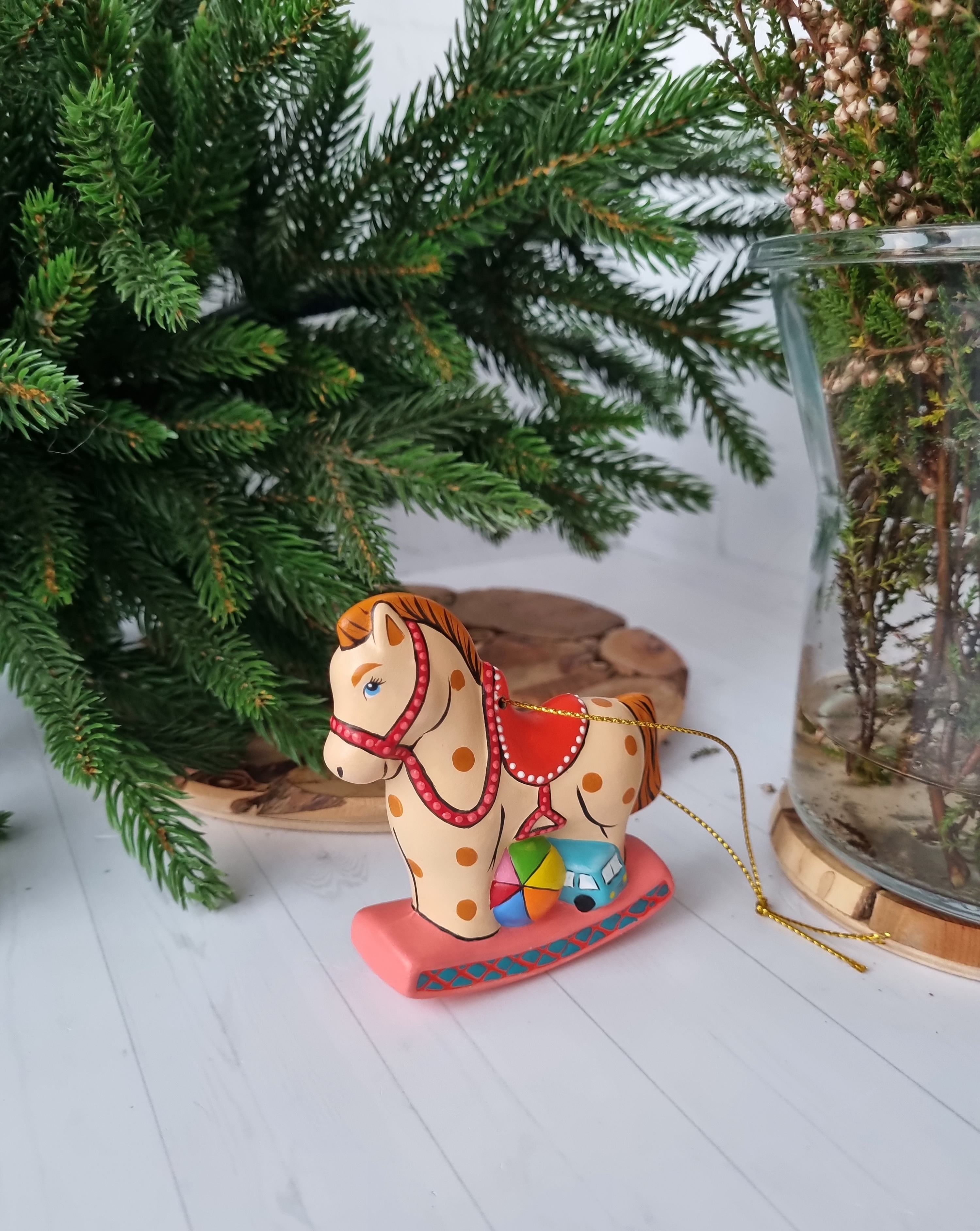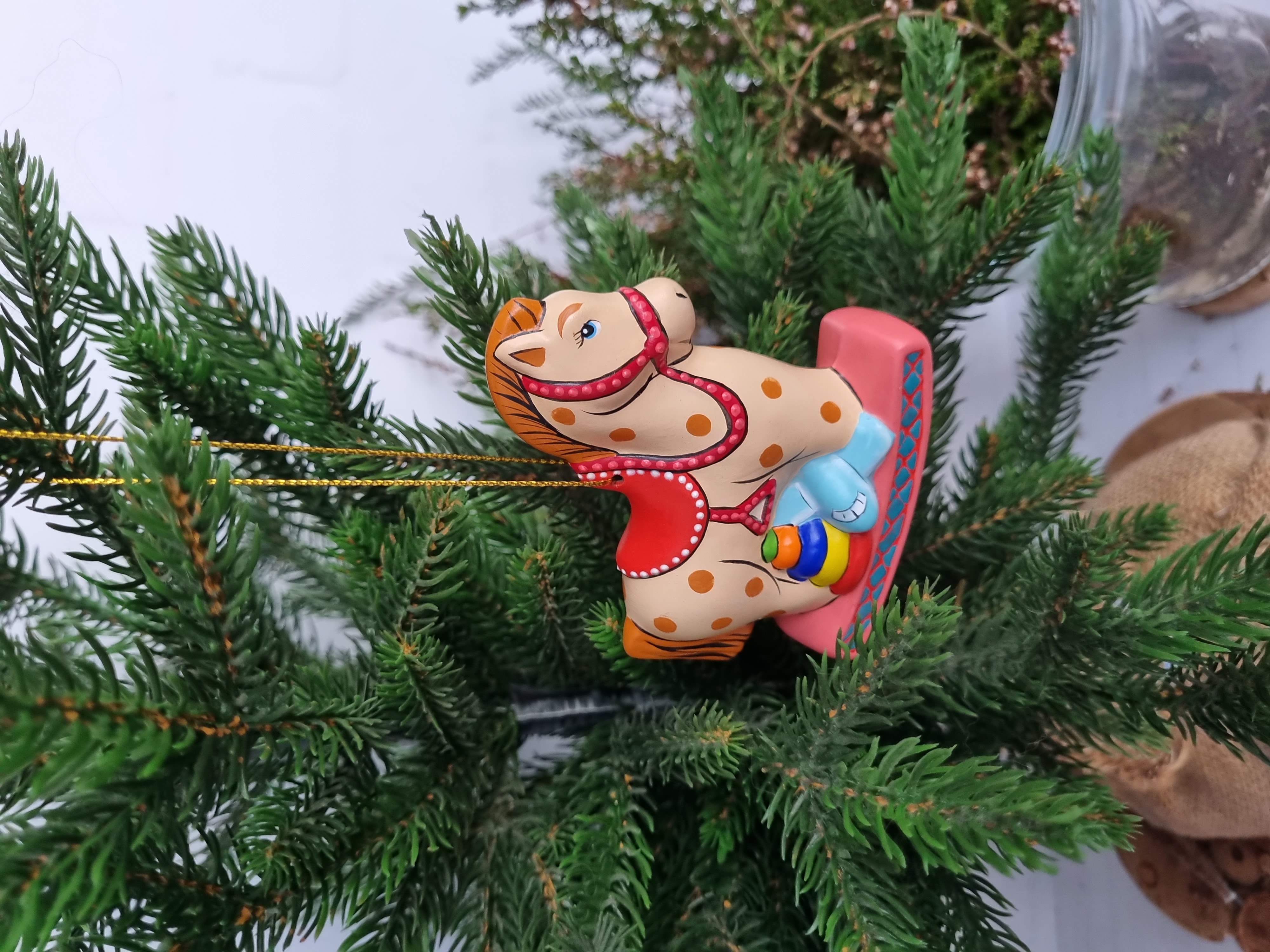 Лошадка с игрушками ёлочная игрушка из фарфора