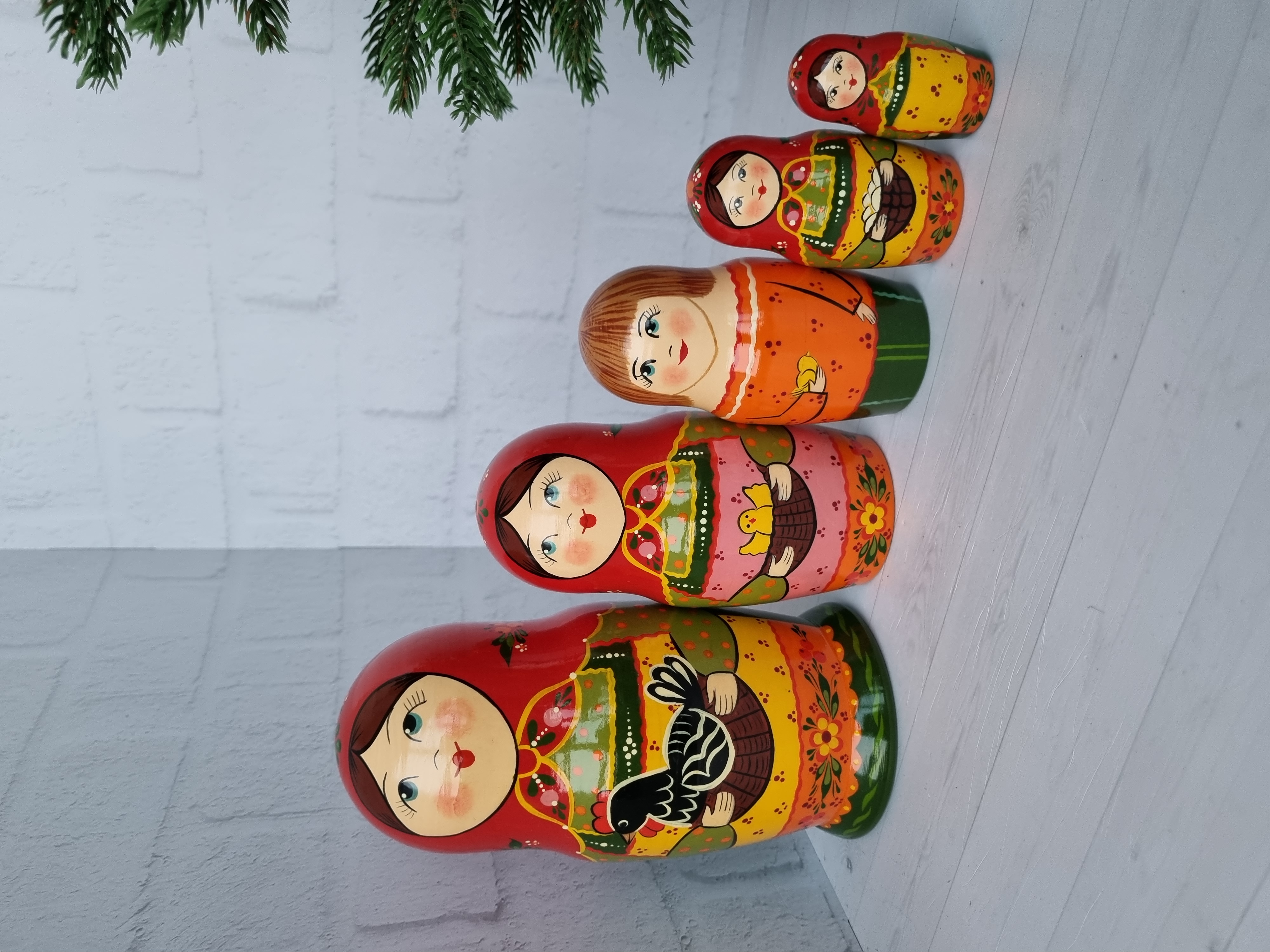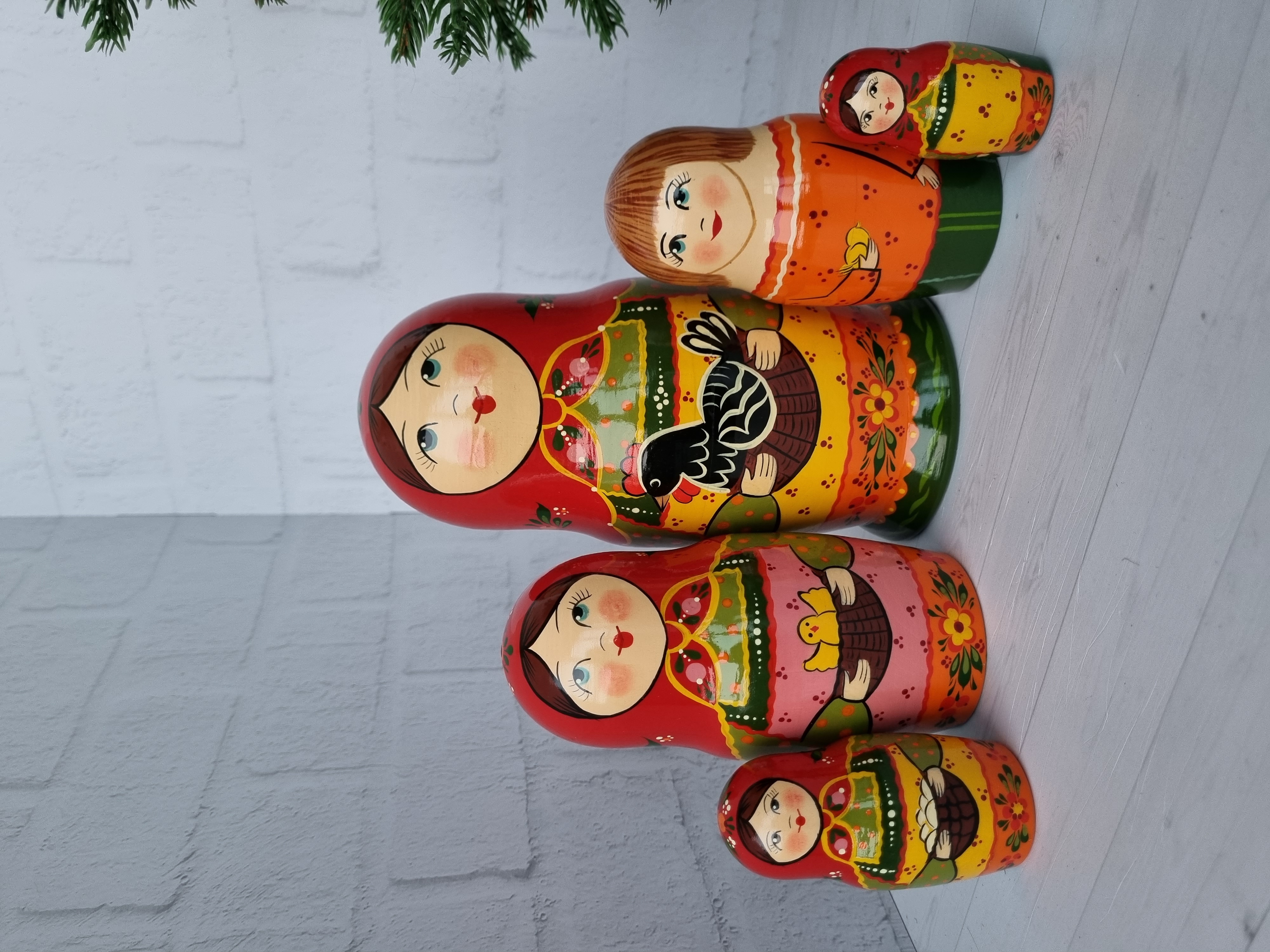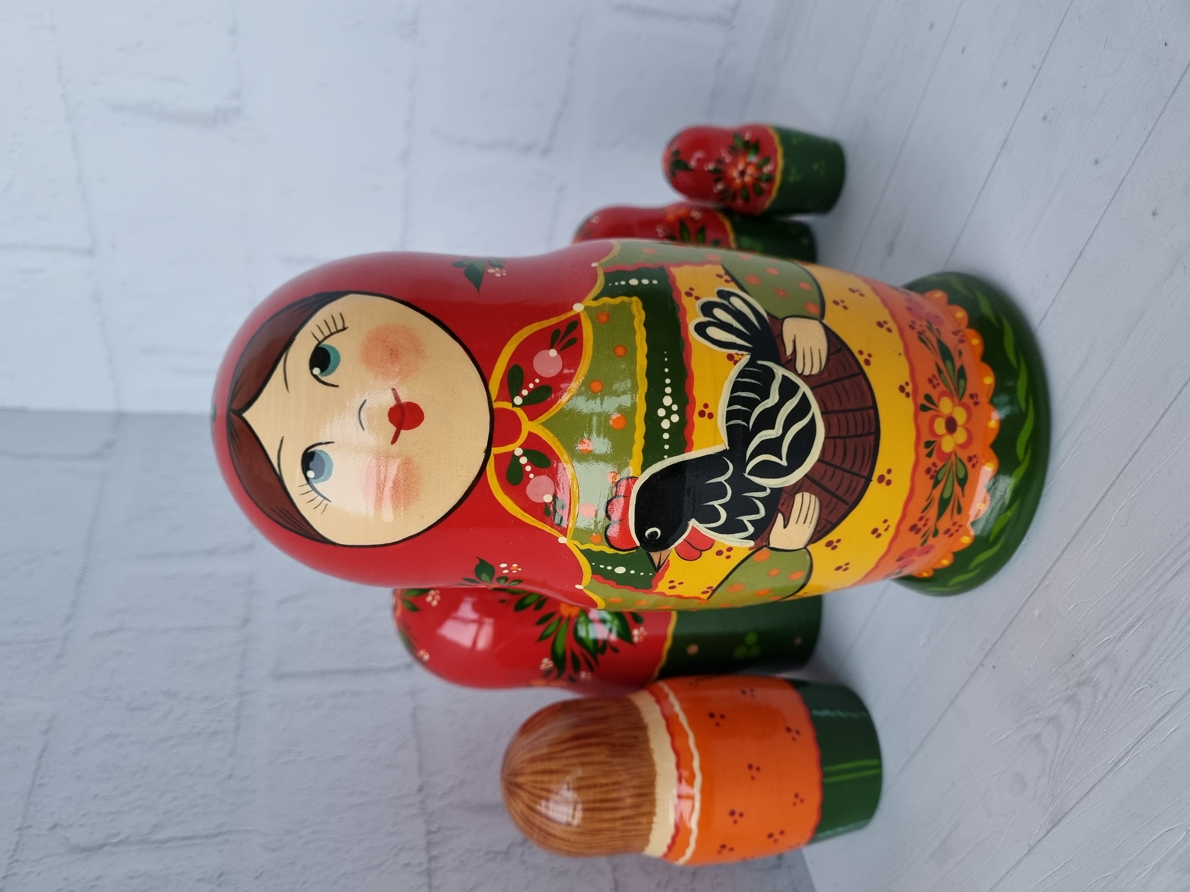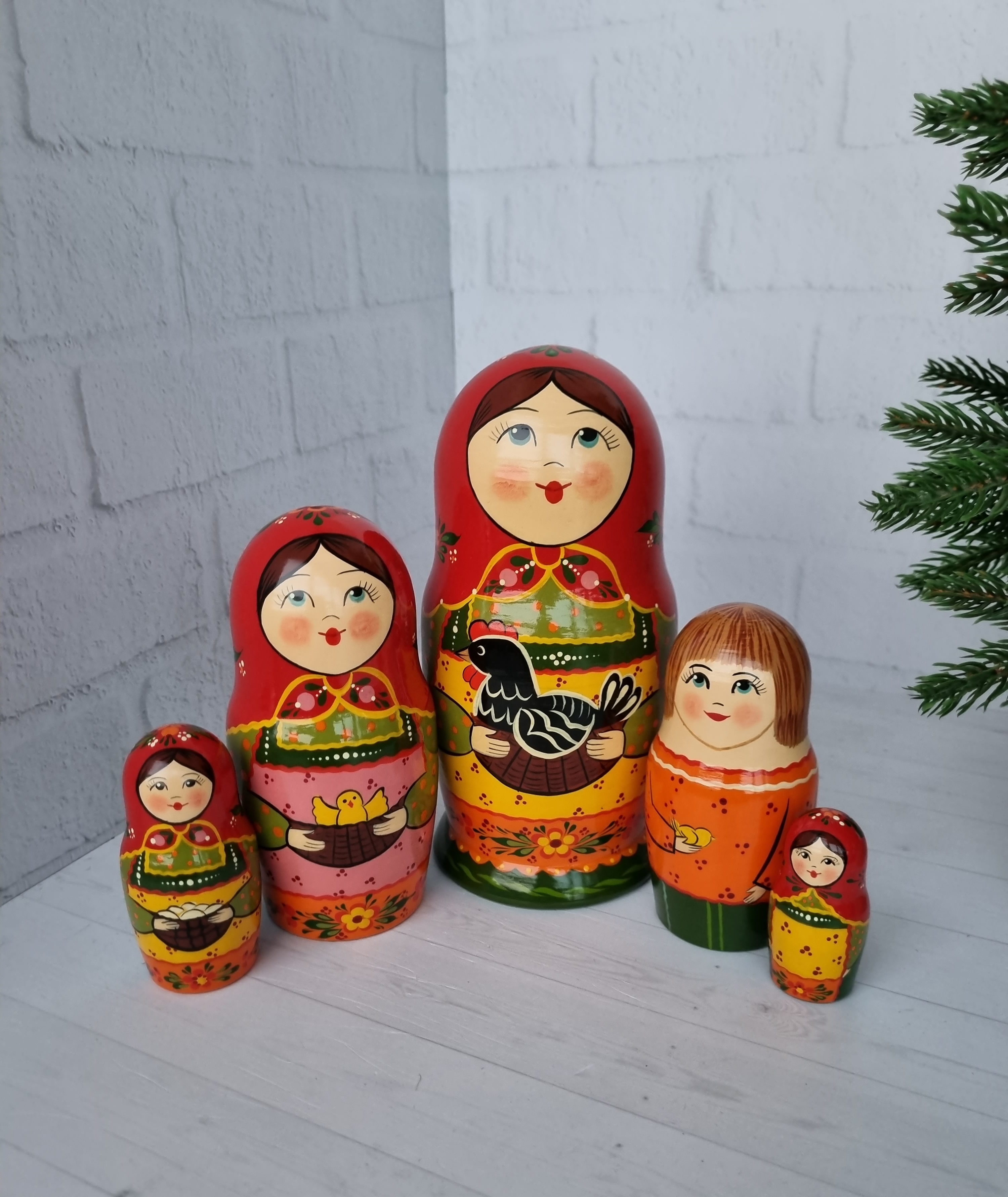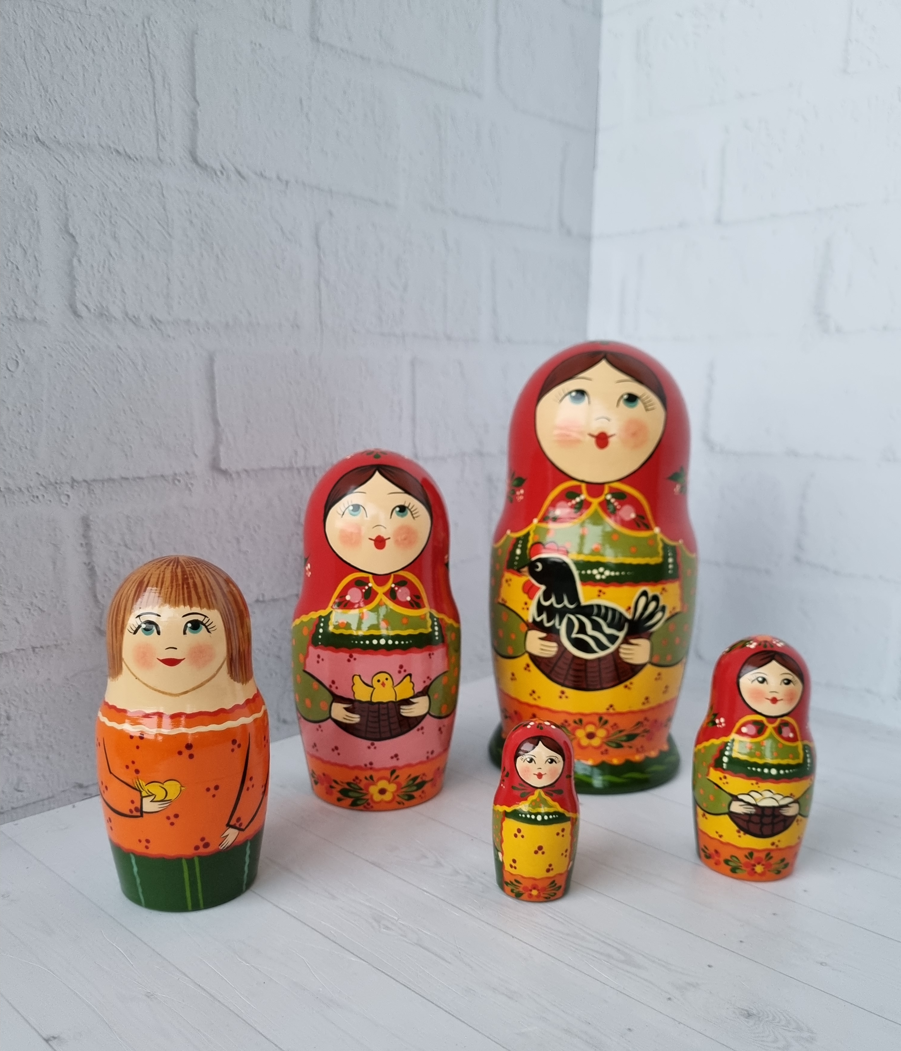 Матрешка "с курочкой"  традиция, 5 местная матрешка, высота 1й - 18см, художественная роспись, ручная работа, материалы - акриловые и темперные краски, липа.