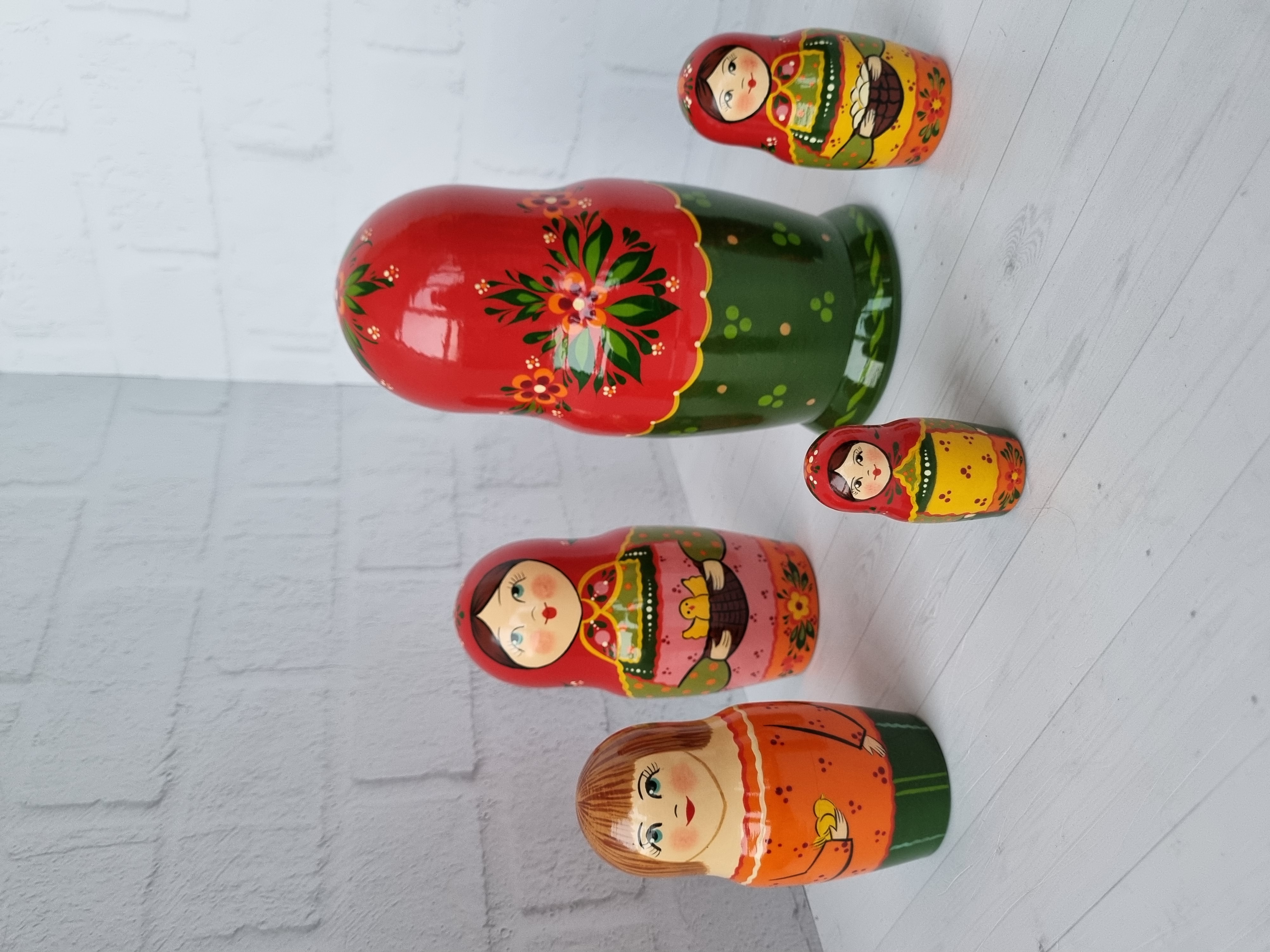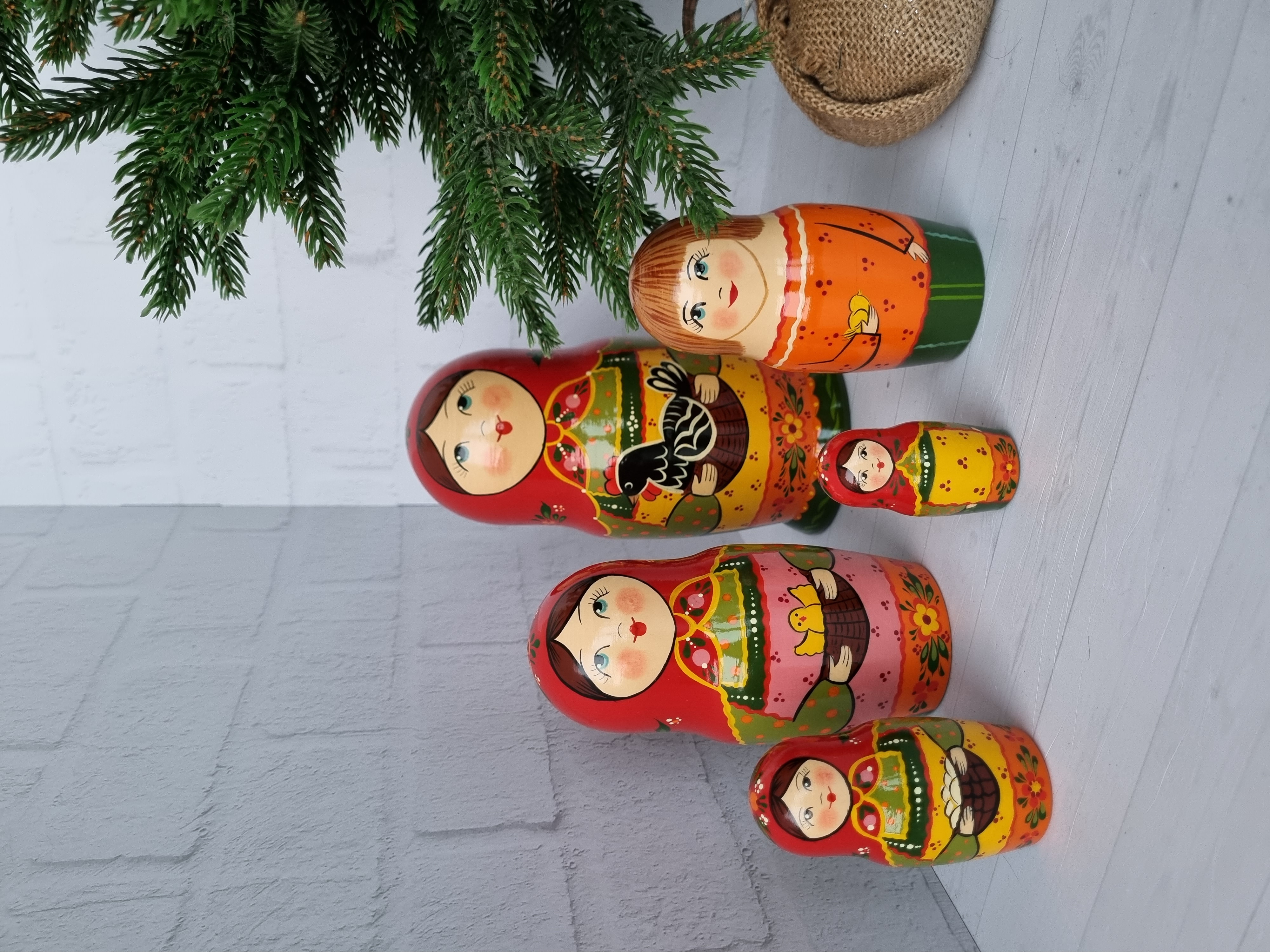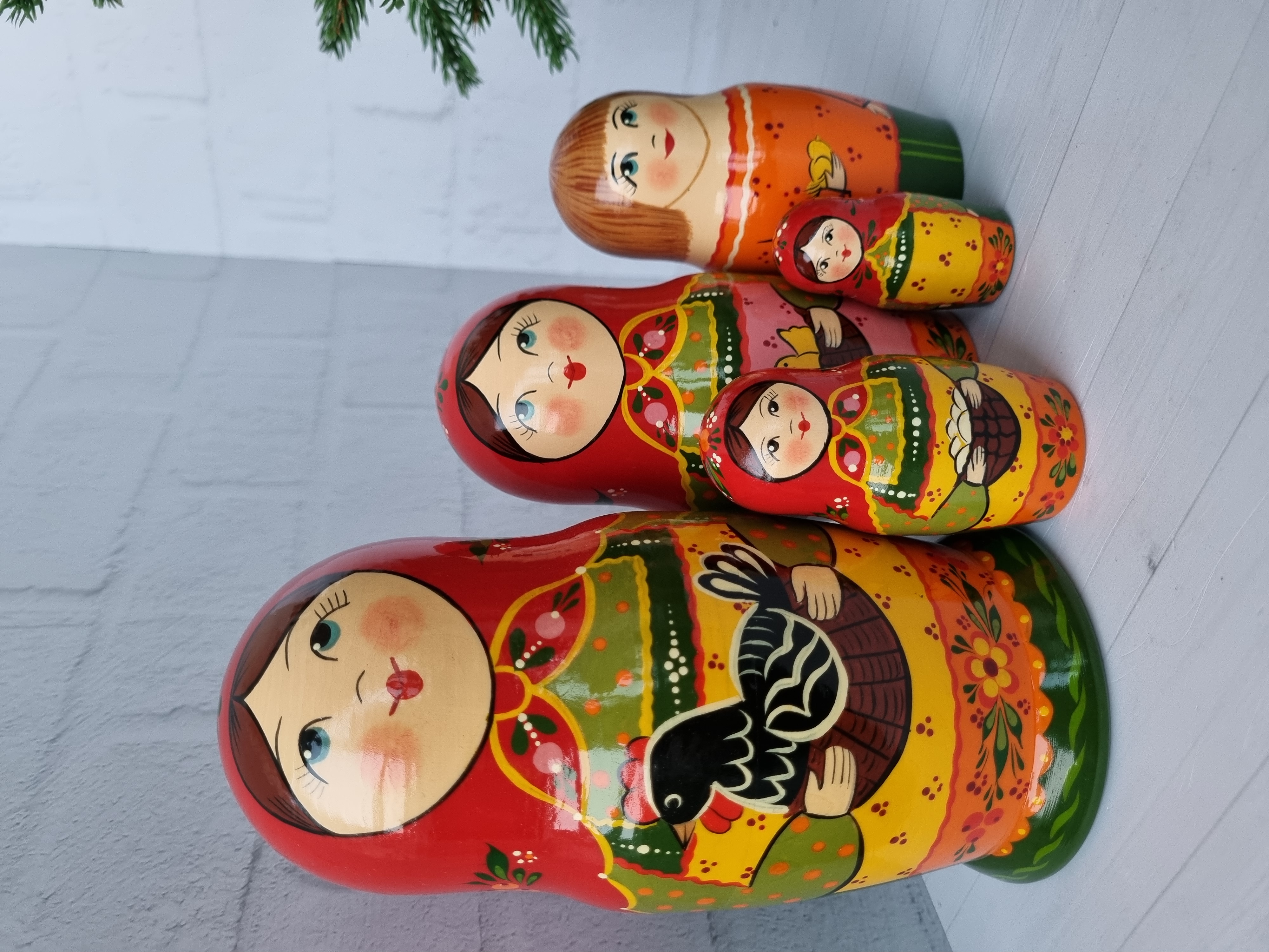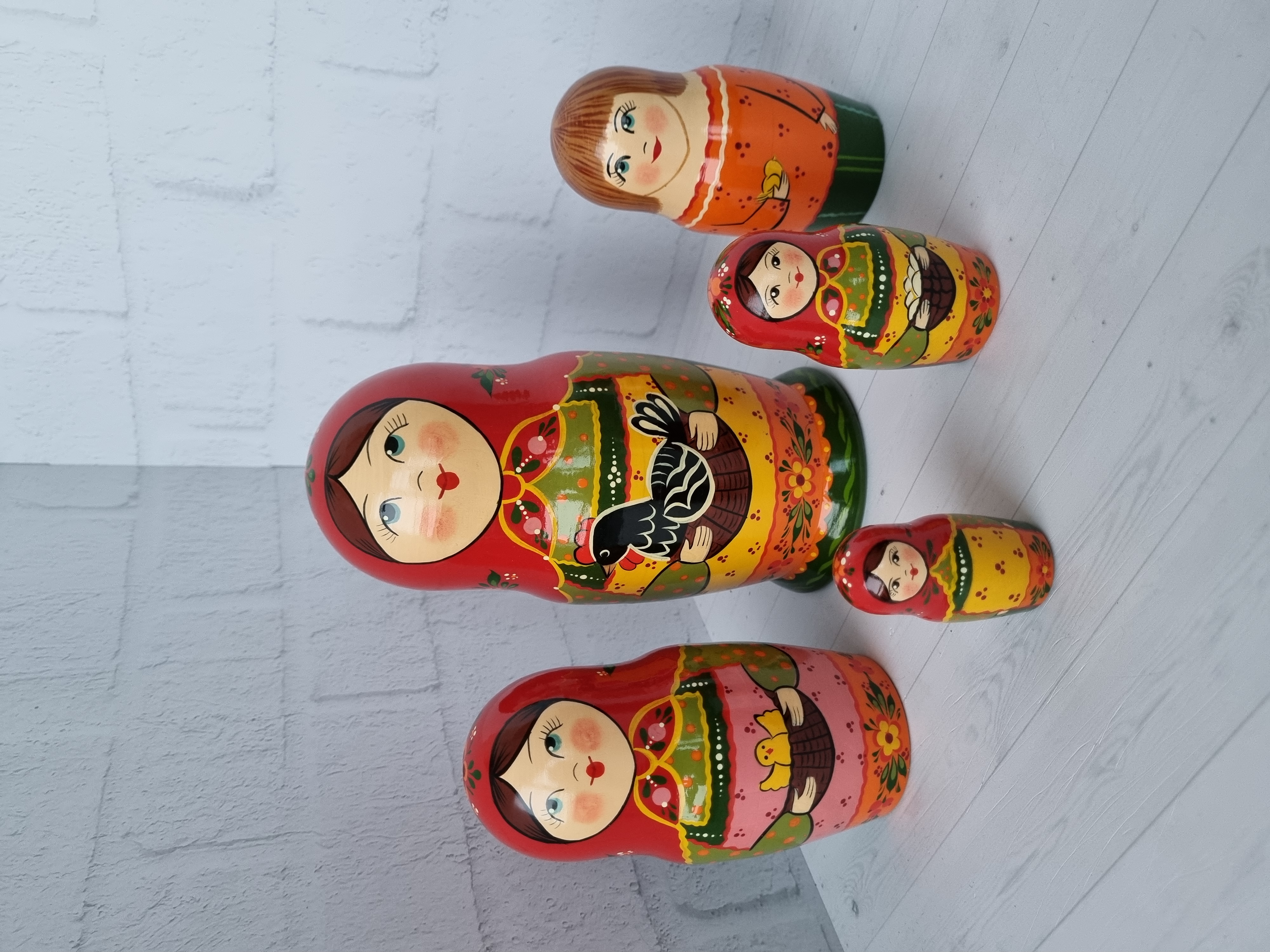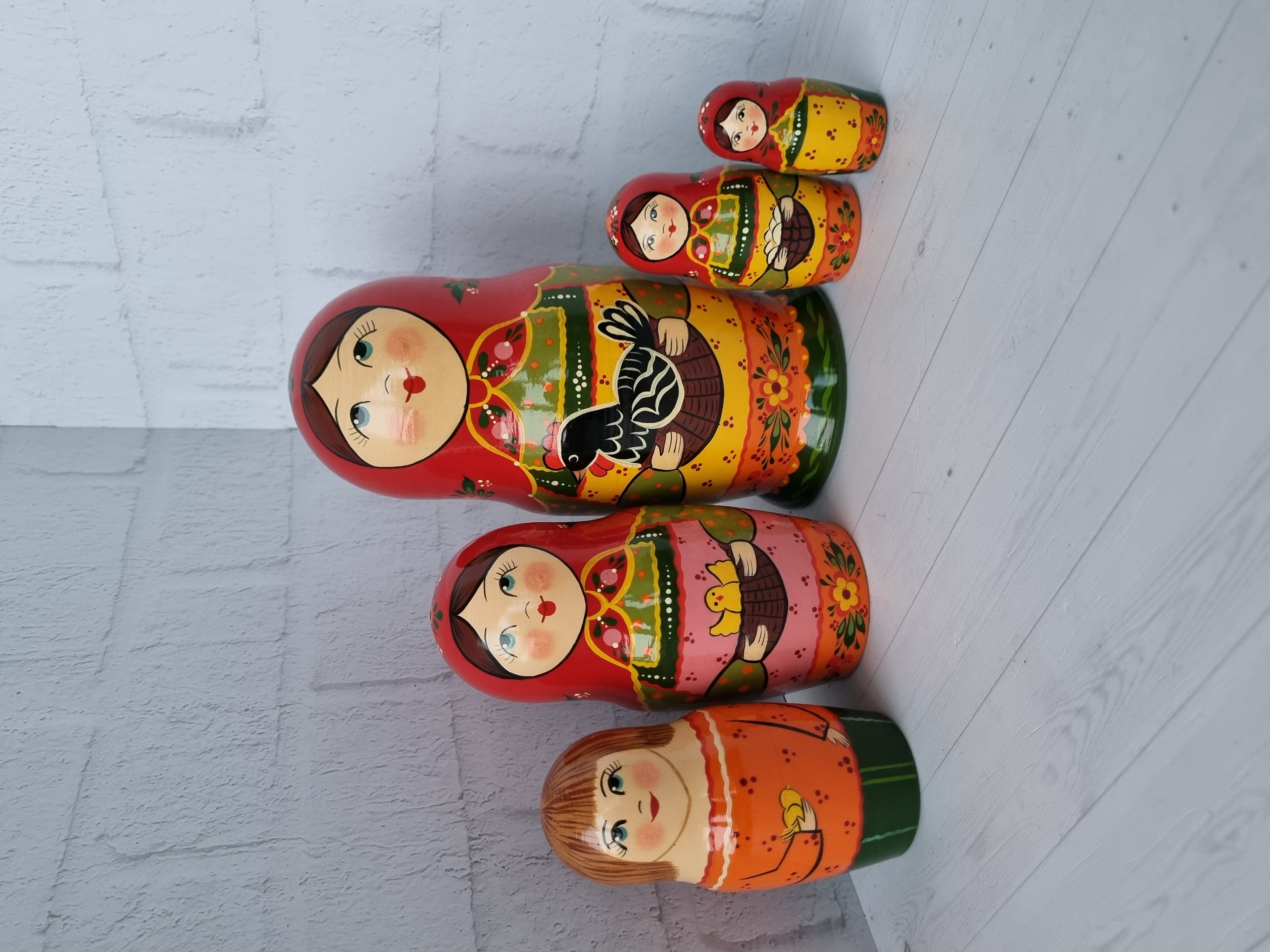 Матрешка "с курочкой"  традиция, 5 местная матрешка, высота 1й - 18см, художественная роспись, ручная работа, материалы - акриловые и темперные краски, липа.