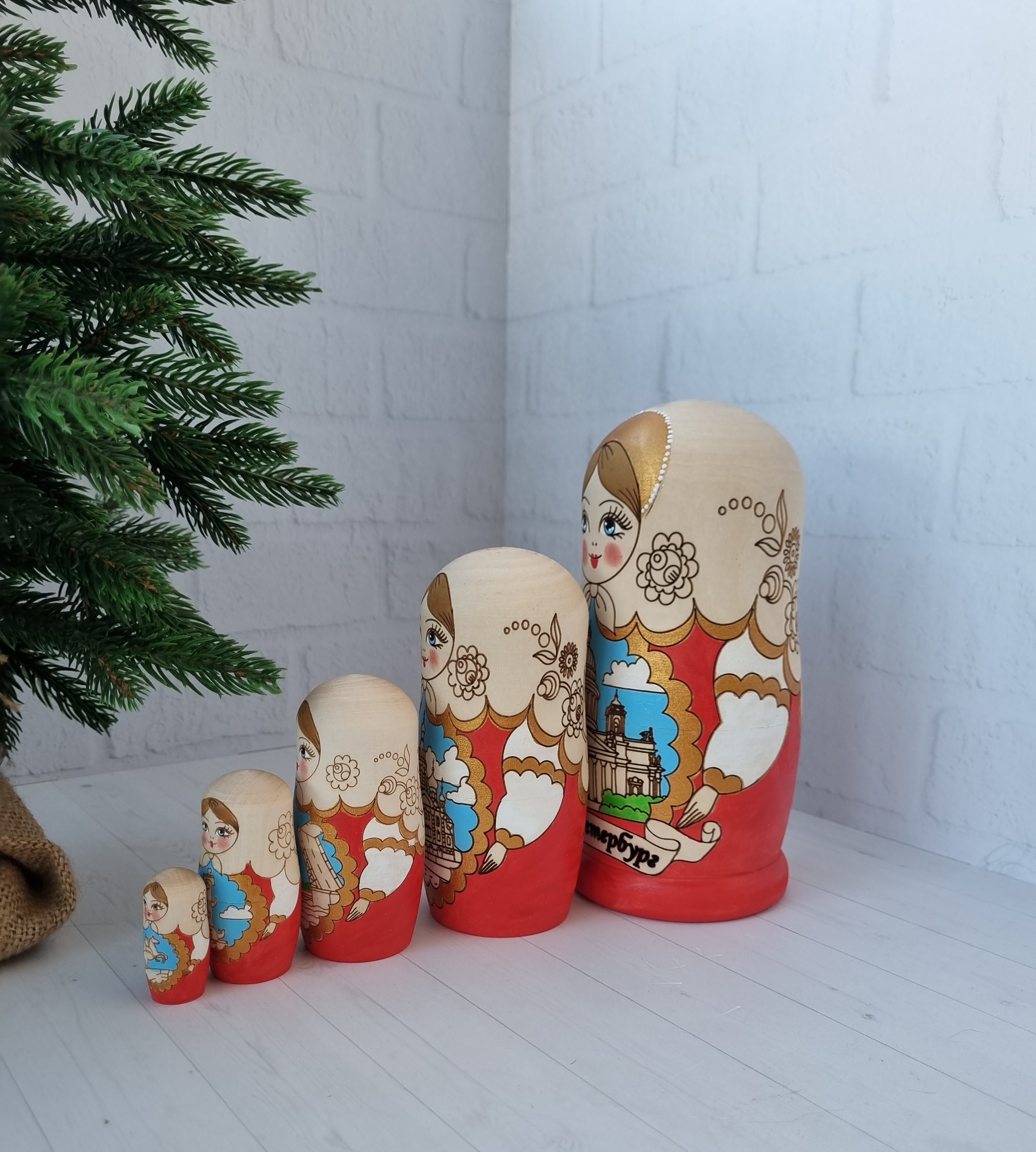 Матрешка Санкт-Петербург жжёнка 5 мест 18см