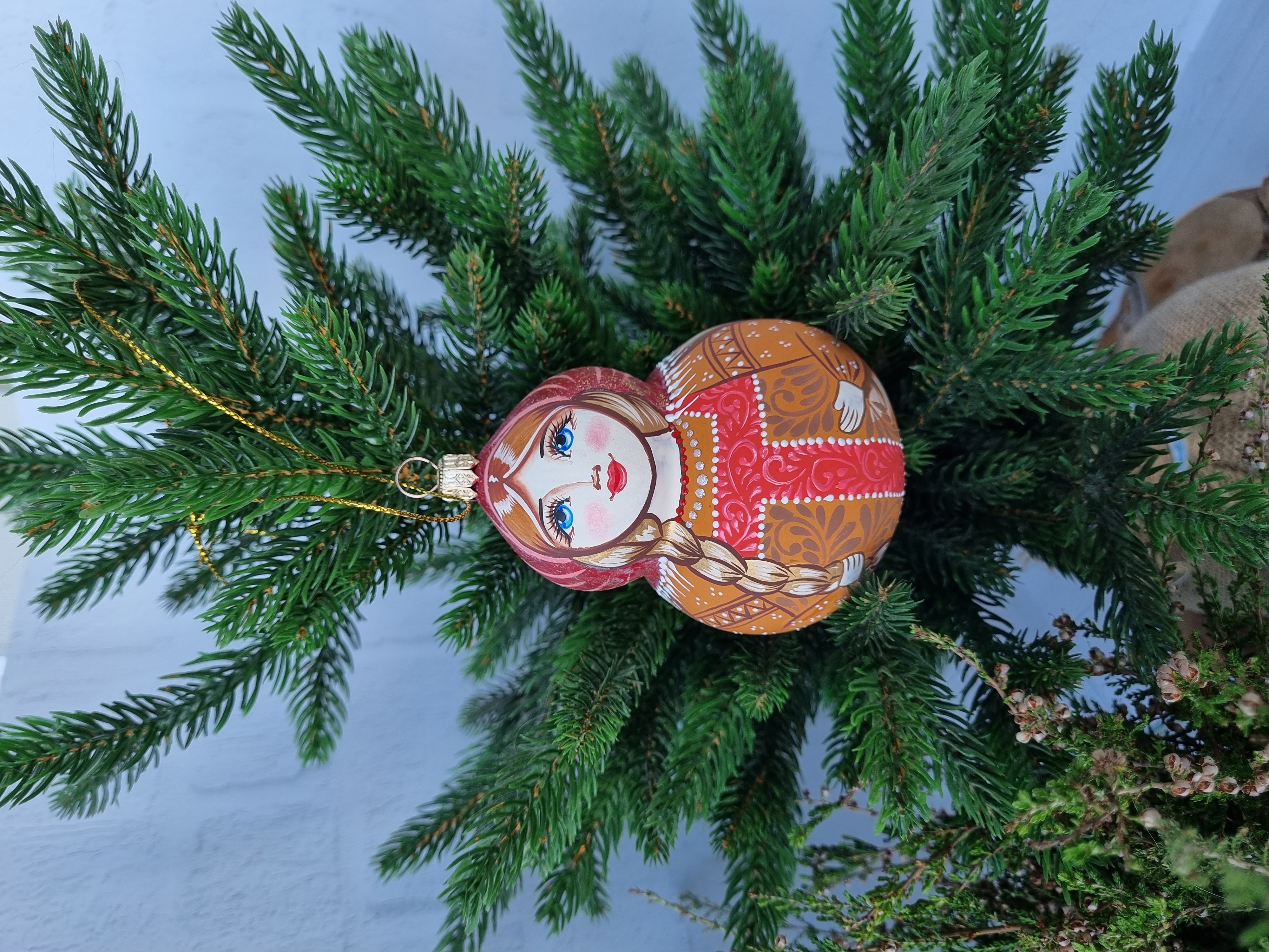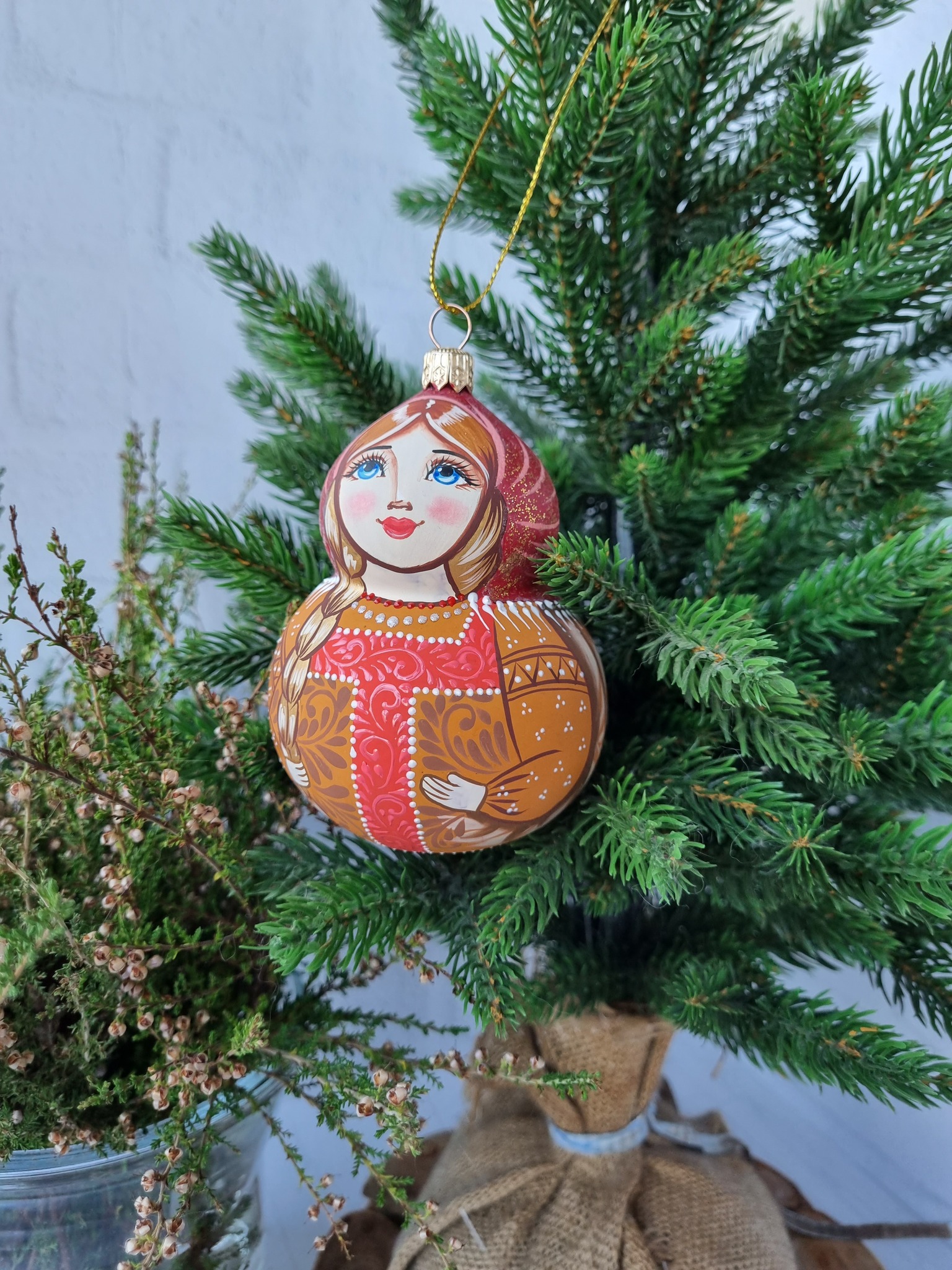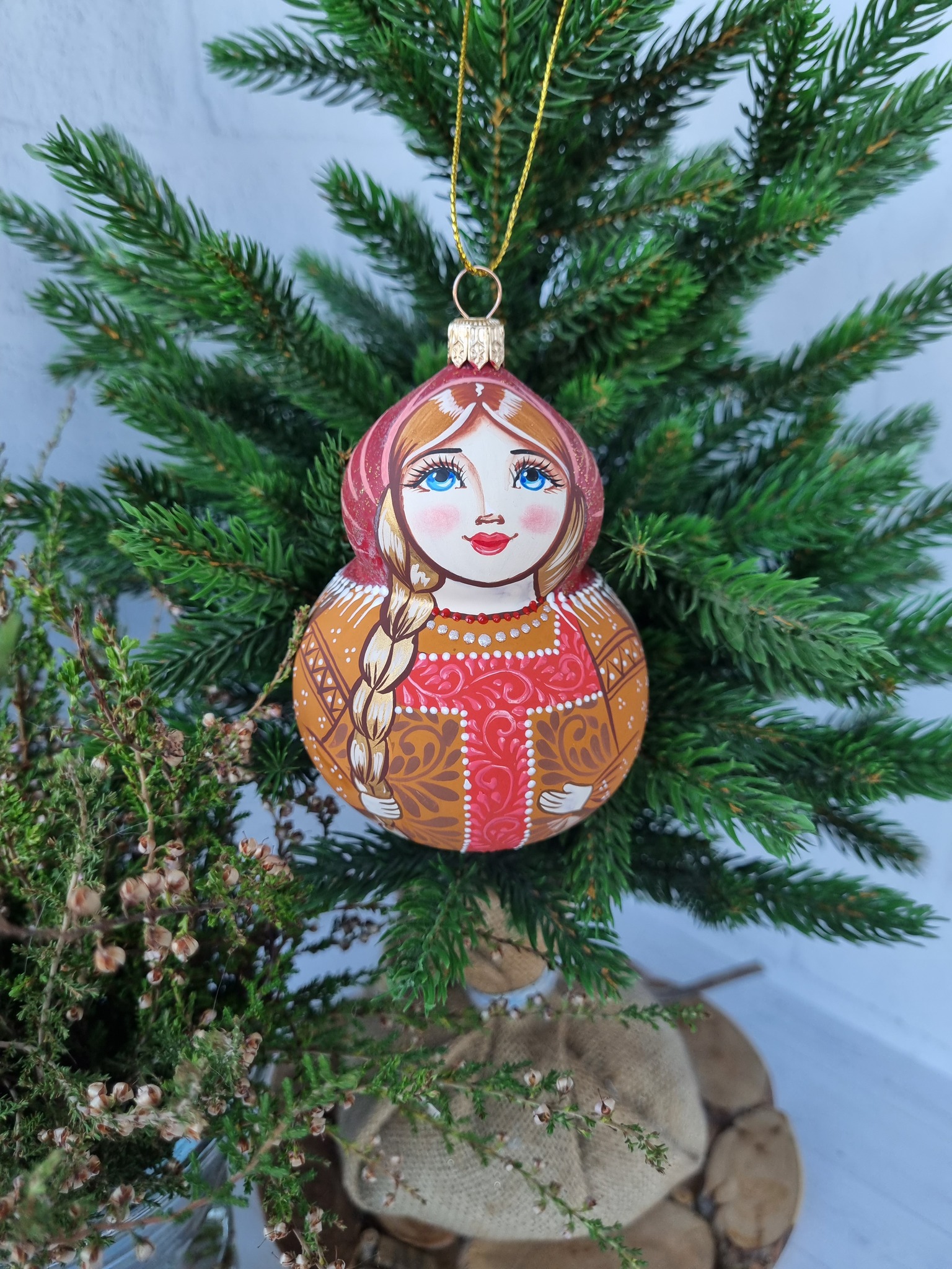 Матрешка Варвара, стеклянная матрешка на ёлку, авторская работа, ручная роспись. Выполнена темперными красками, художественная роспись, ручная работа, игрушка стеклянная, свободной выдувки, высота 10см диаметр 6см. Красивая и нежная ёлочная игрушка, будет прекрасным подарком для Ваших друзе и близких! Бережно упакована в красивую коробку!