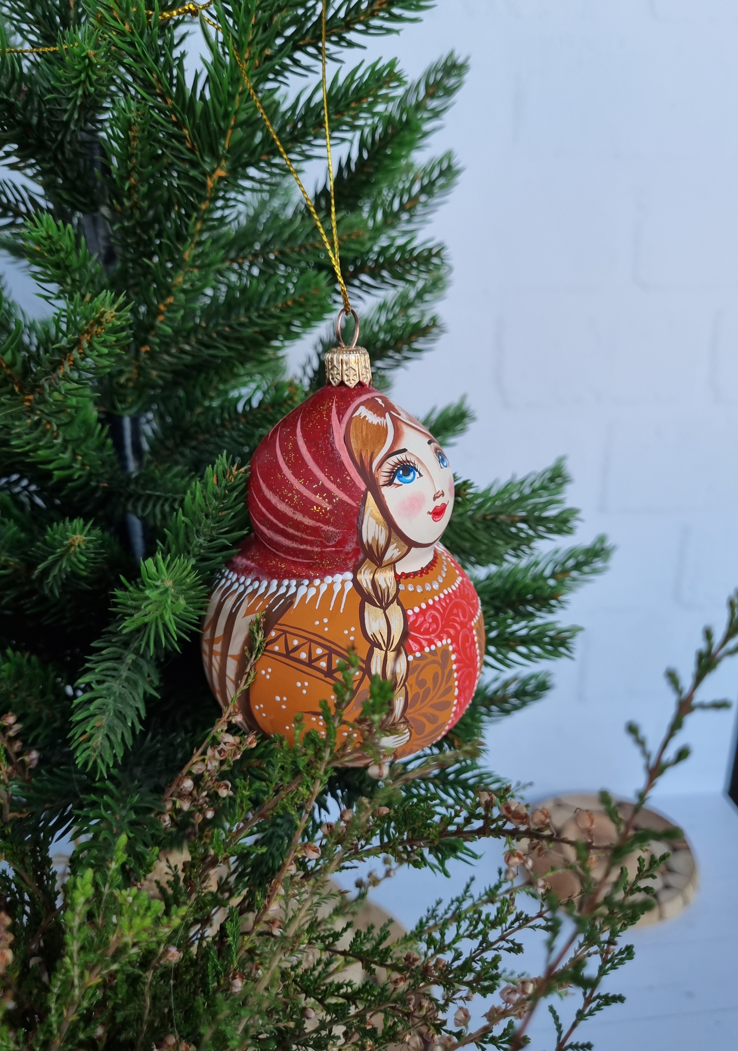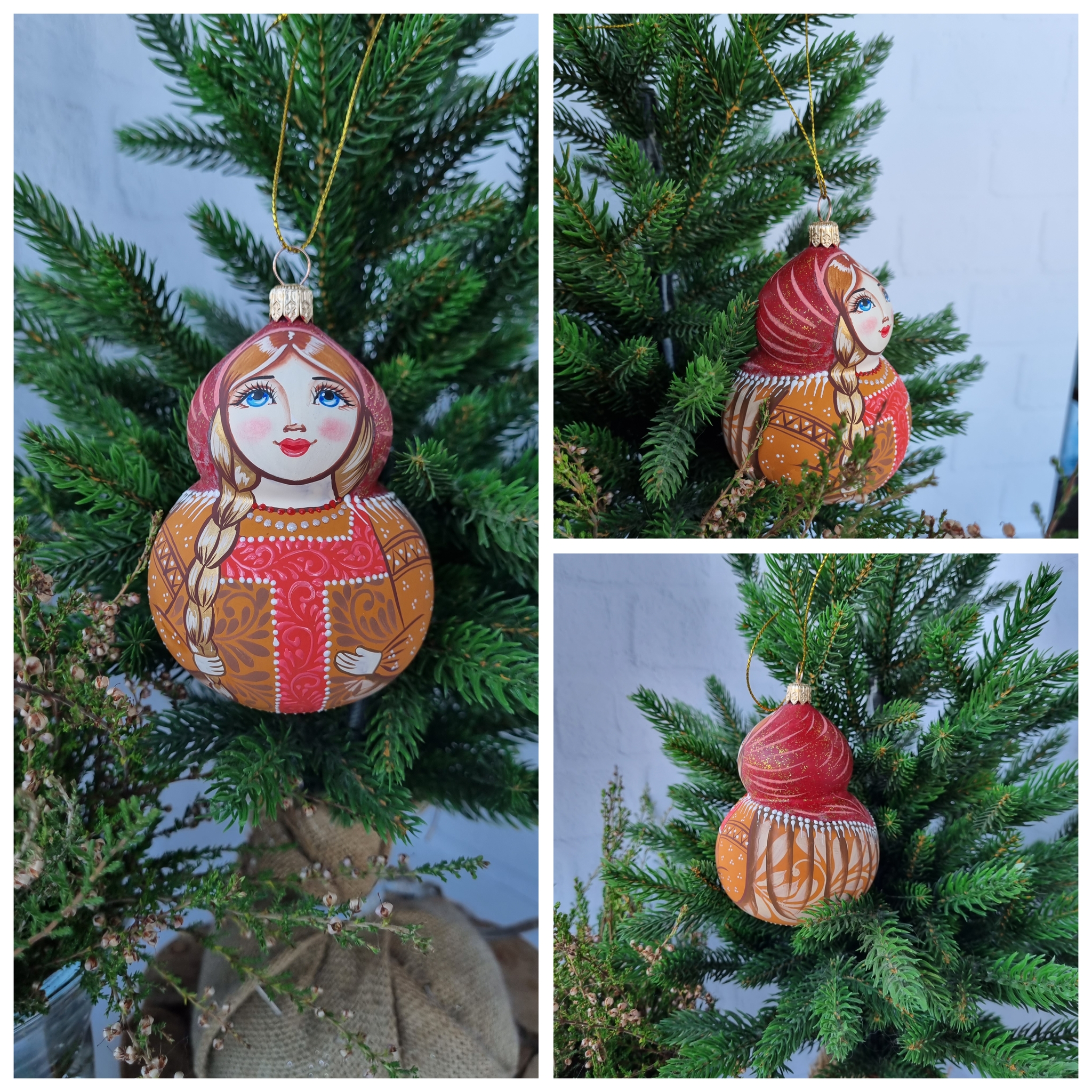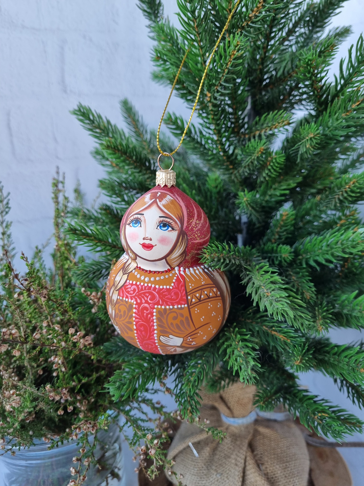 Матрешка Варвара, стеклянная матрешка на ёлку, авторская работа, ручная роспись. Выполнена темперными красками, художественная роспись, ручная работа, игрушка стеклянная, свободной выдувки, высота 10см диаметр 6см. Красивая и нежная ёлочная игрушка, будет прекрасным подарком для Ваших друзе и близких! Бережно упакована в красивую коробку!