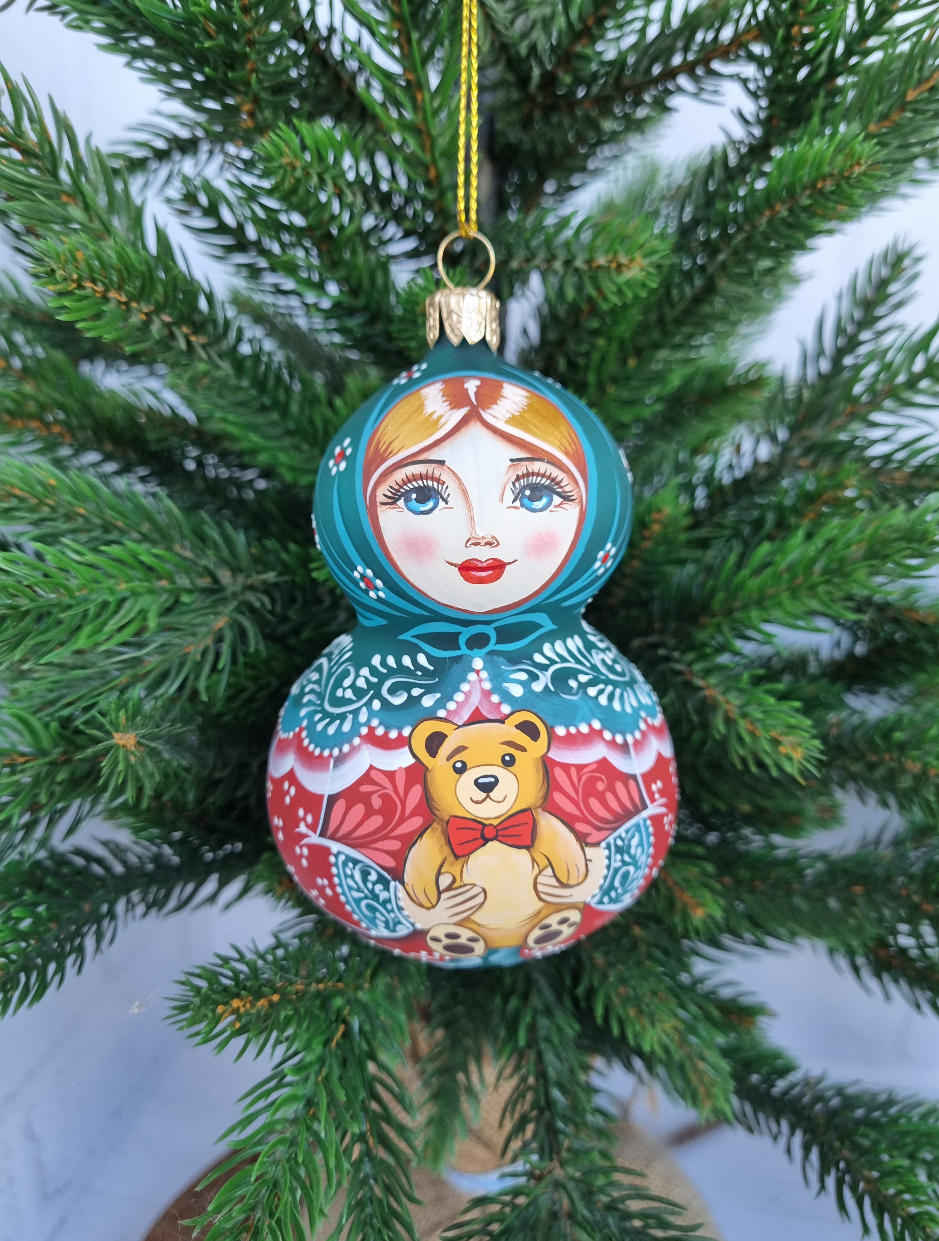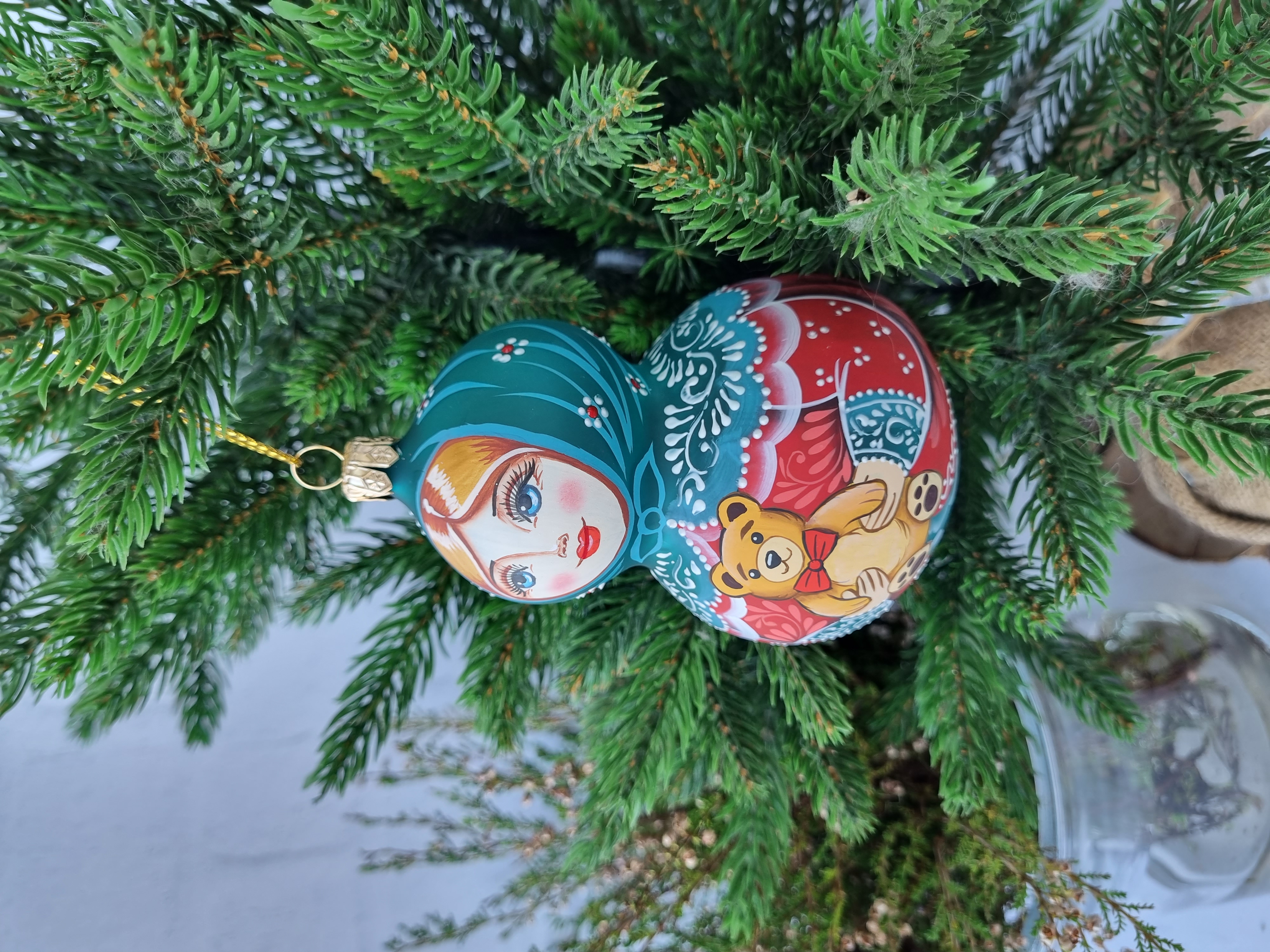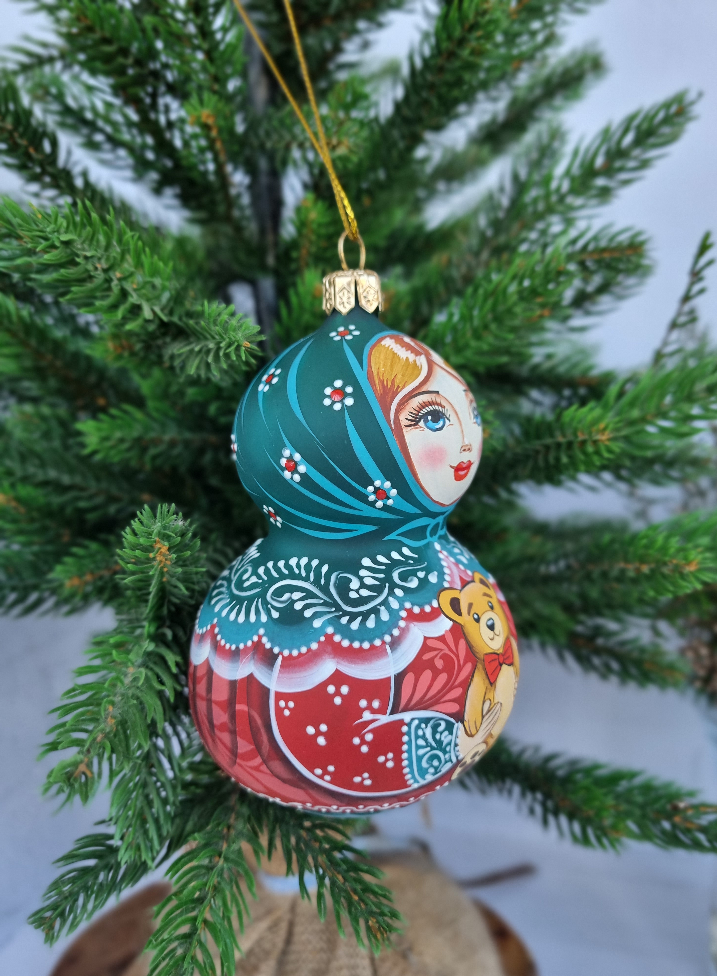 Матрешка стеклянная Алёнушка, игрушка на ёлку