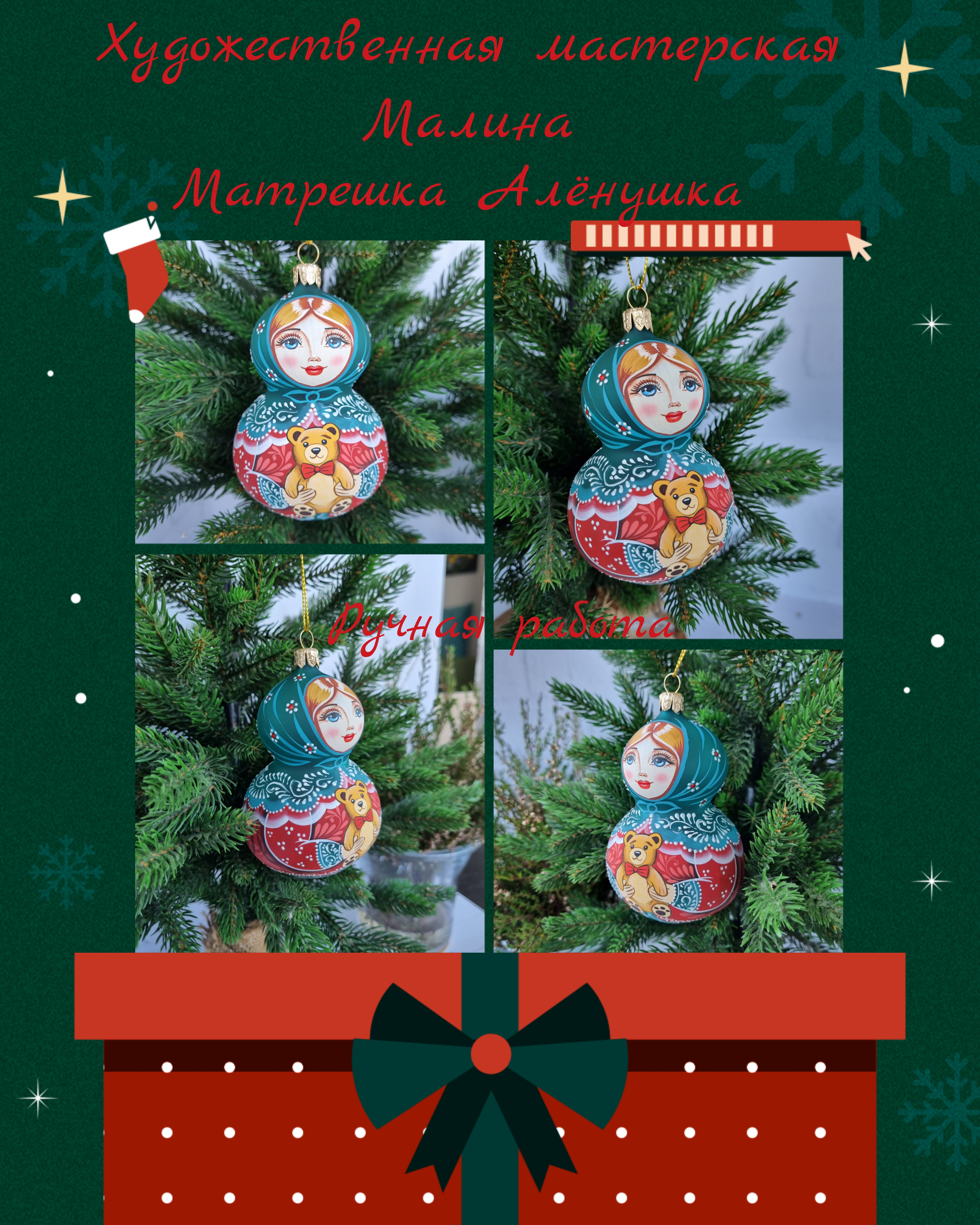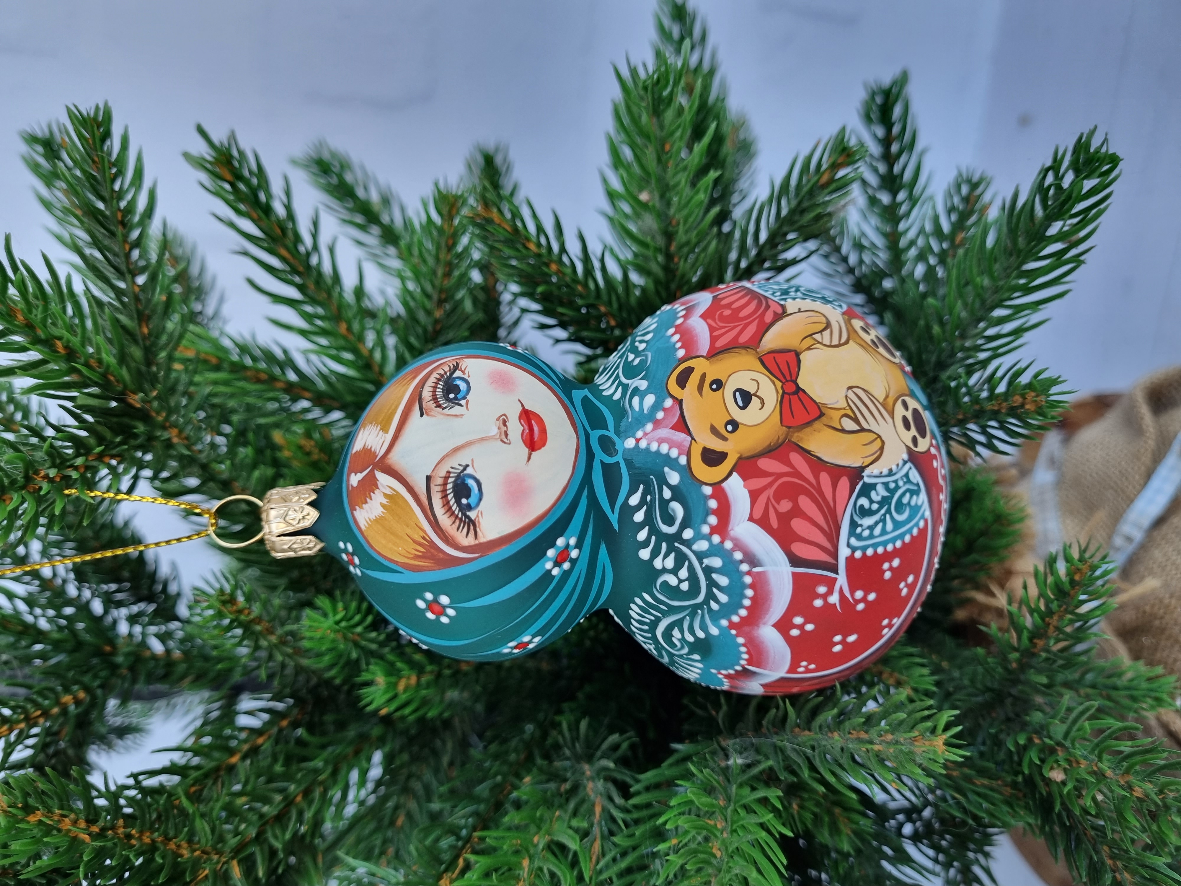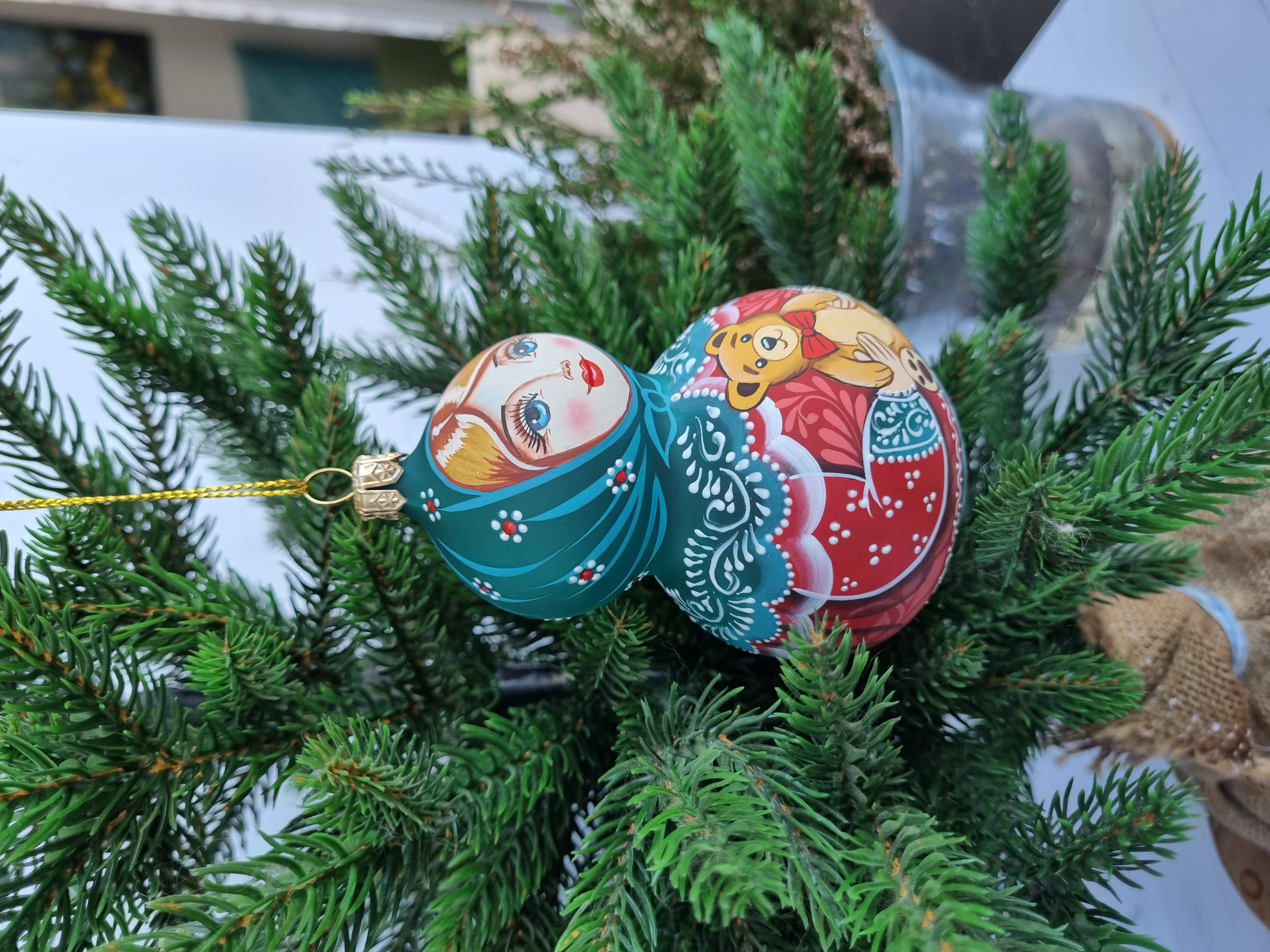 Матрешка стеклянная Алёнушка, игрушка на ёлку