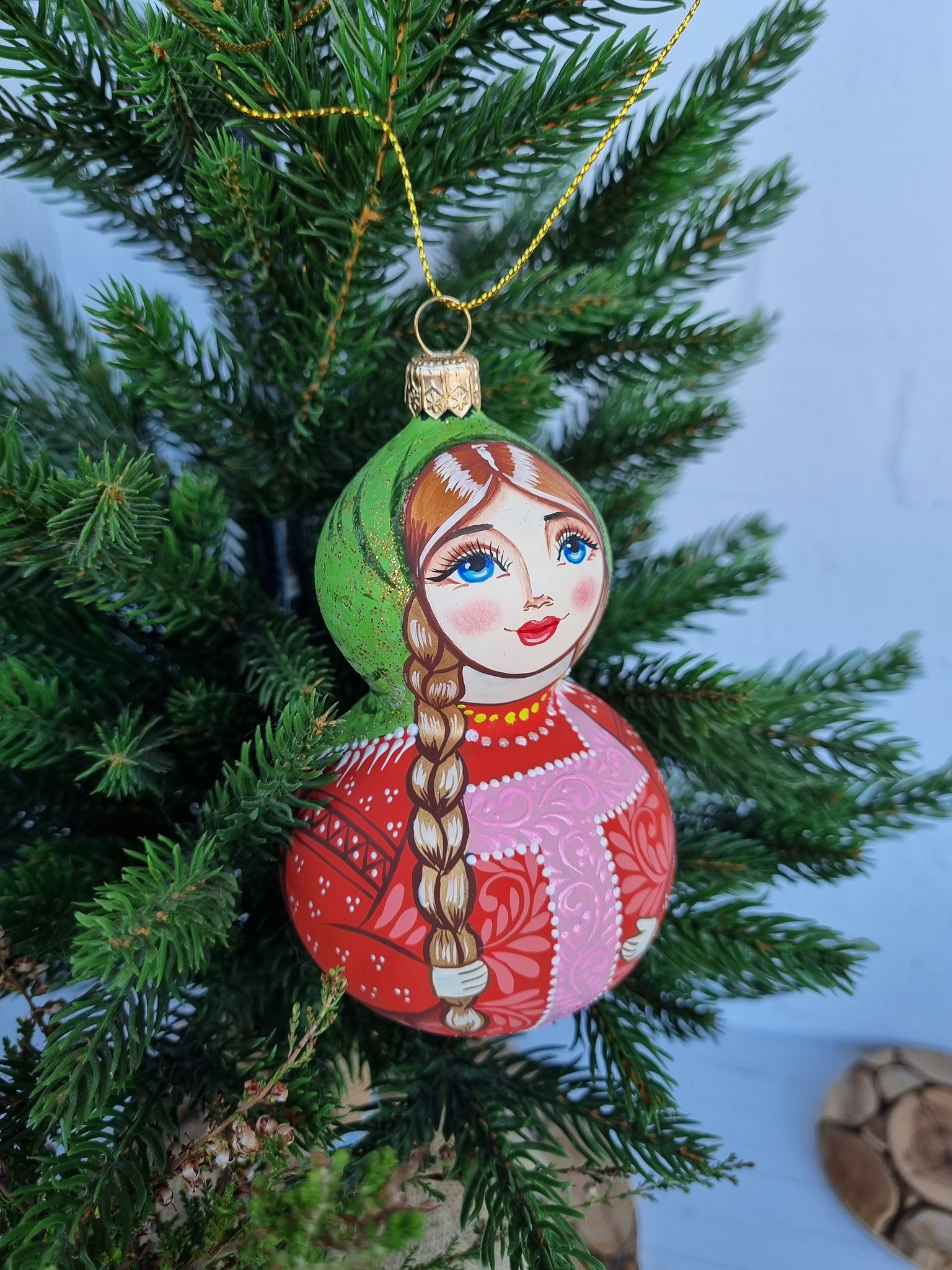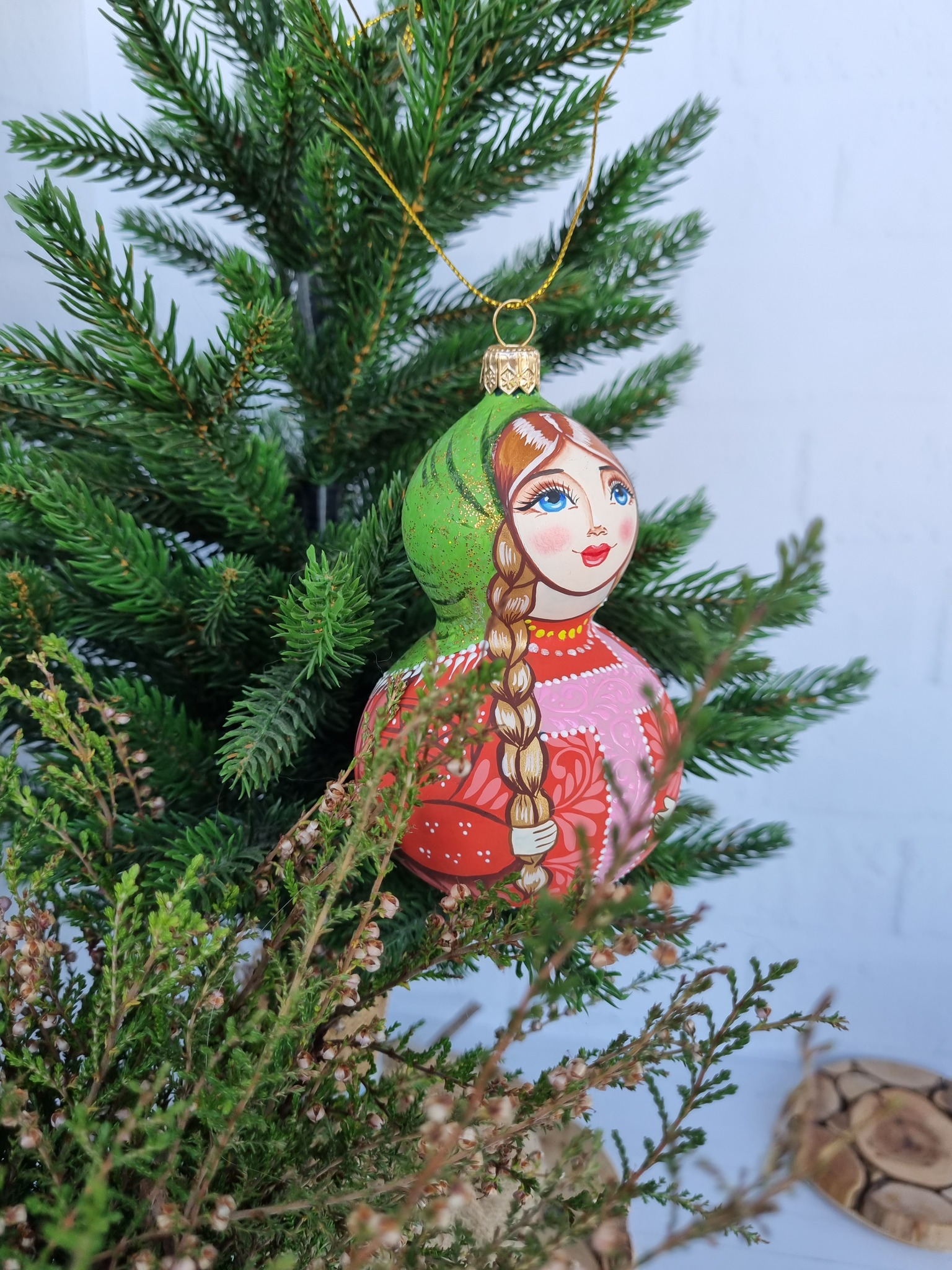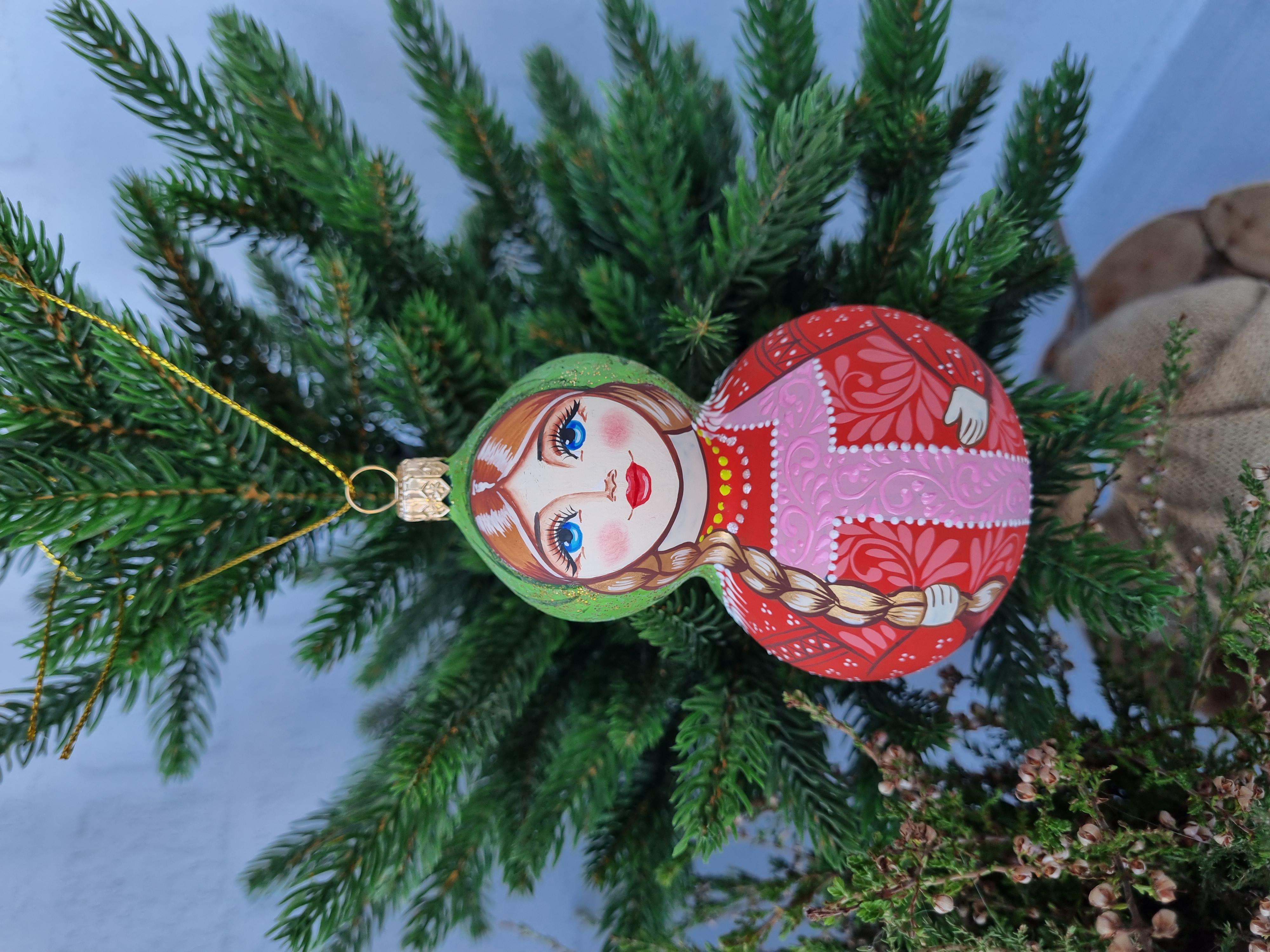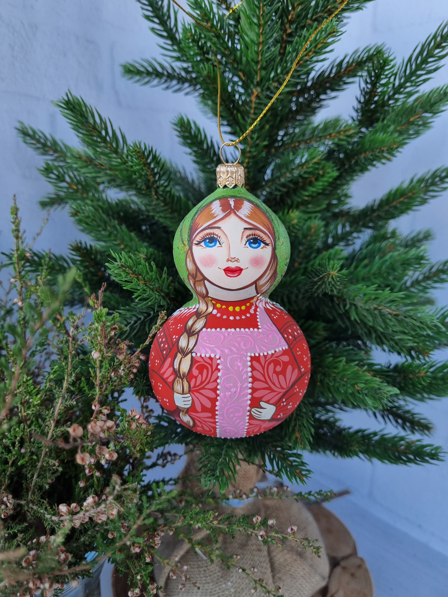 Матрешка Анфиса, стеклянная матрешка на ёлку, авторская работа, ручная роспись. Выполнена темперными красками, художественная роспись, ручная работа, игрушка стеклянная, свободной выдувки, высота 10см диаметр 6см. Красивая и нежная ёлочная игрушка, будет прекрасным подарком для Ваших друзе и близких! Бережно упакована в красивую коробку!
