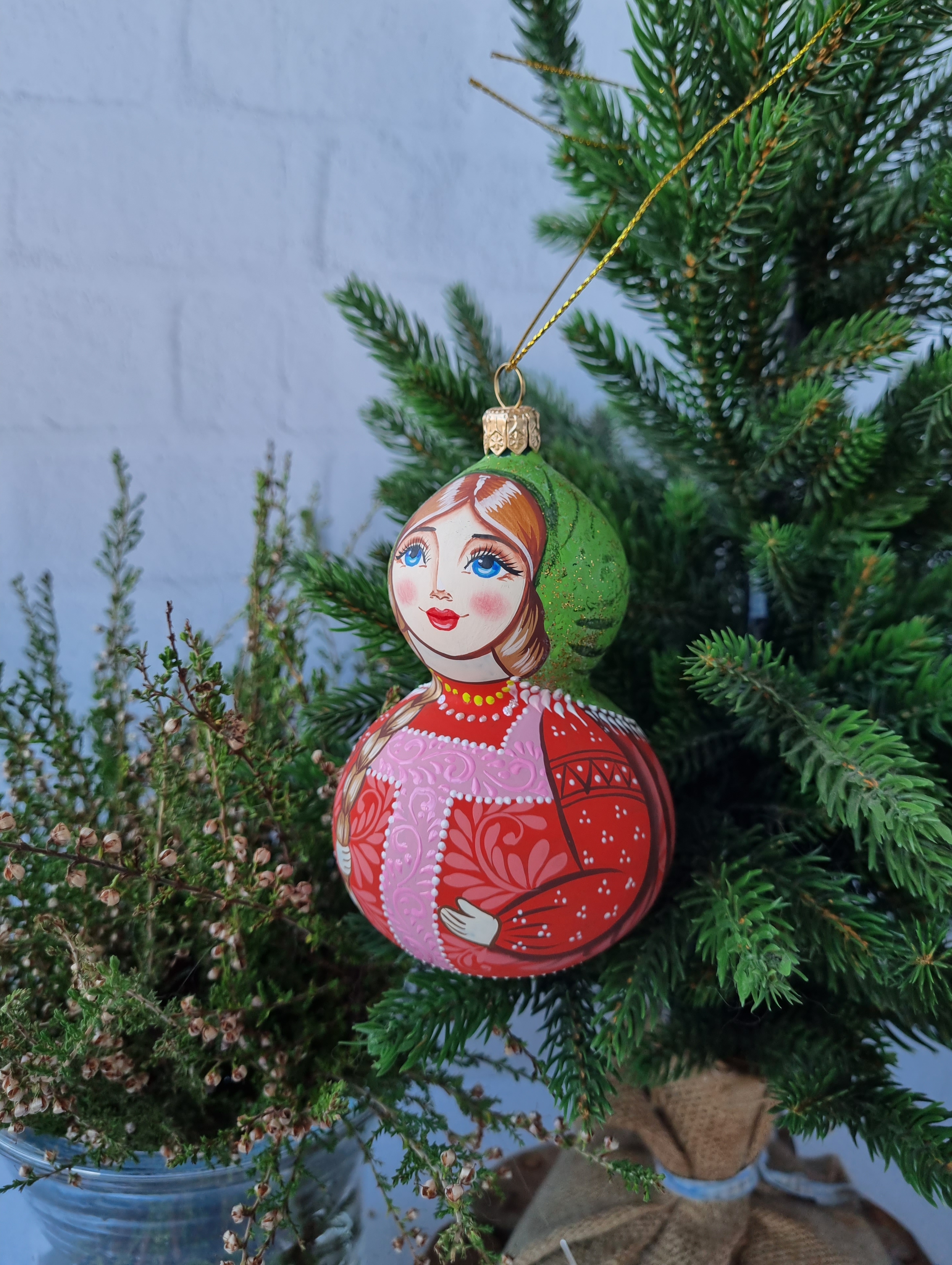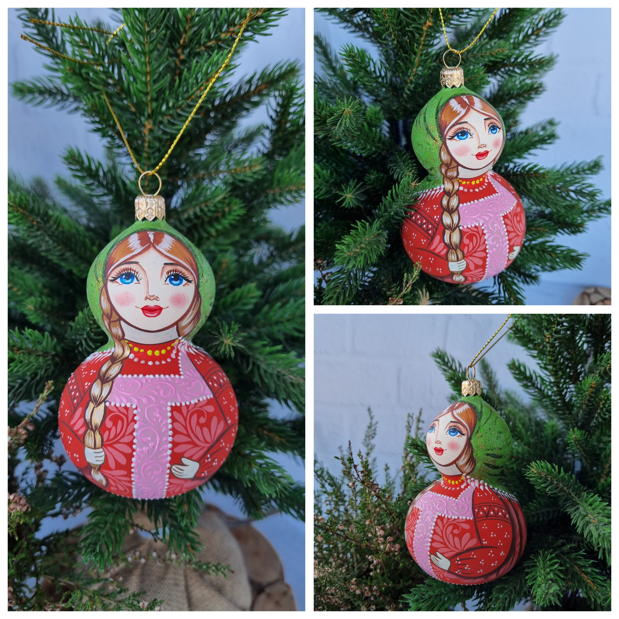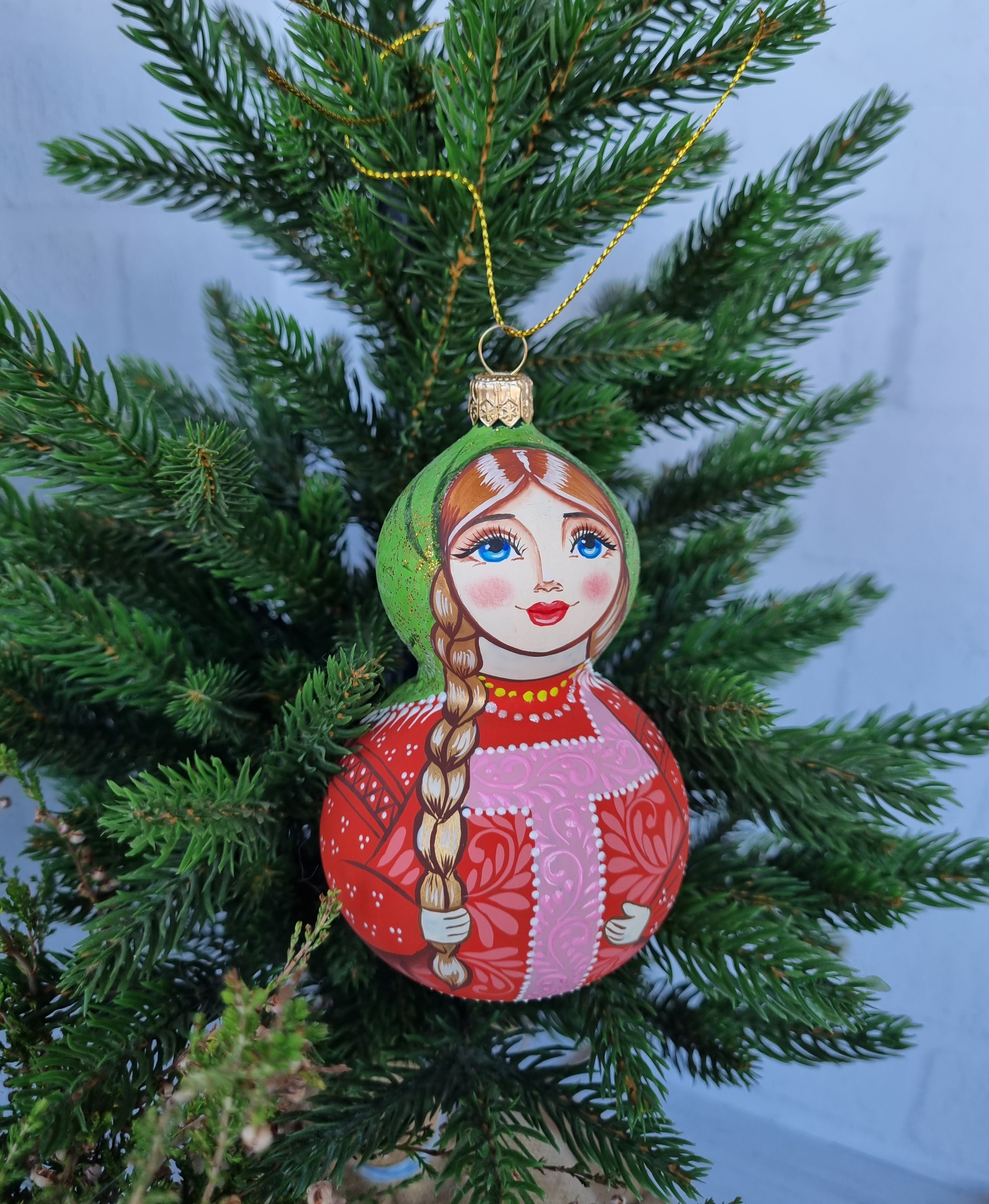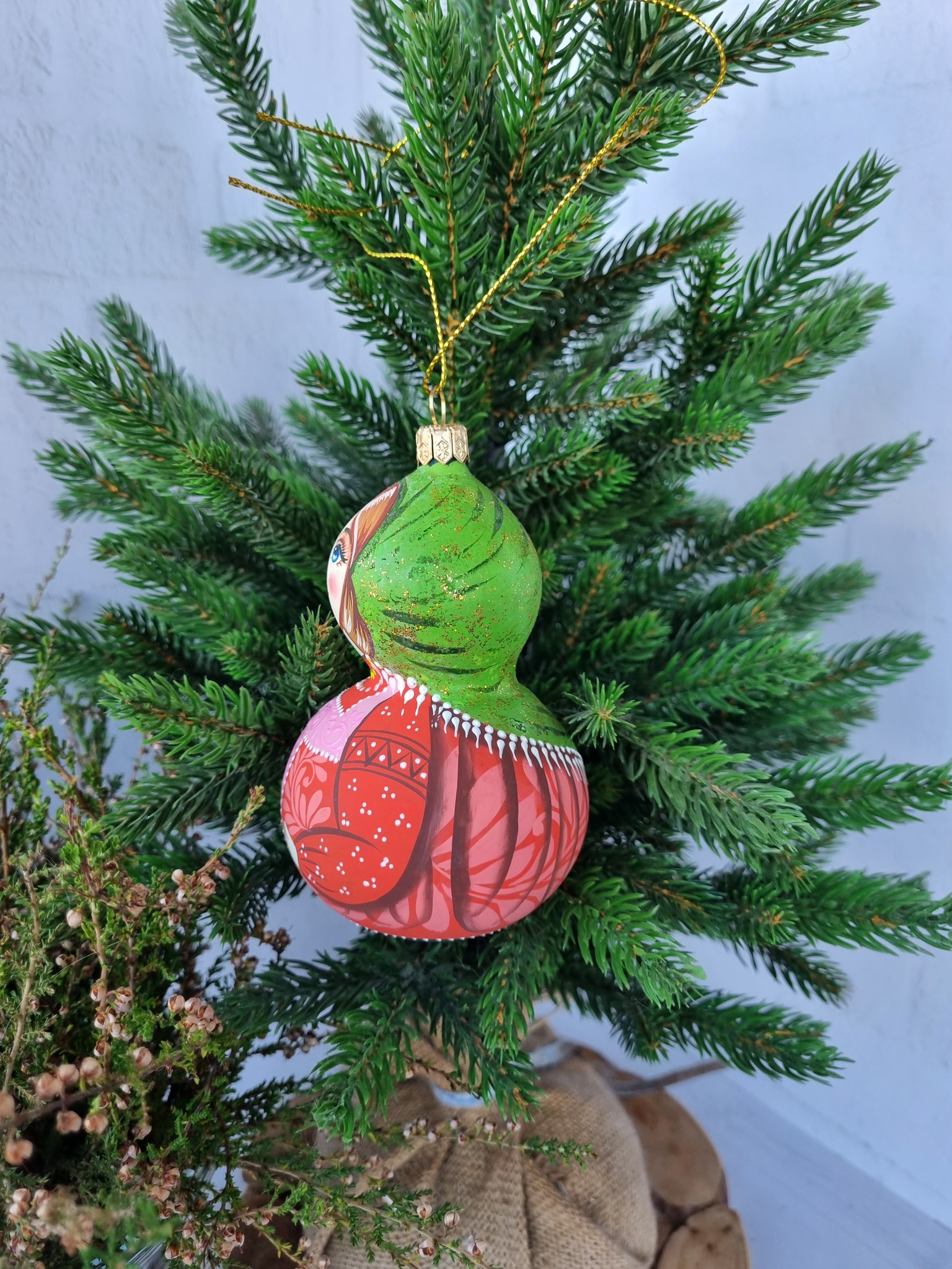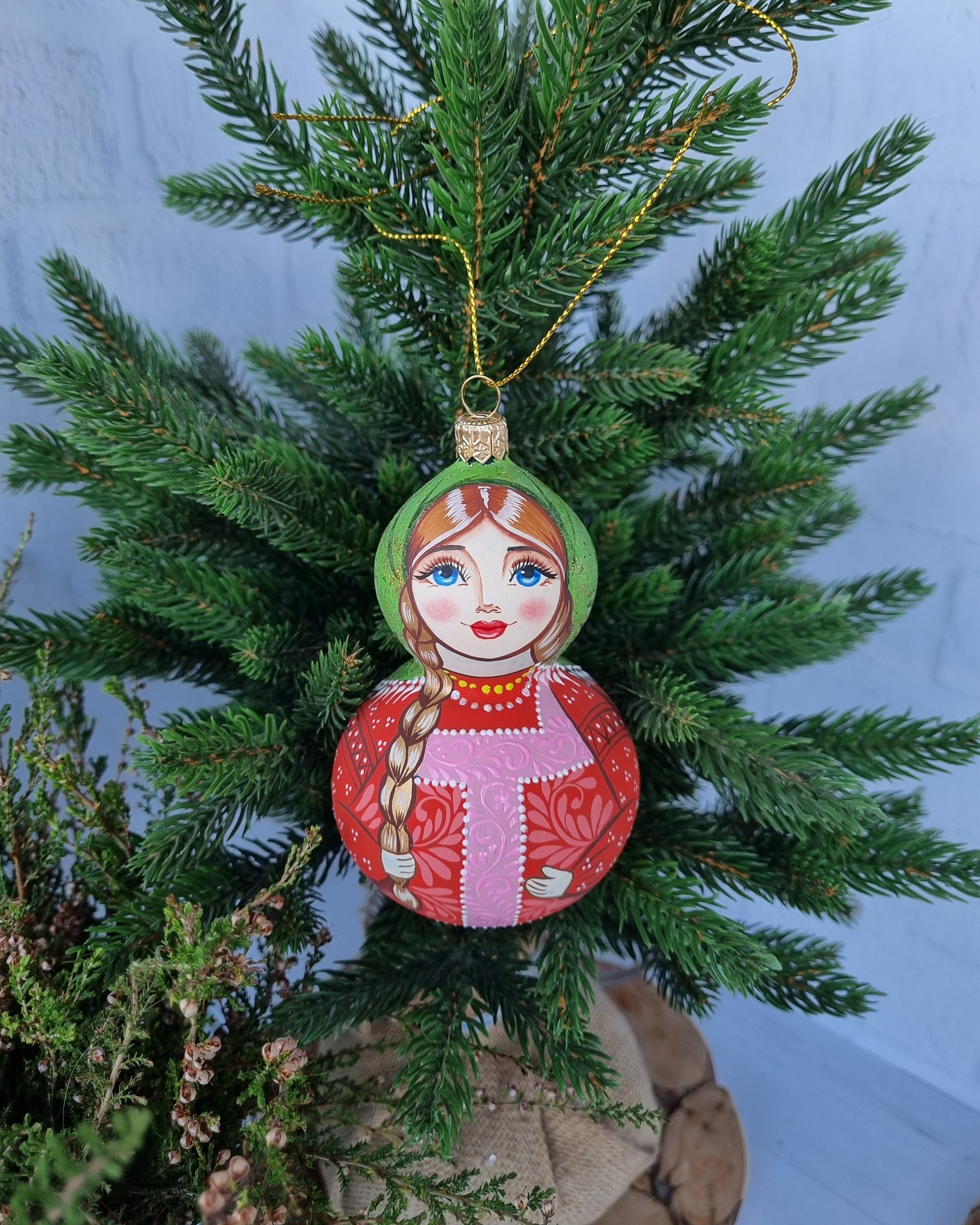 Матрешка Анфиса, стеклянная матрешка на ёлку, авторская работа, ручная роспись. Выполнена темперными красками, художественная роспись, ручная работа, игрушка стеклянная, свободной выдувки, высота 10см диаметр 6см. Красивая и нежная ёлочная игрушка, будет прекрасным подарком для Ваших друзе и близких! Бережно упакована в красивую коробку!