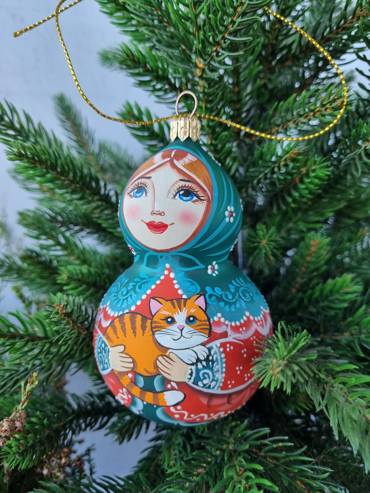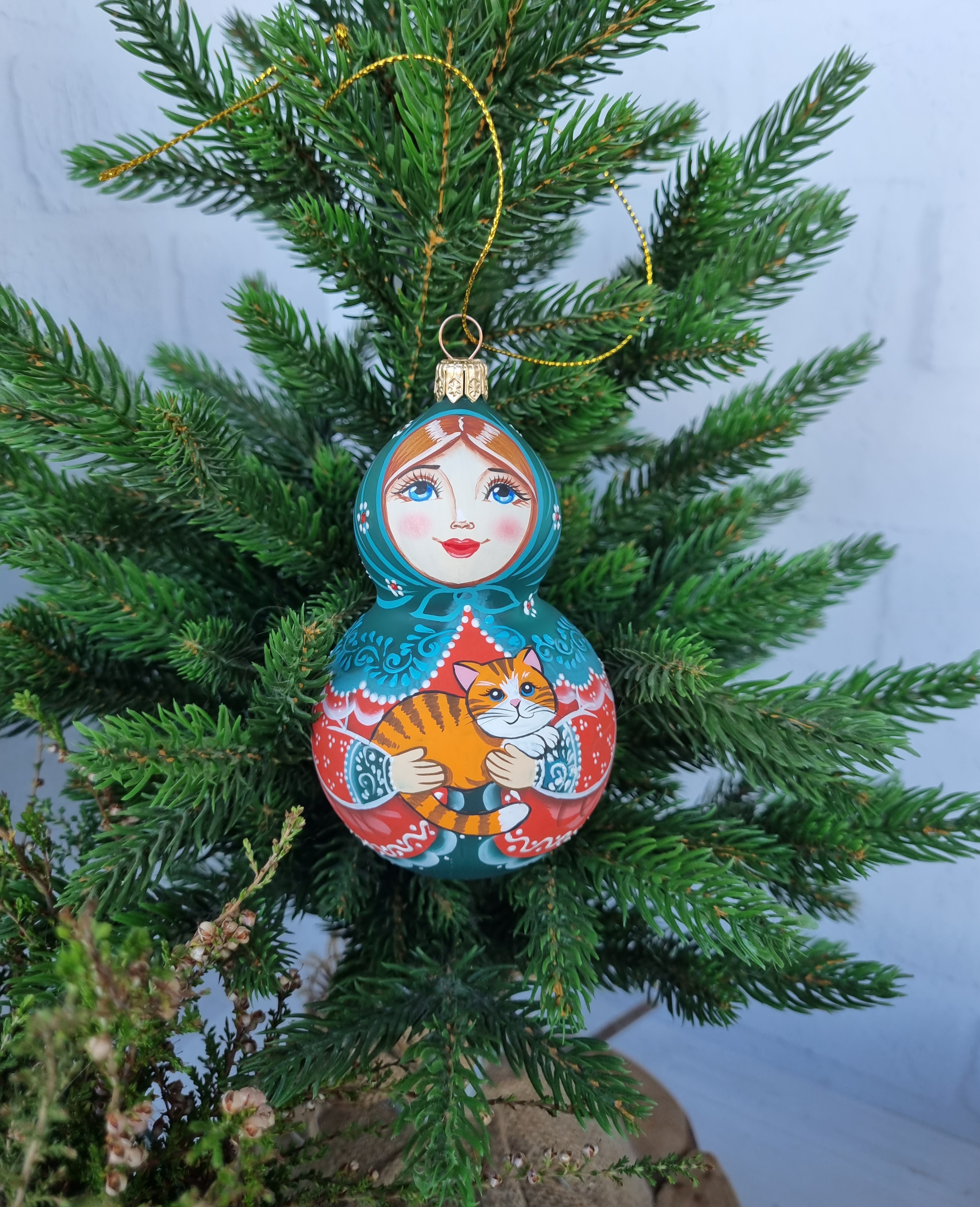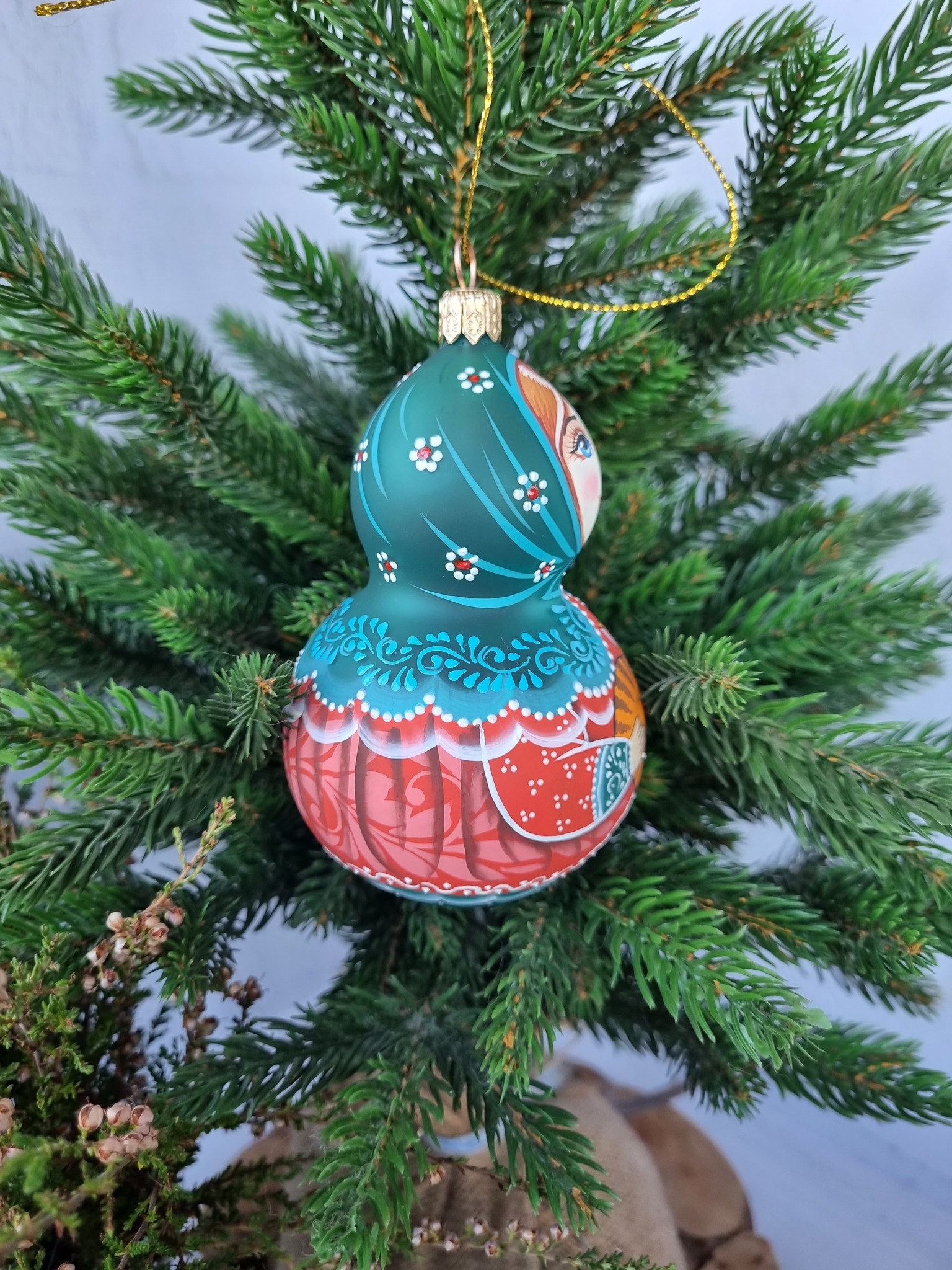 Матрешка Олечка, стеклянная матрешка на ёлку, авторская работа, ручная роспись. Выполнена темперными красками, художественная роспись, ручная работа, игрушка стеклянная, свободной выдувки, высота 10см диаметр 6см. Красивая и нежная ёлочная игрушка, будет прекрасным подарком для Ваших друзе и близких! Бережно упакована в красивую коробку!