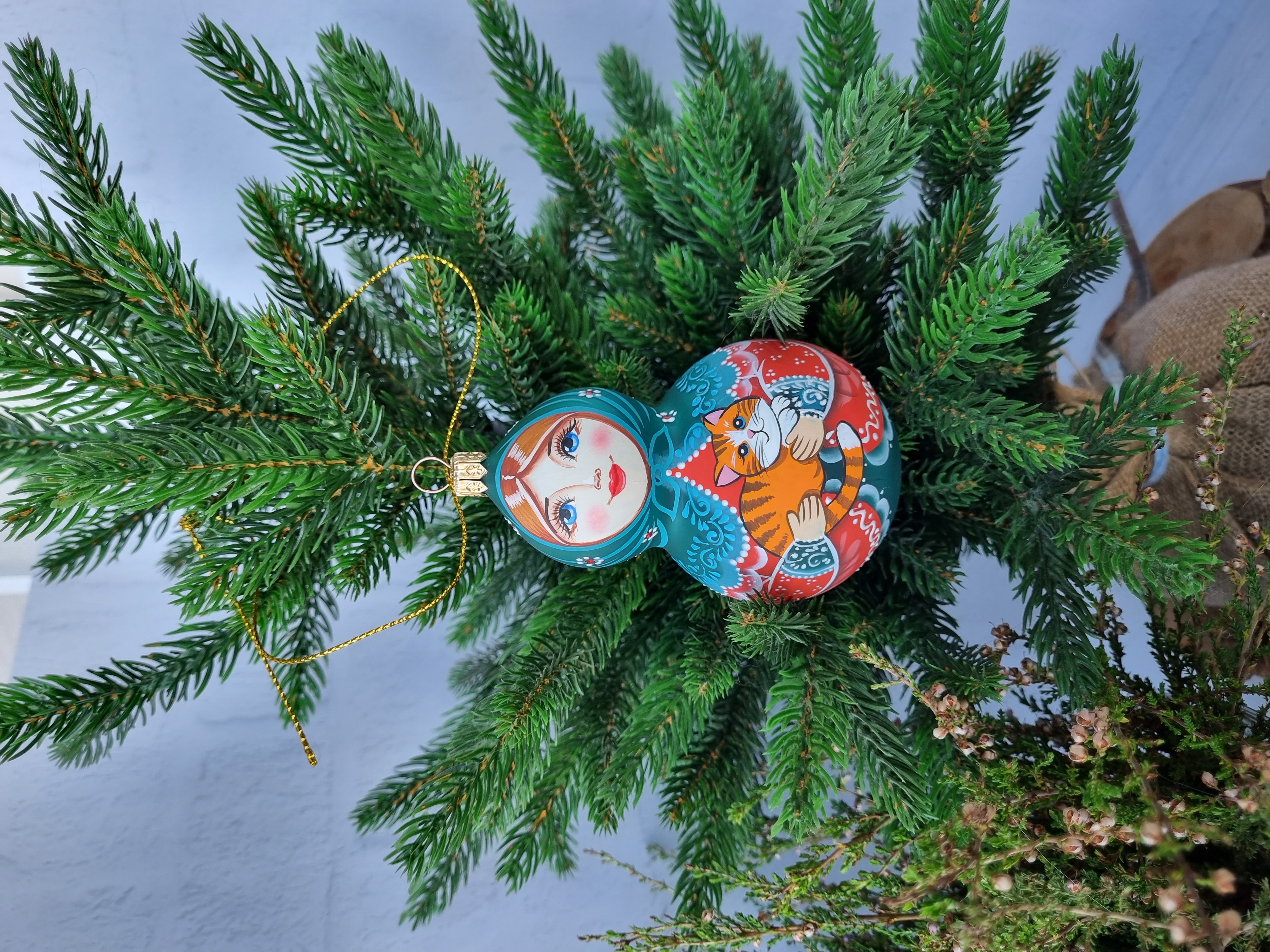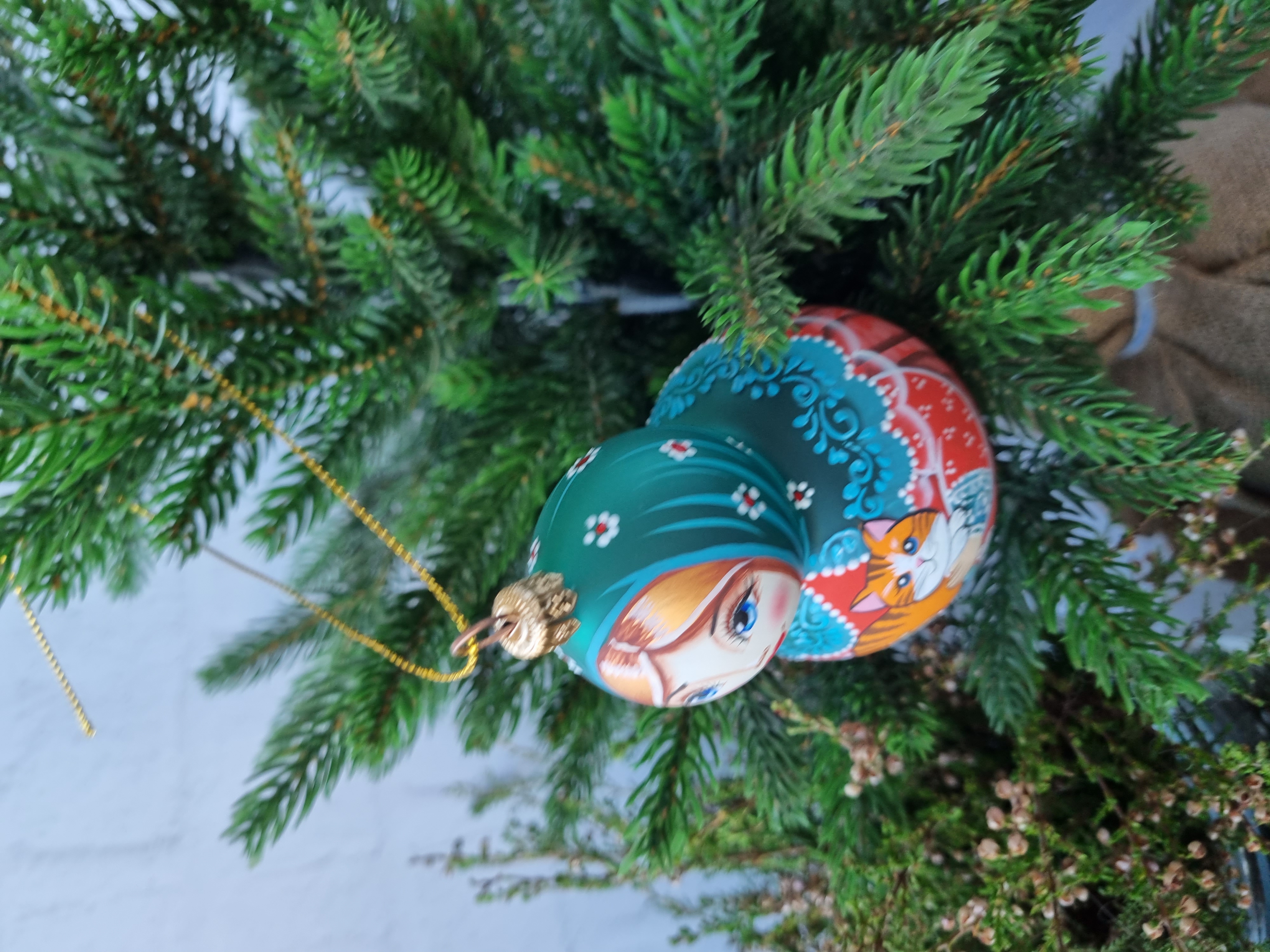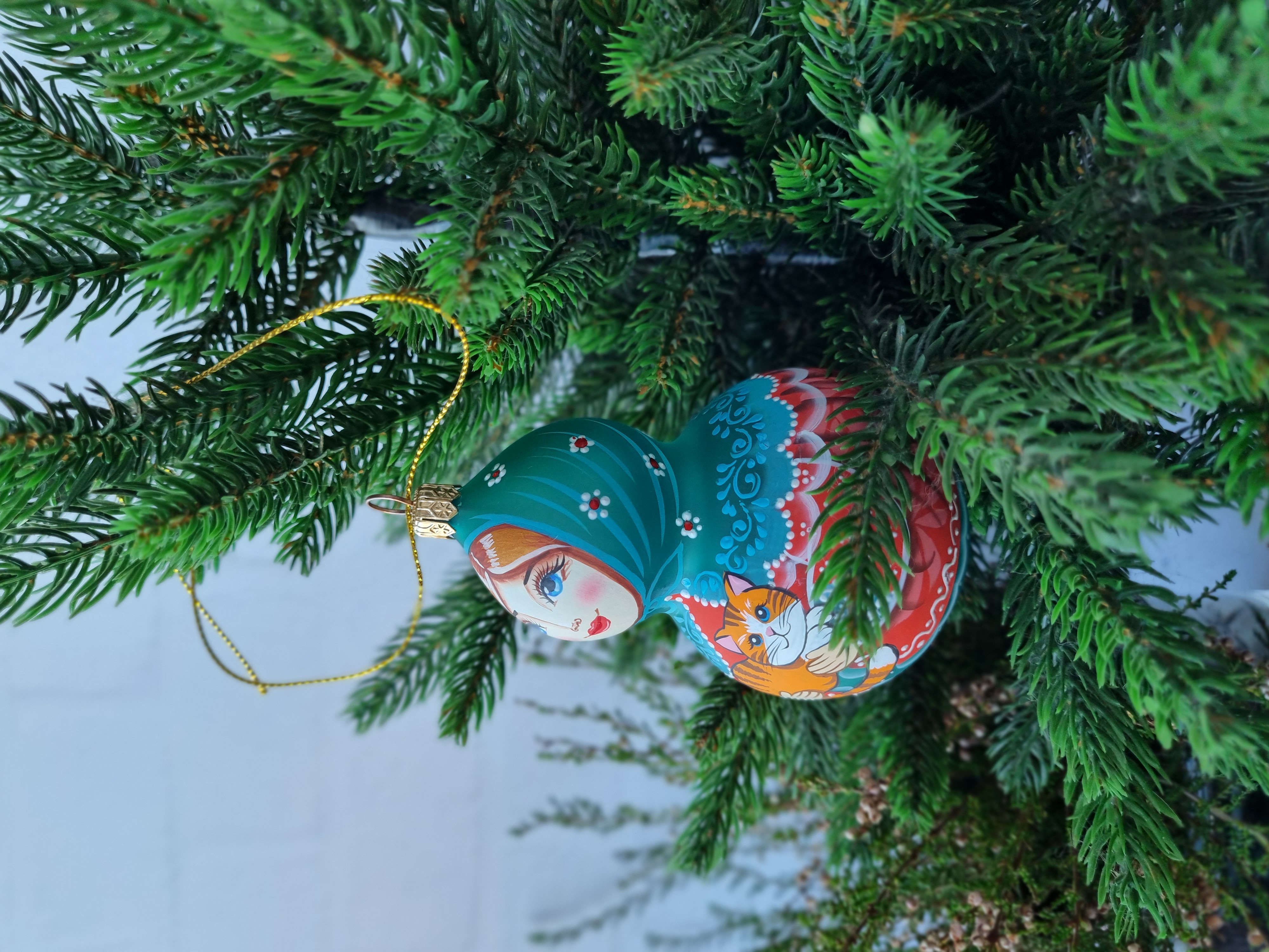 Матрешка Олечка, стеклянная матрешка на ёлку, авторская работа, ручная роспись. Выполнена темперными красками, художественная роспись, ручная работа, игрушка стеклянная, свободной выдувки, высота 10см диаметр 6см. Красивая и нежная ёлочная игрушка, будет прекрасным подарком для Ваших друзе и близких! Бережно упакована в красивую коробку!