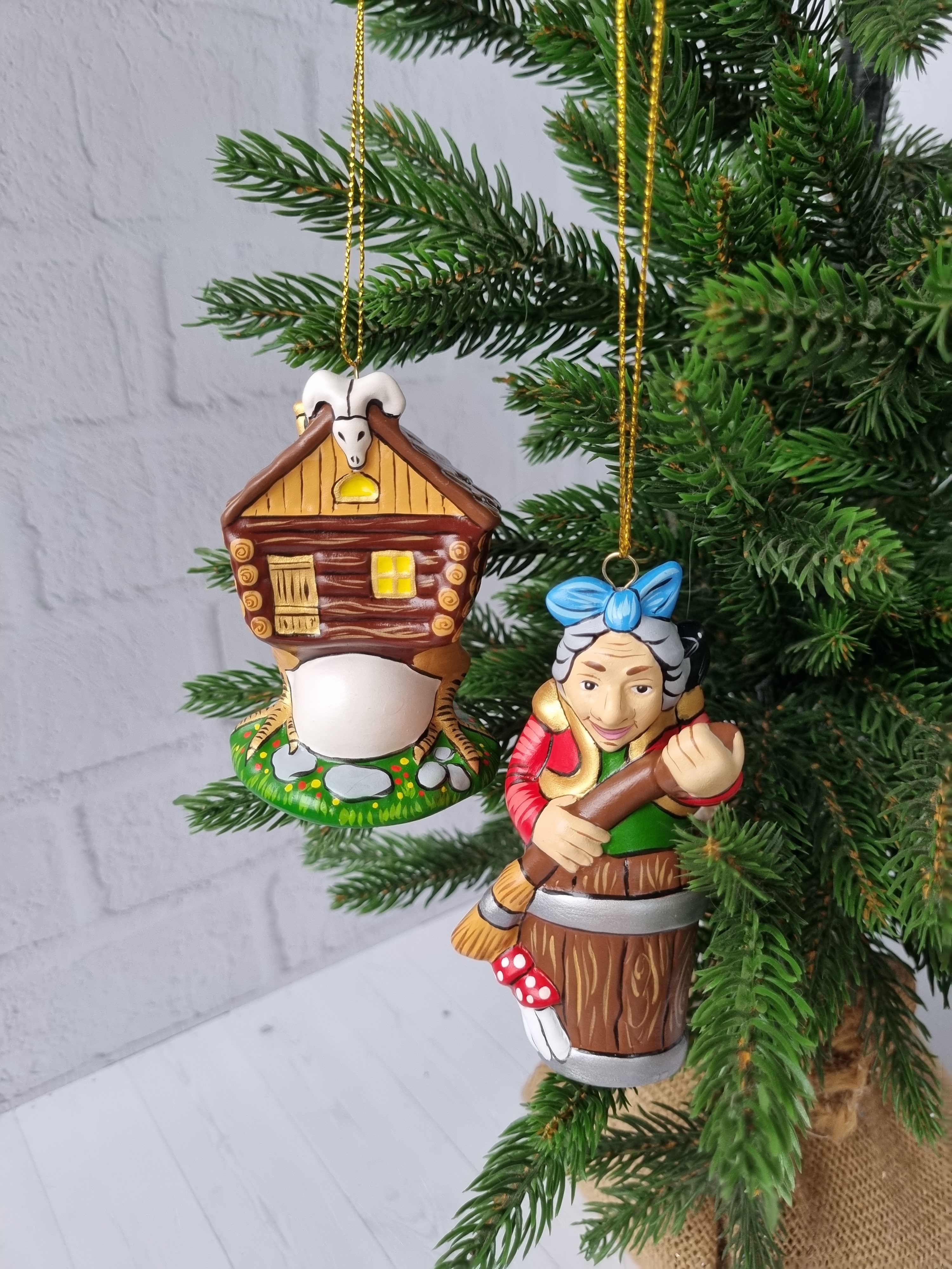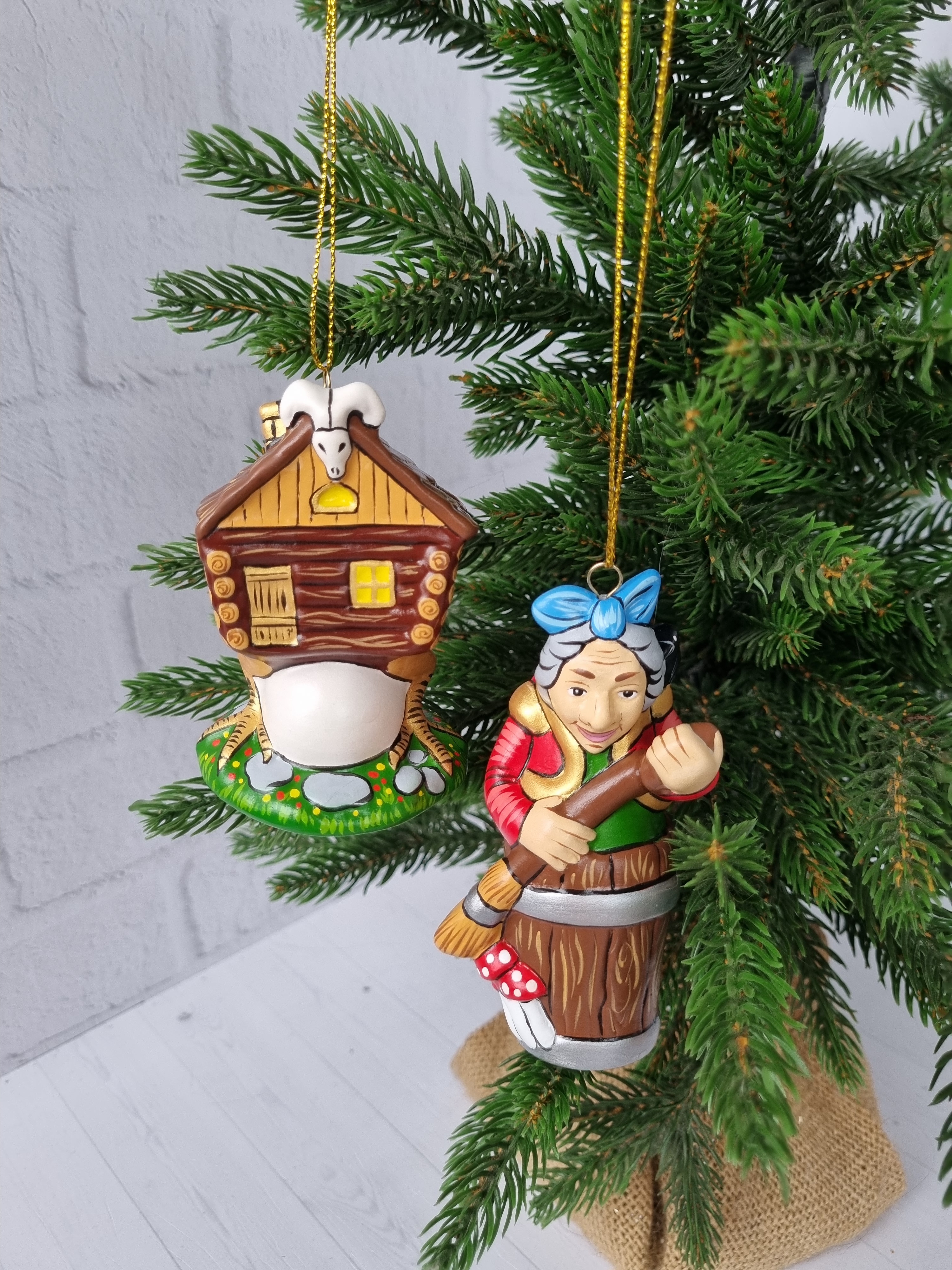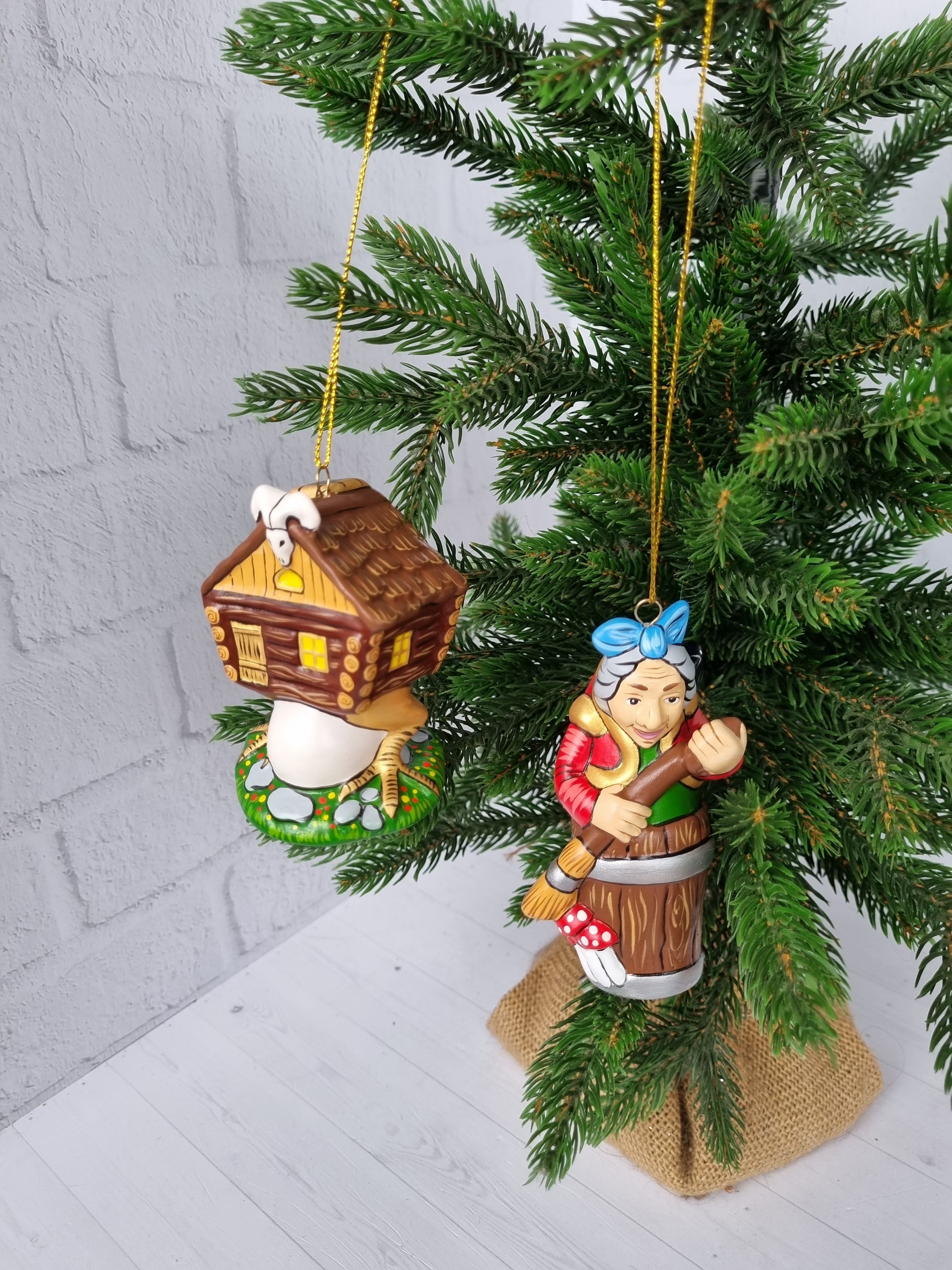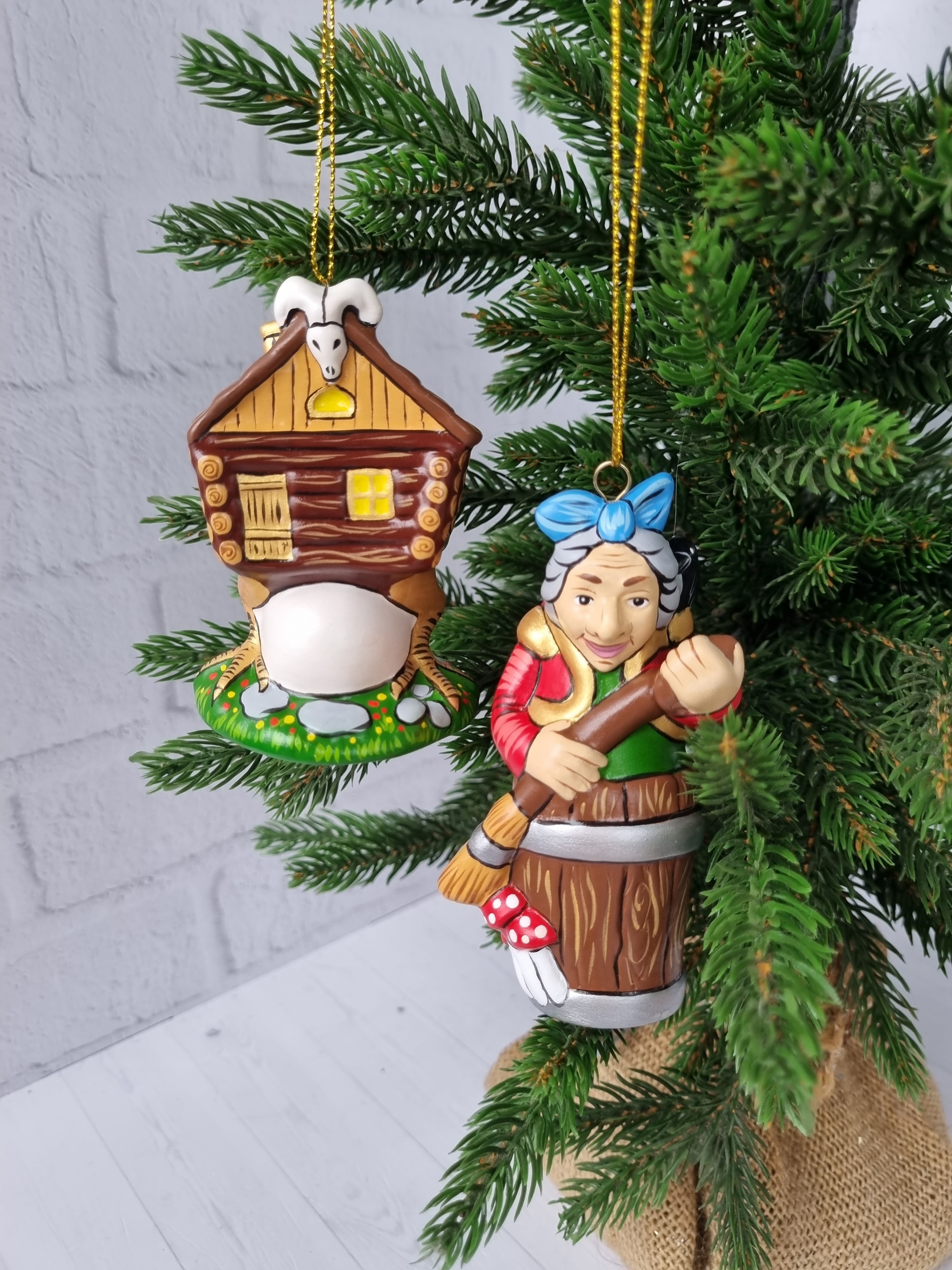 Набор игрушек из фарфора на ёлку юаба-яга и избушка на курьих ножках