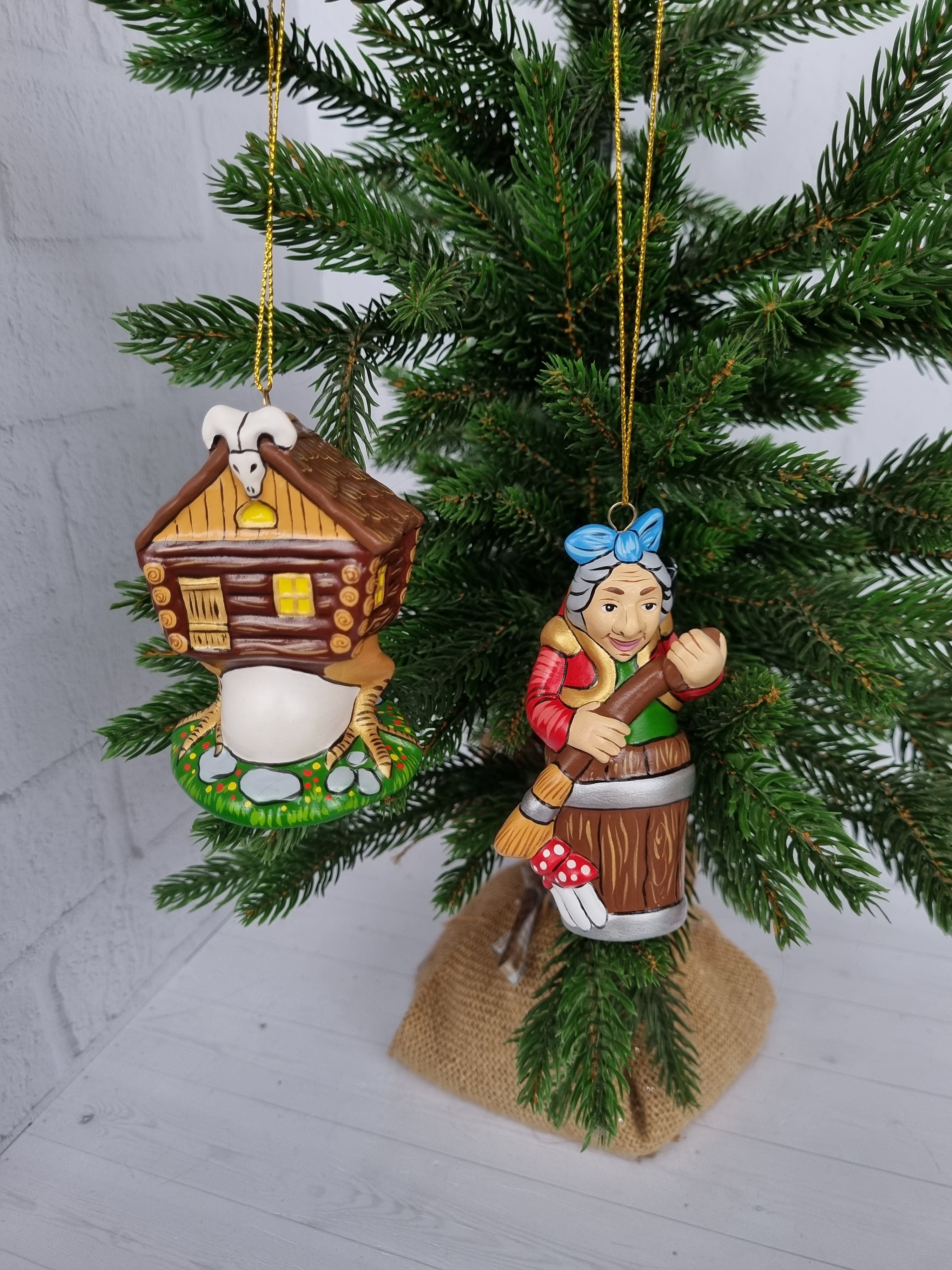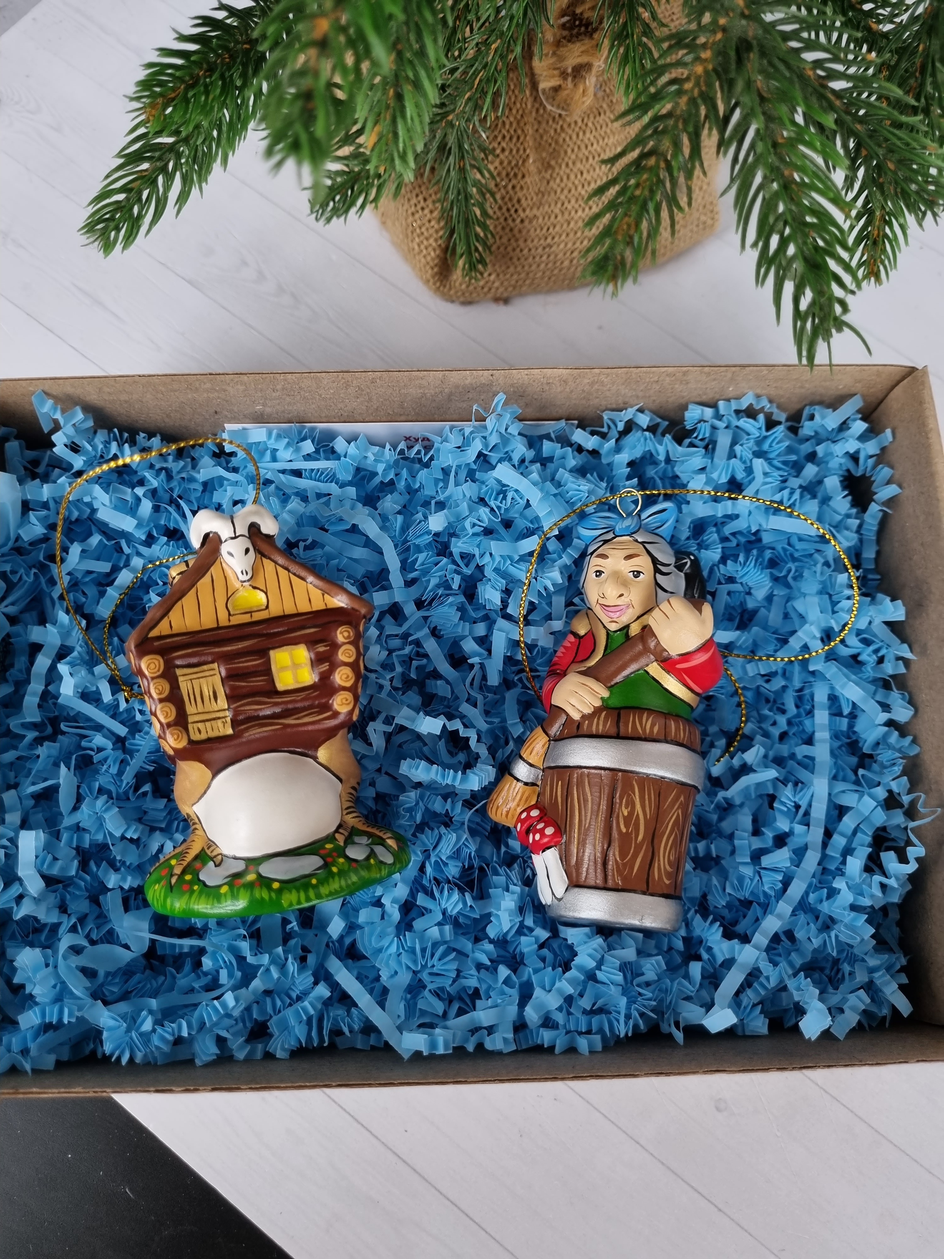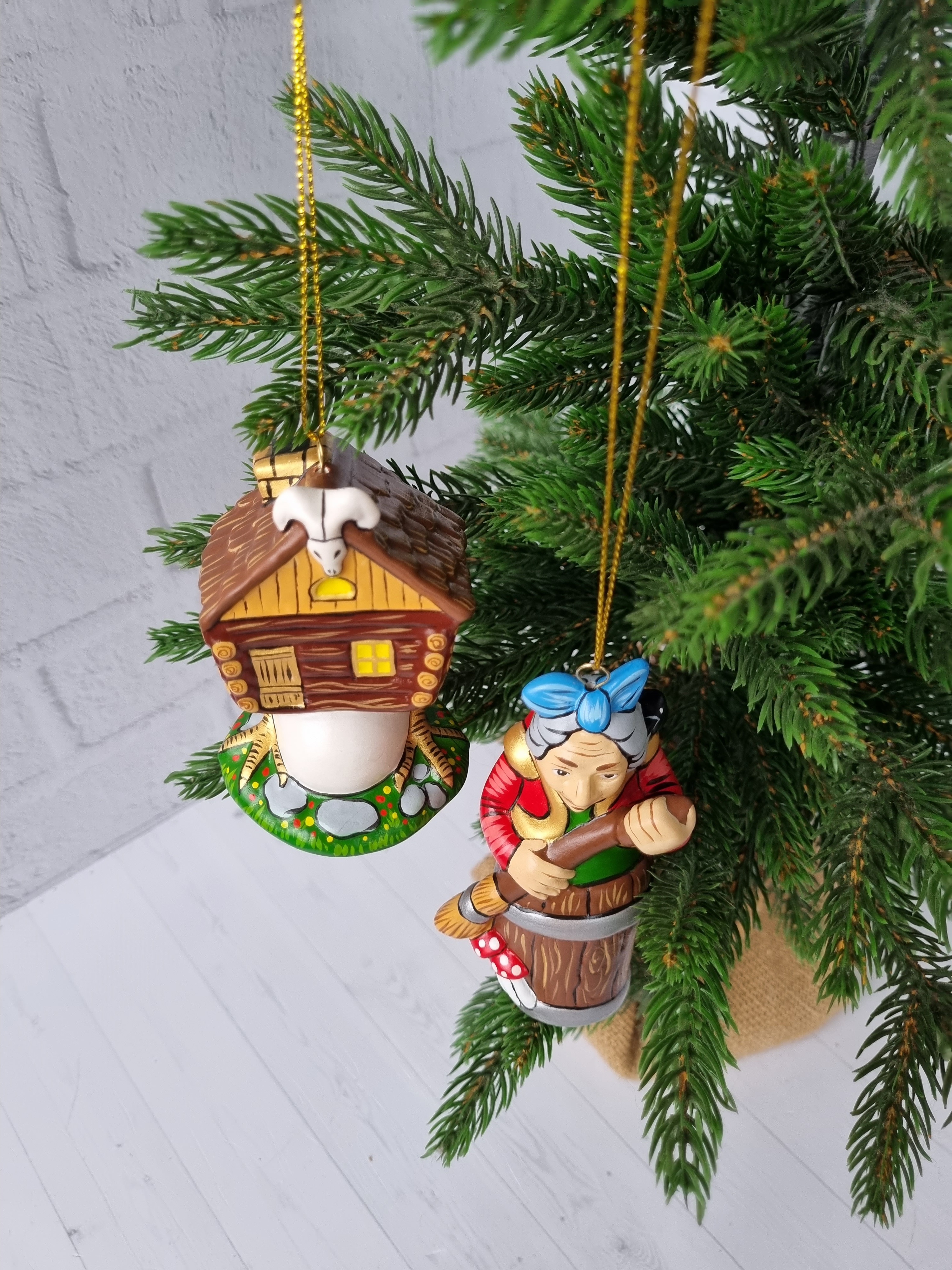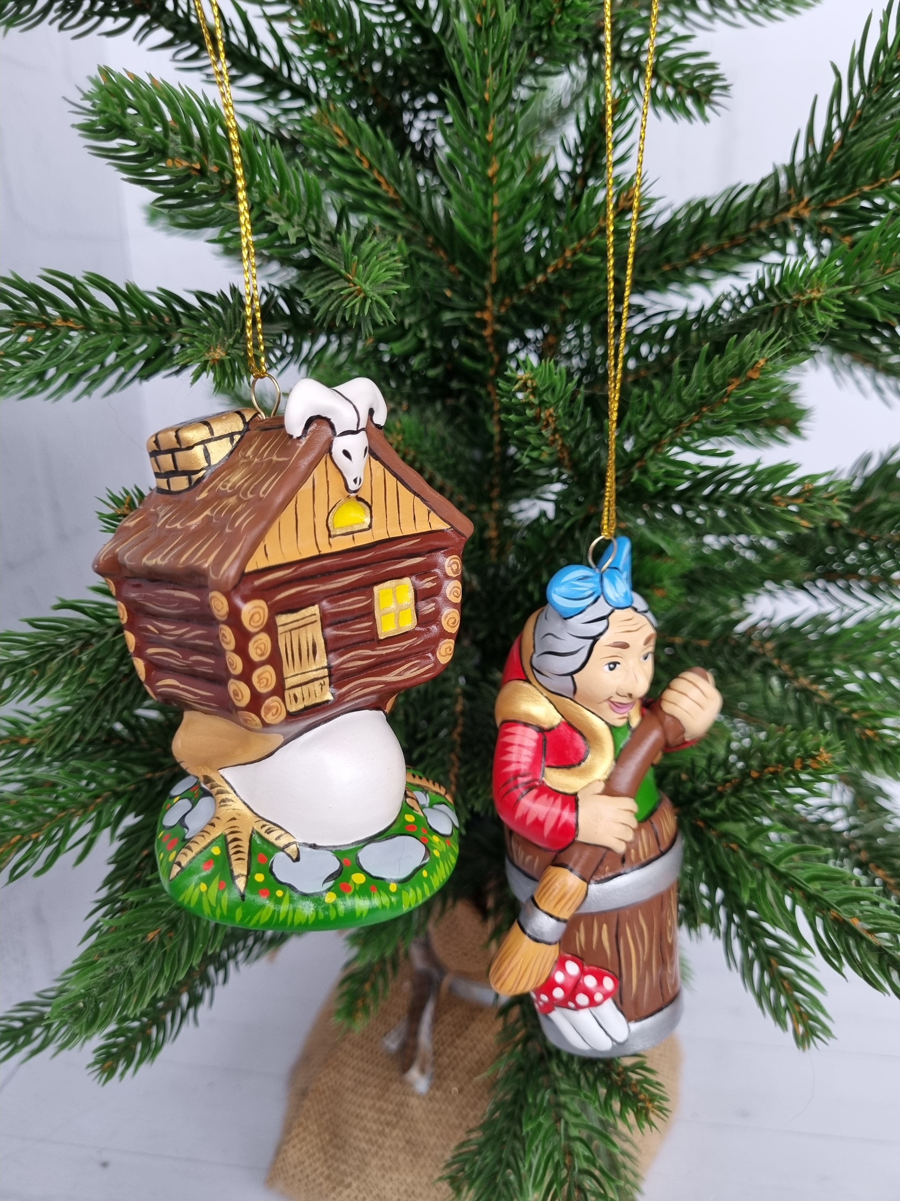 Набор игрушек из фарфора на ёлку юаба-яга и избушка на курьих ножках