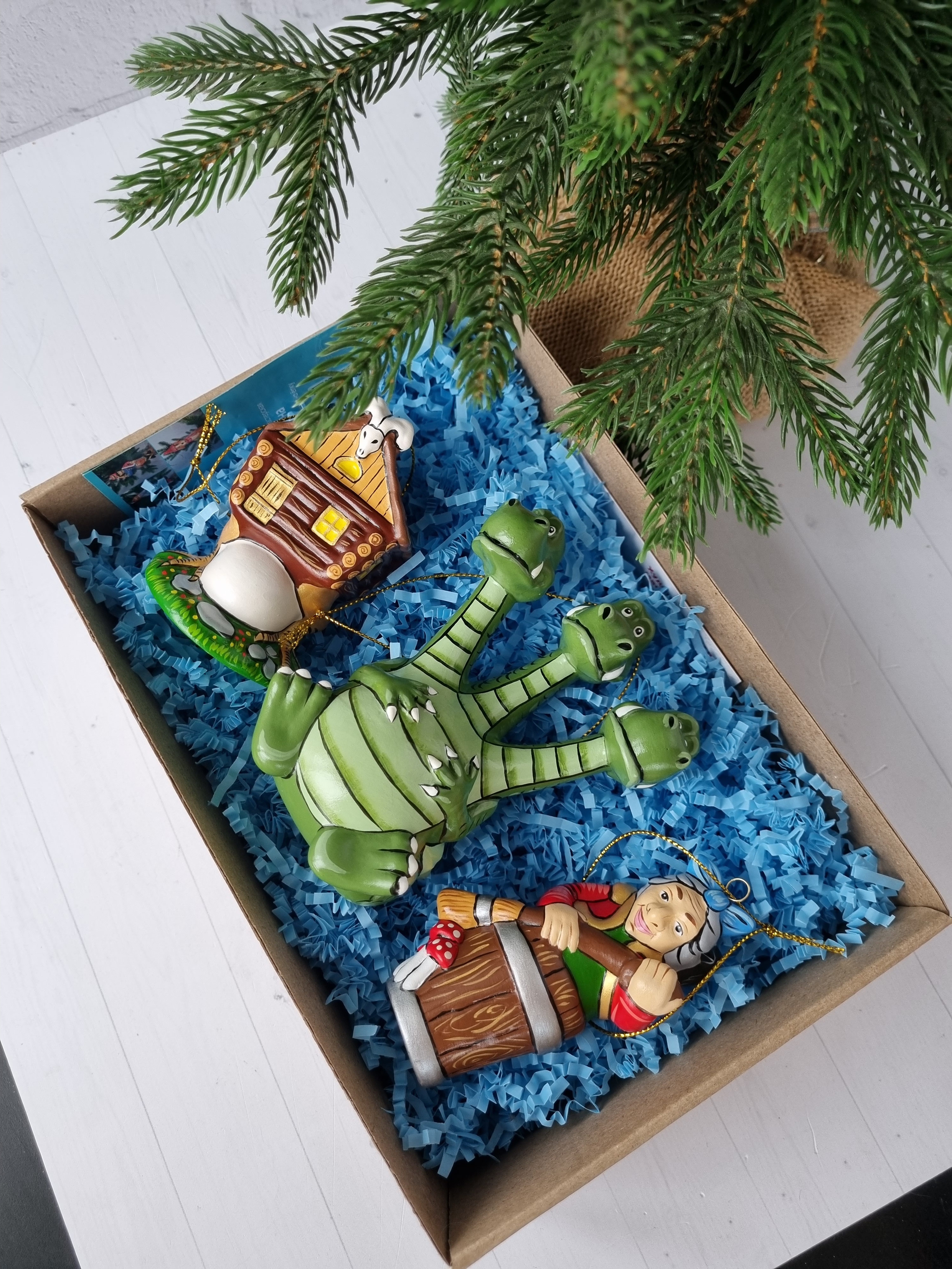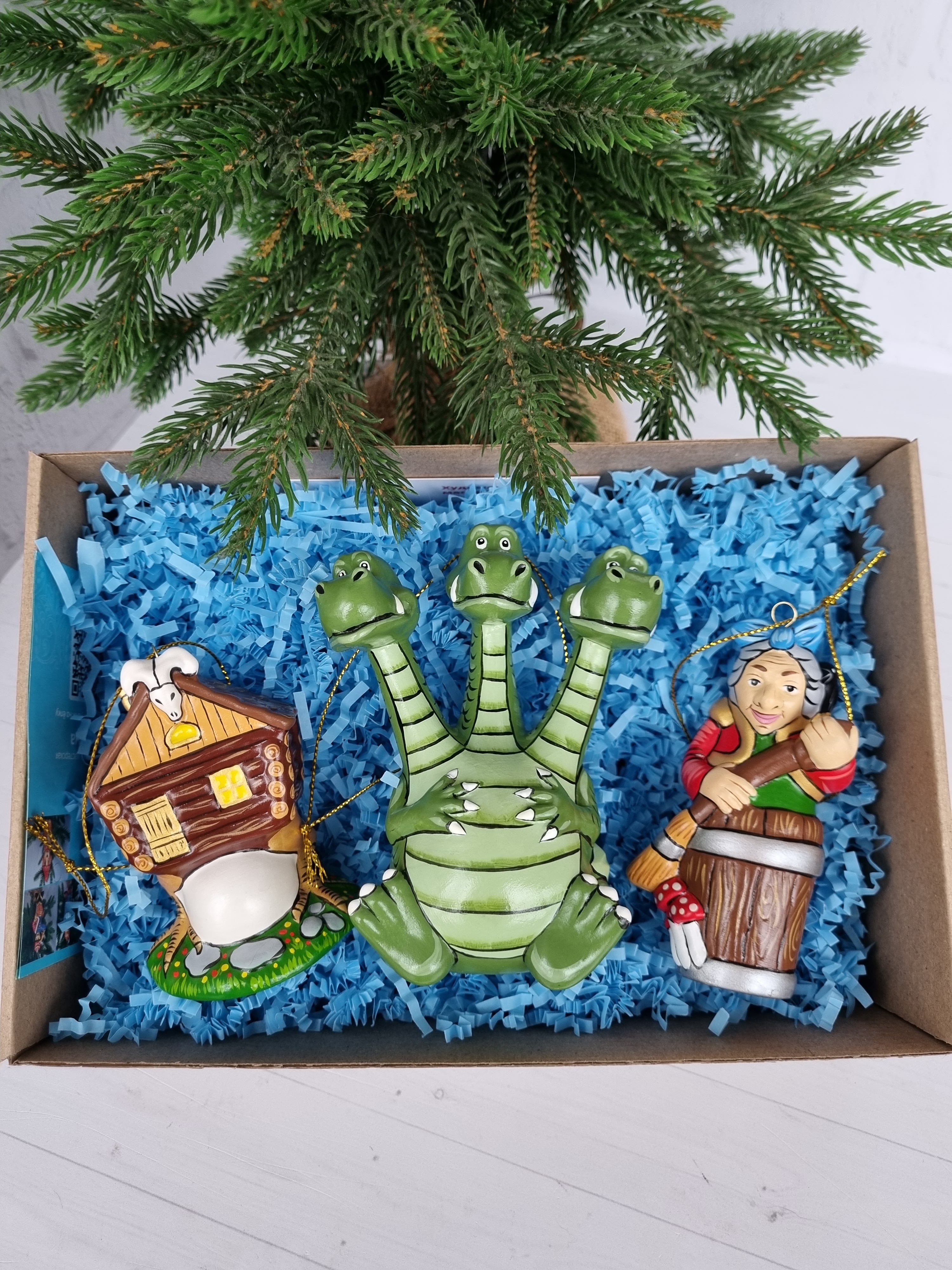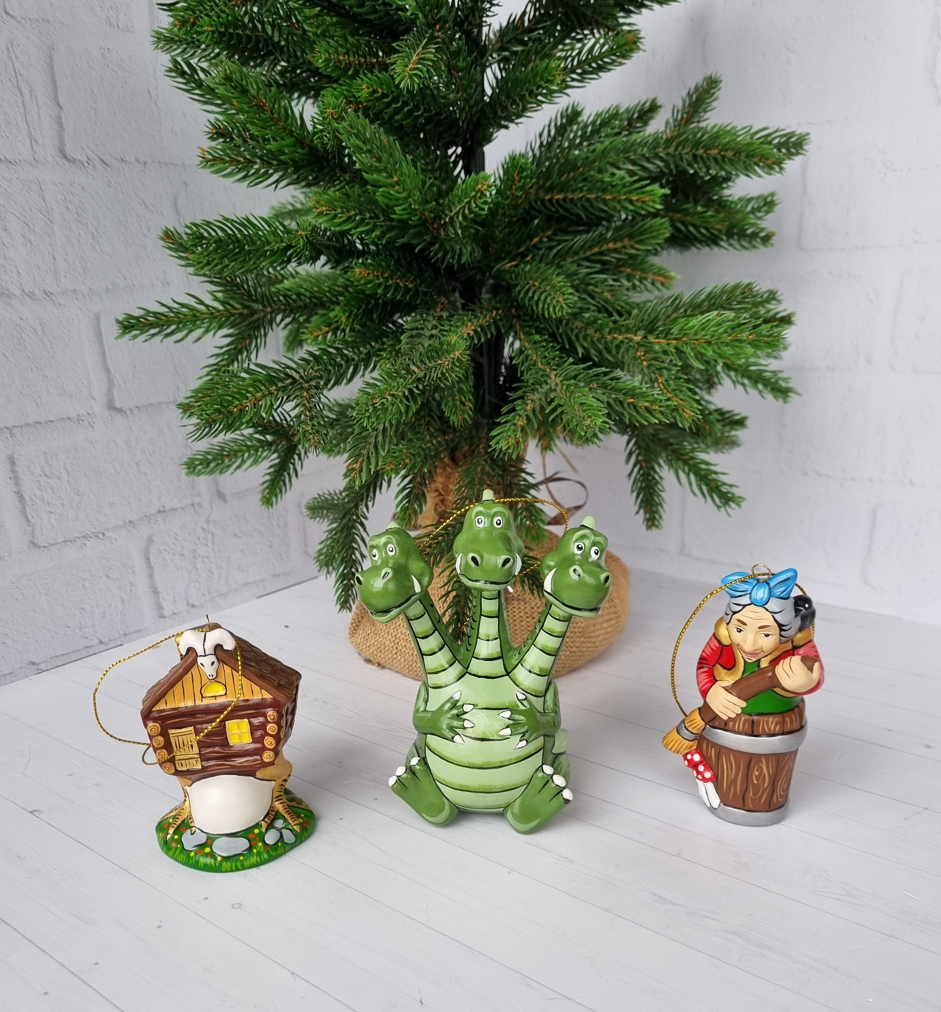 Набор игрушек на ёлку из фарфора избушка, горыныч и баба-яга