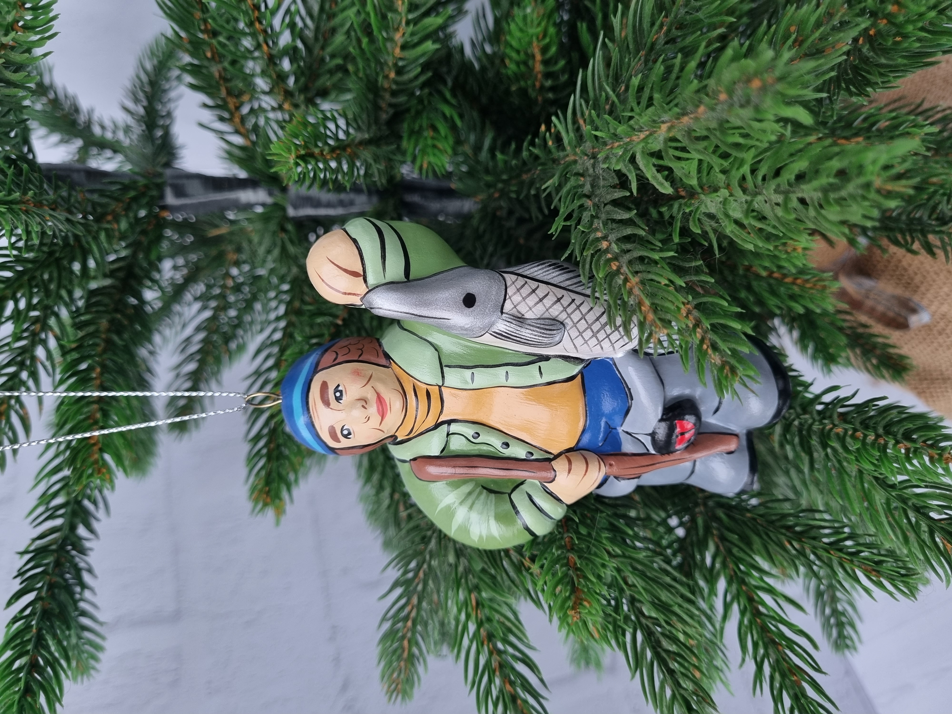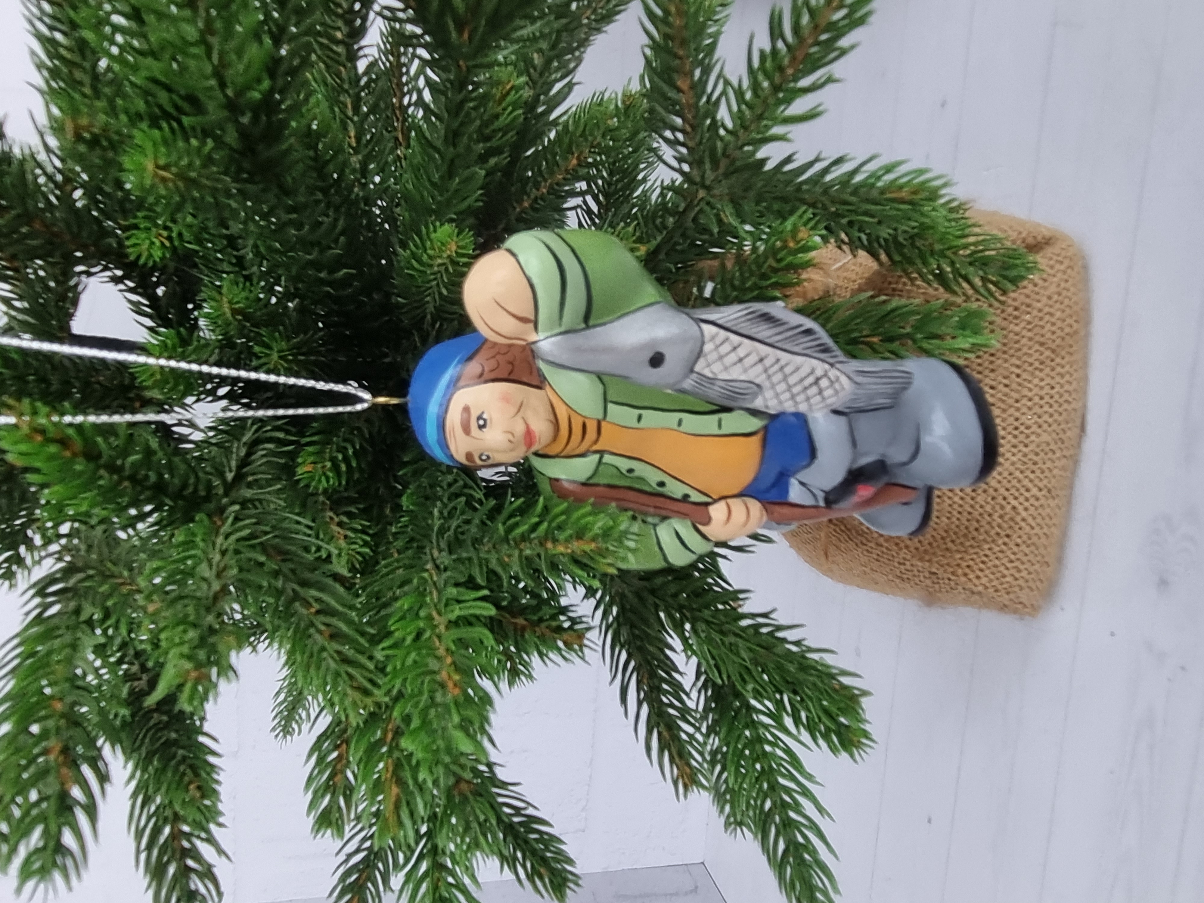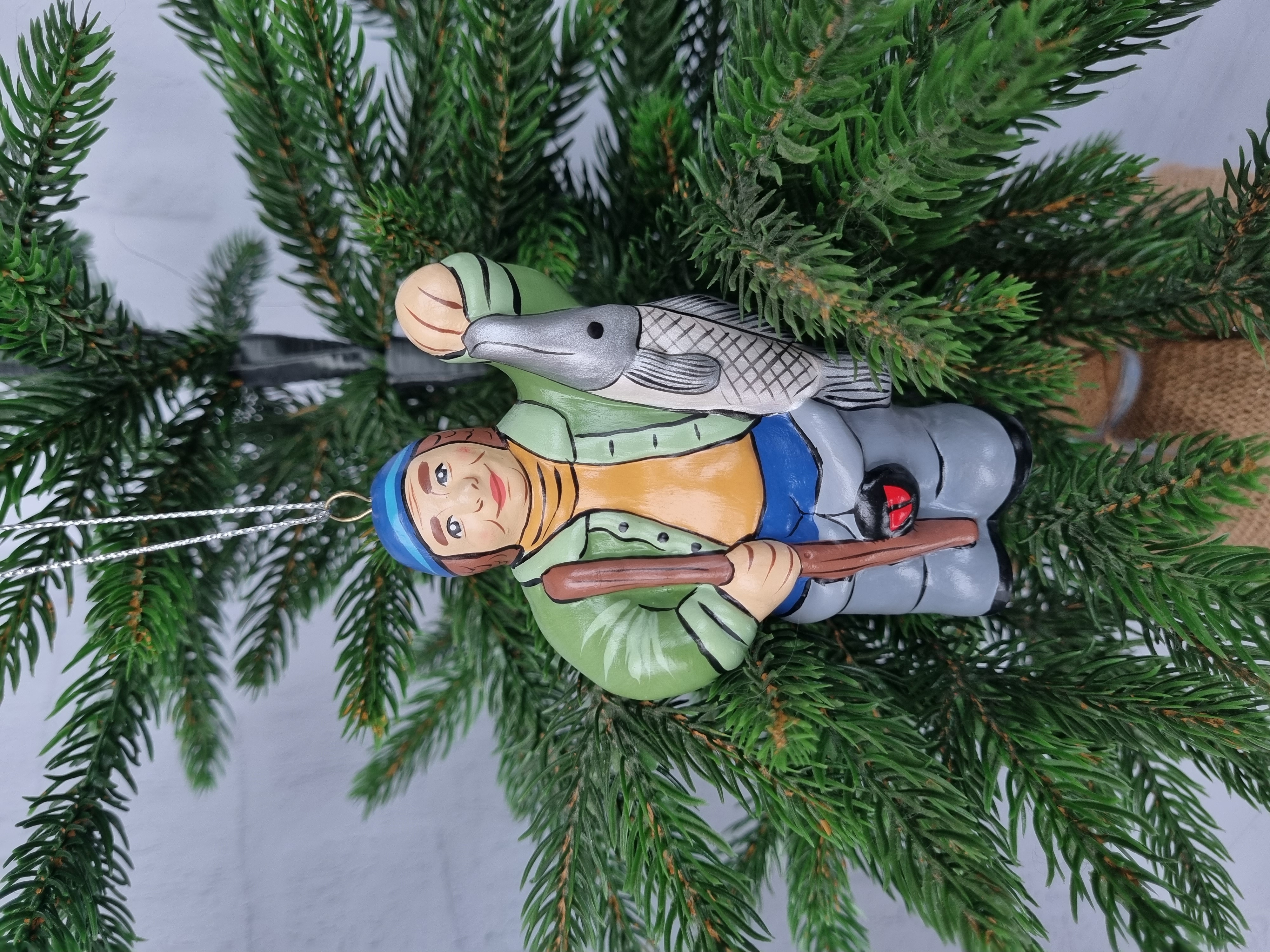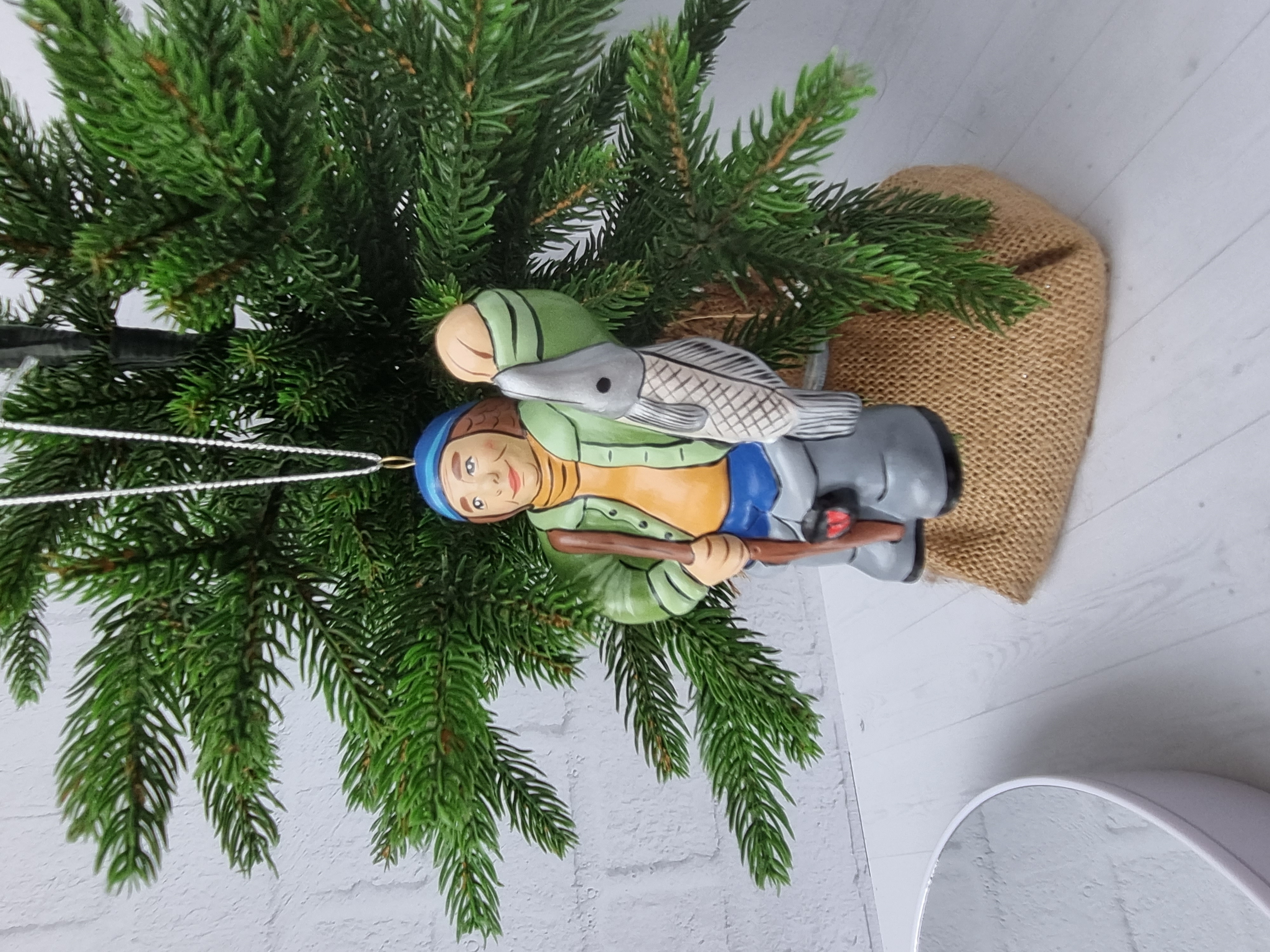 Елочная игрушка из фарфора Рыбак