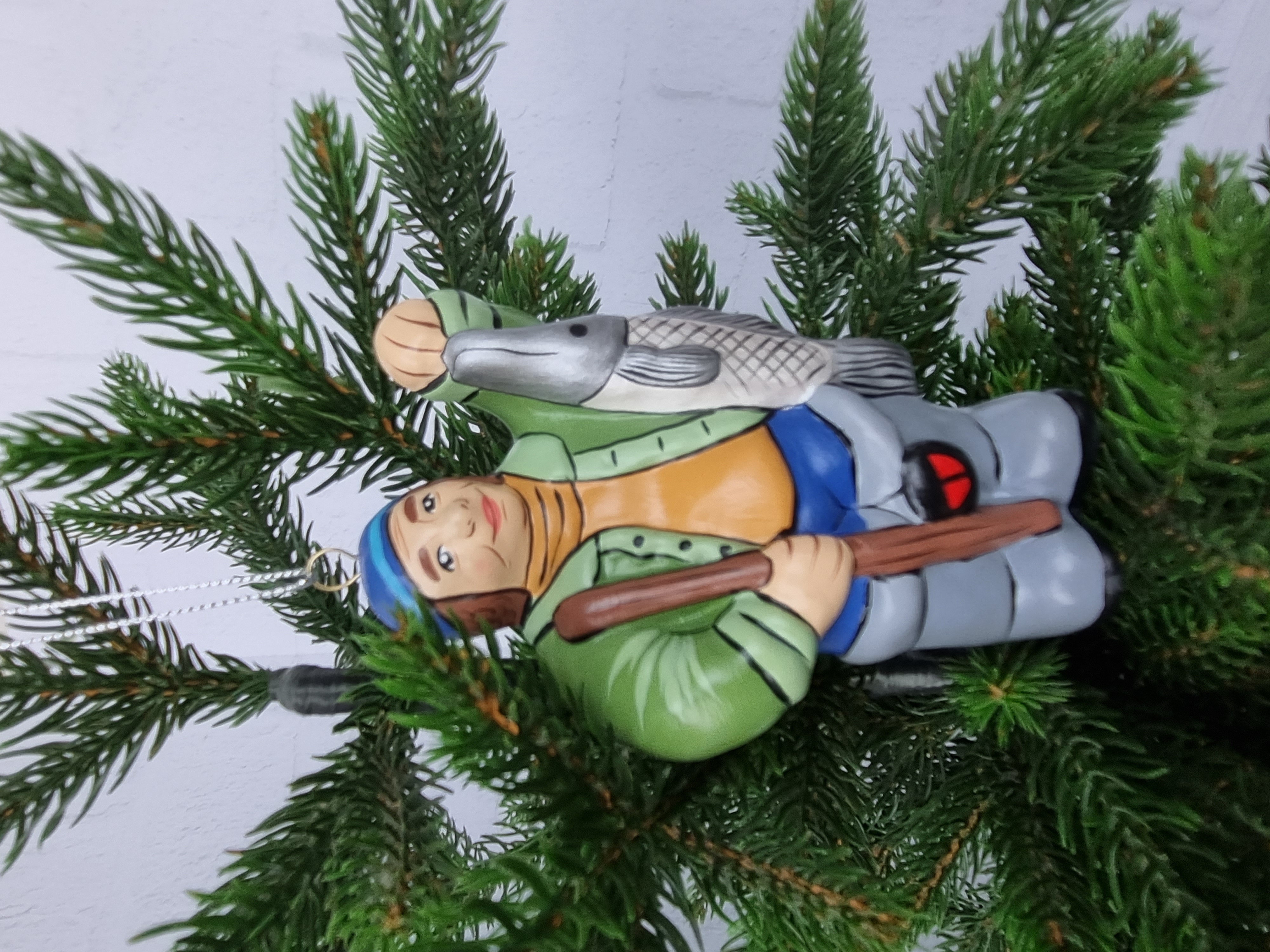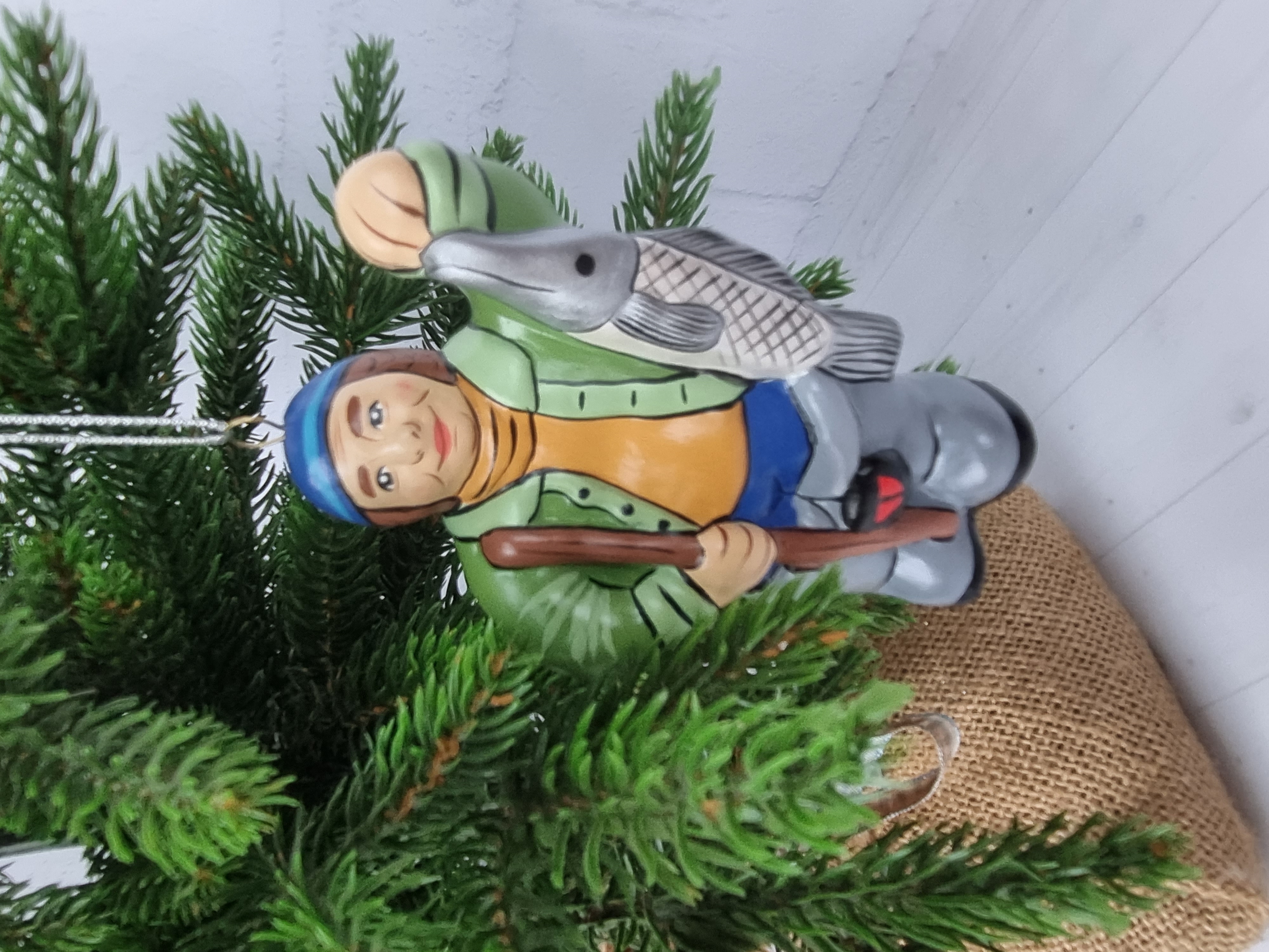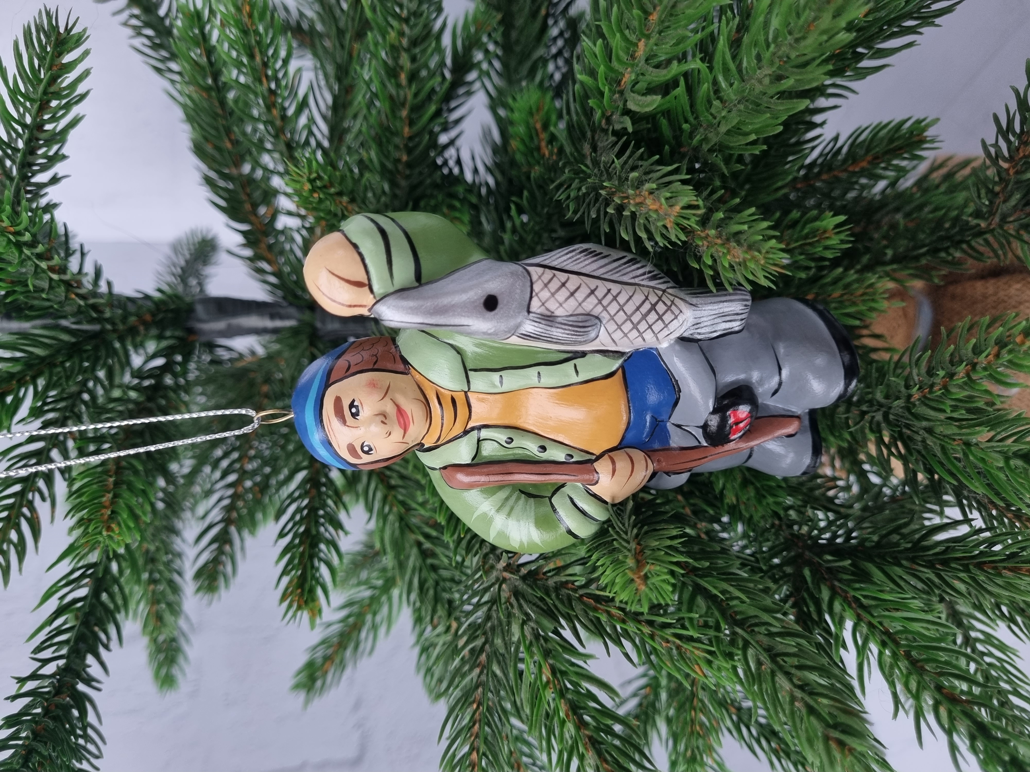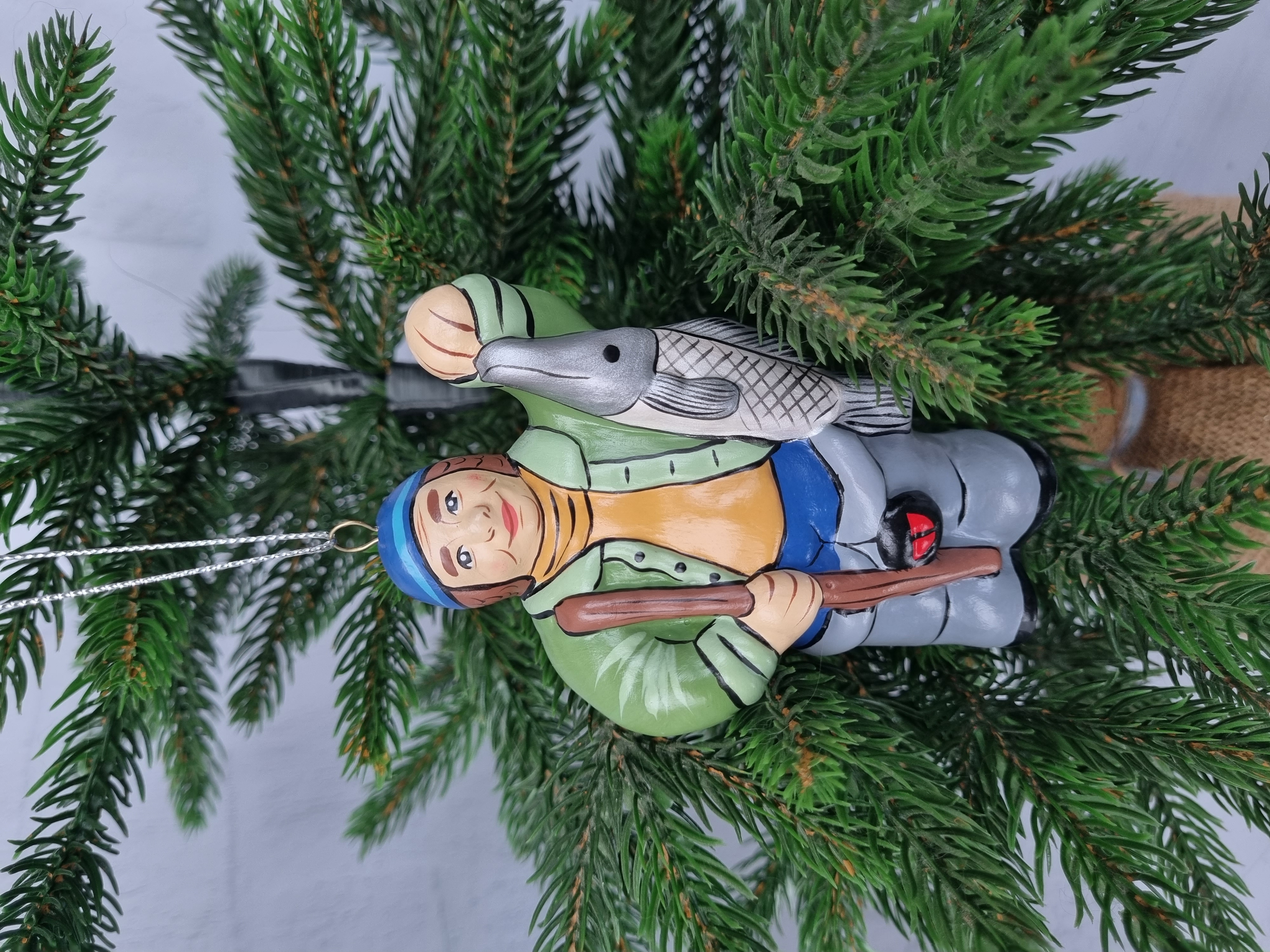 Елочная игрушка из фарфора Рыбак