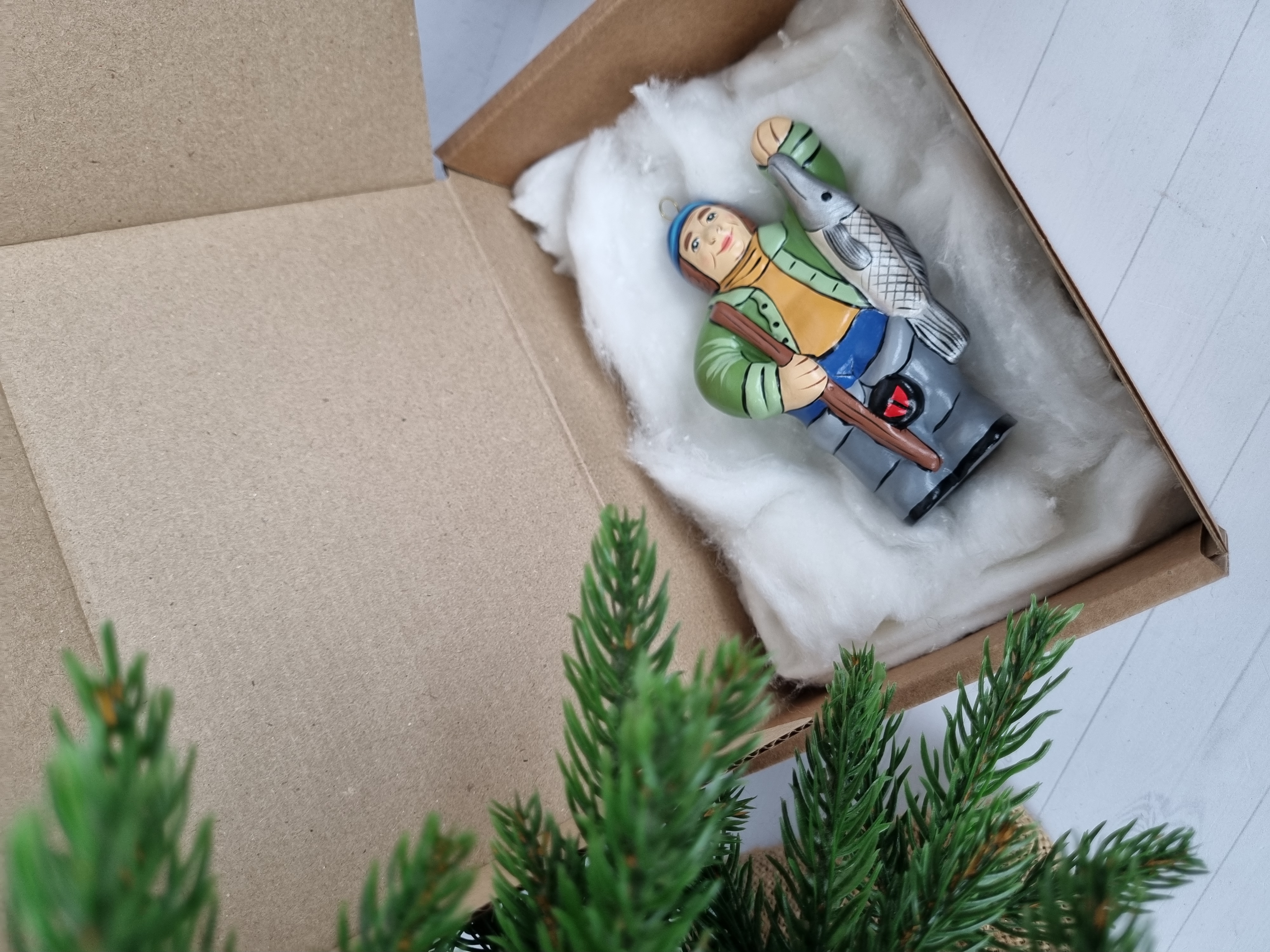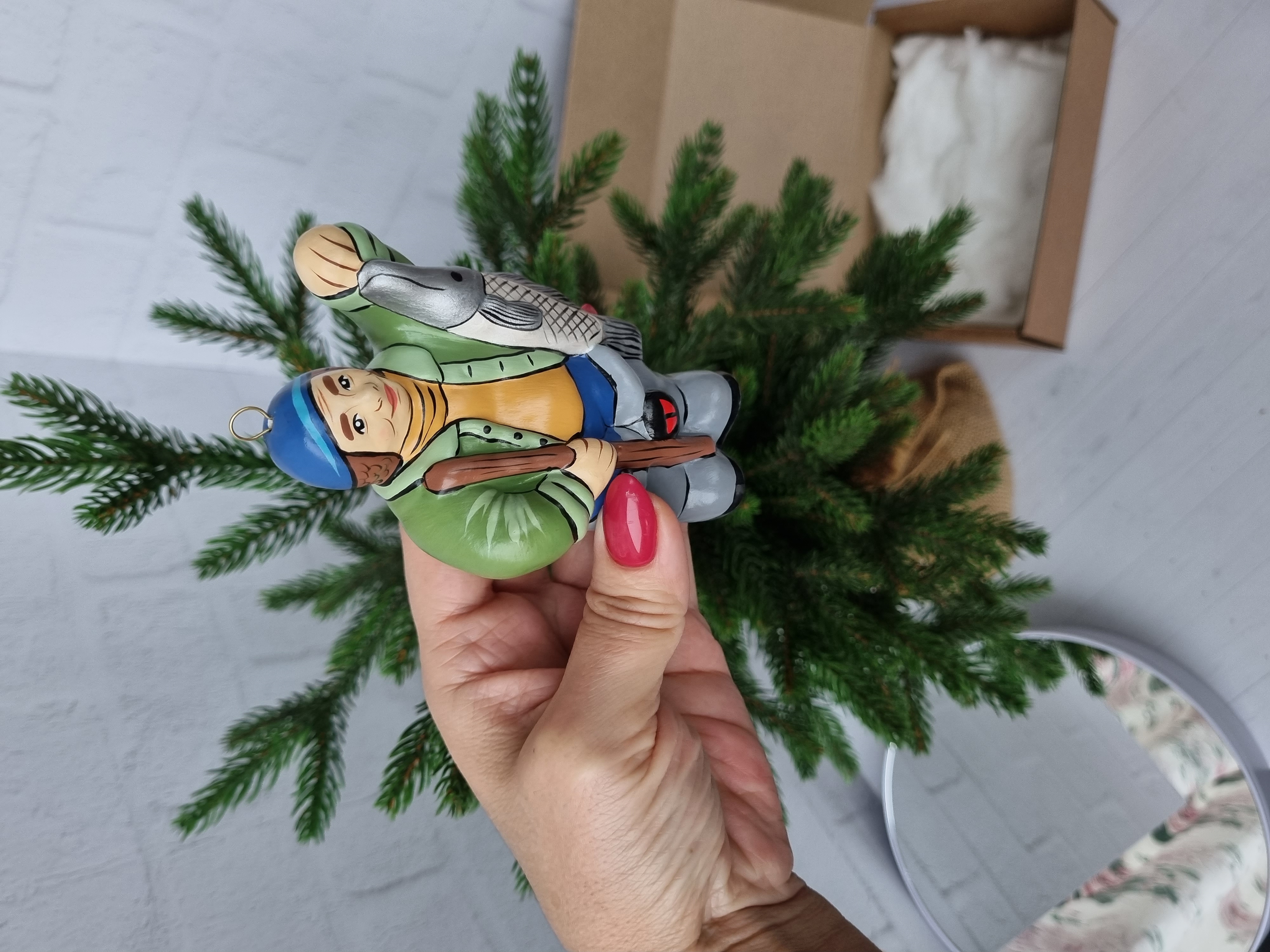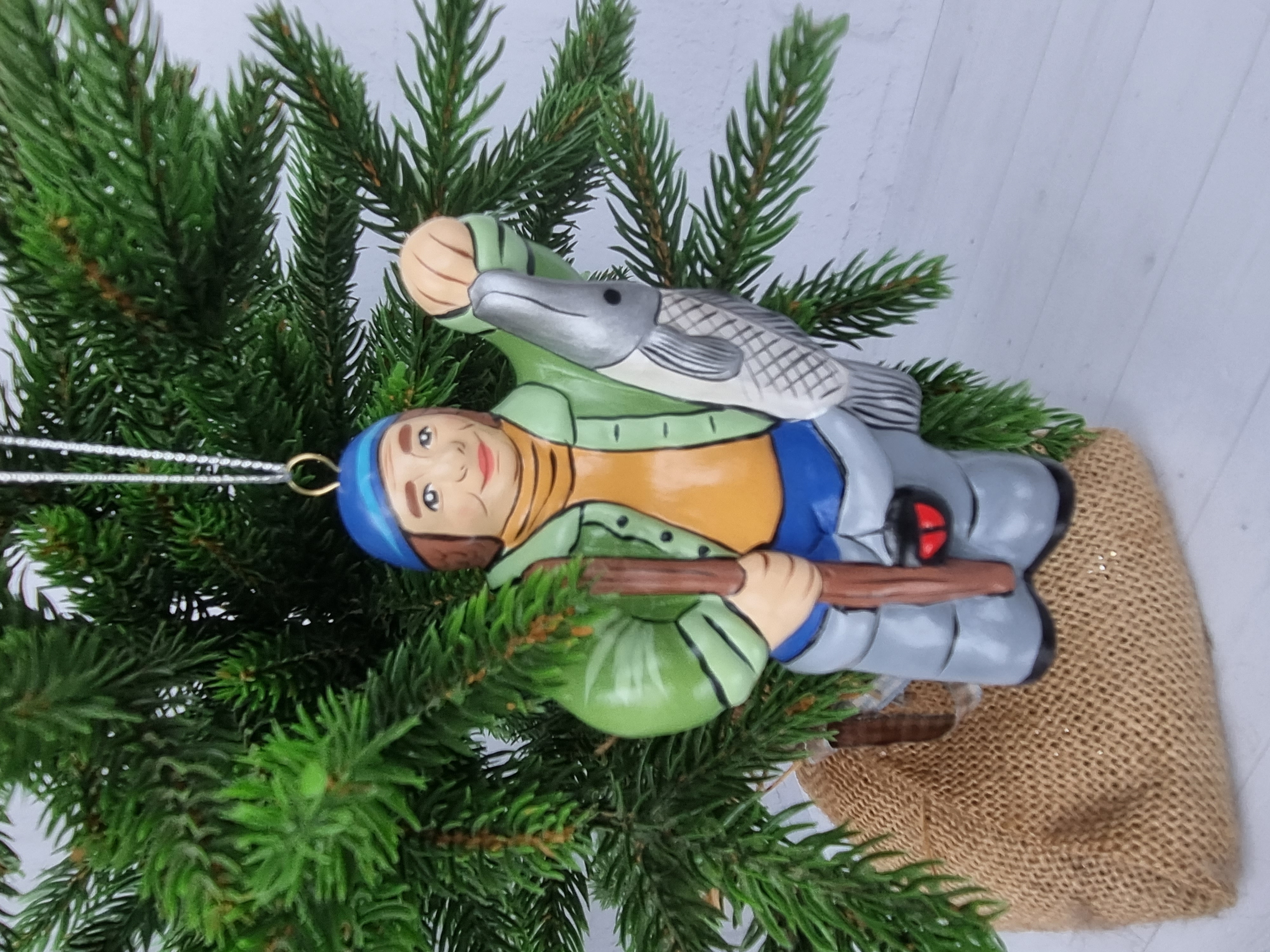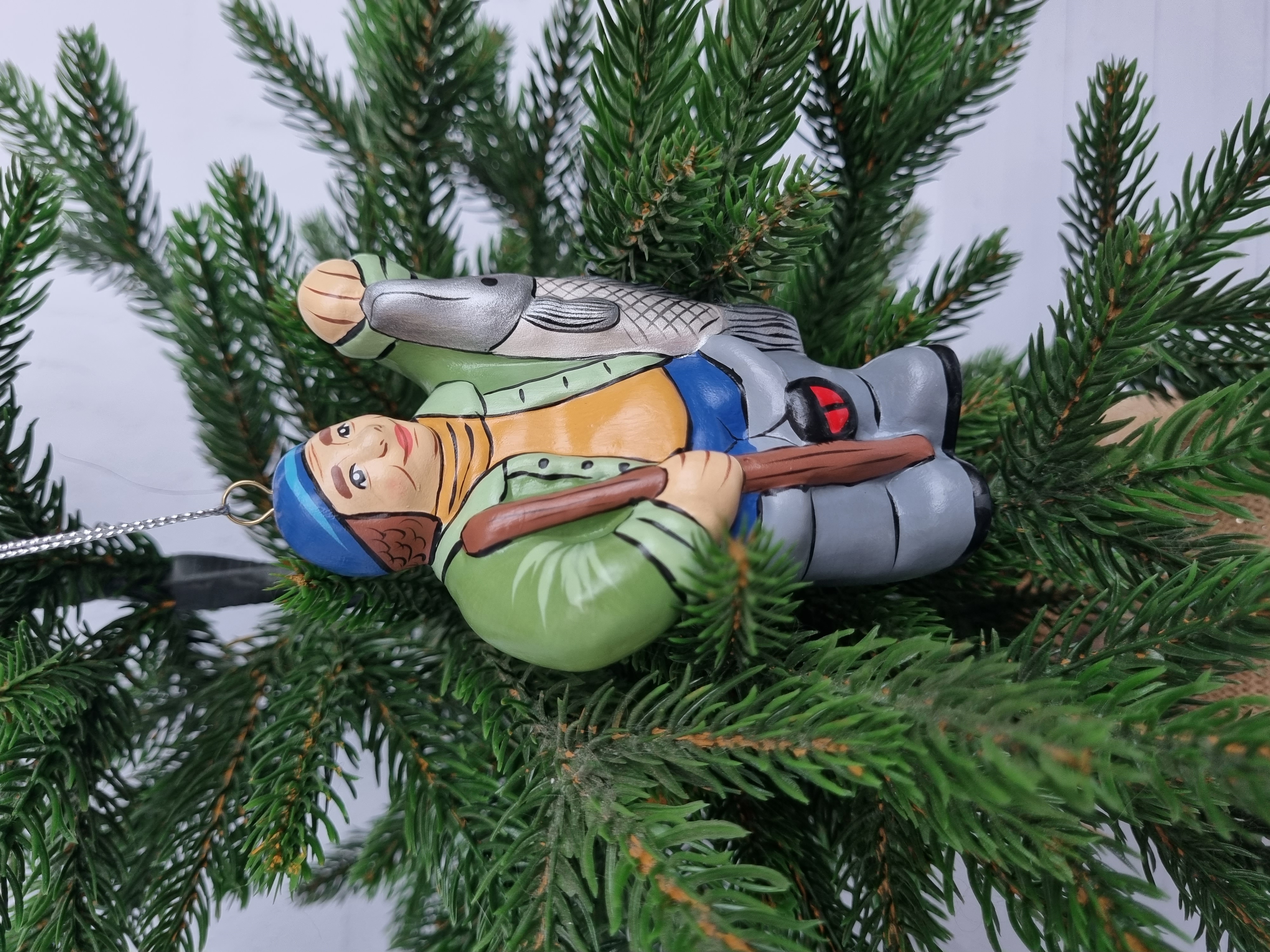 Елочная игрушка из фарфора Рыбак
