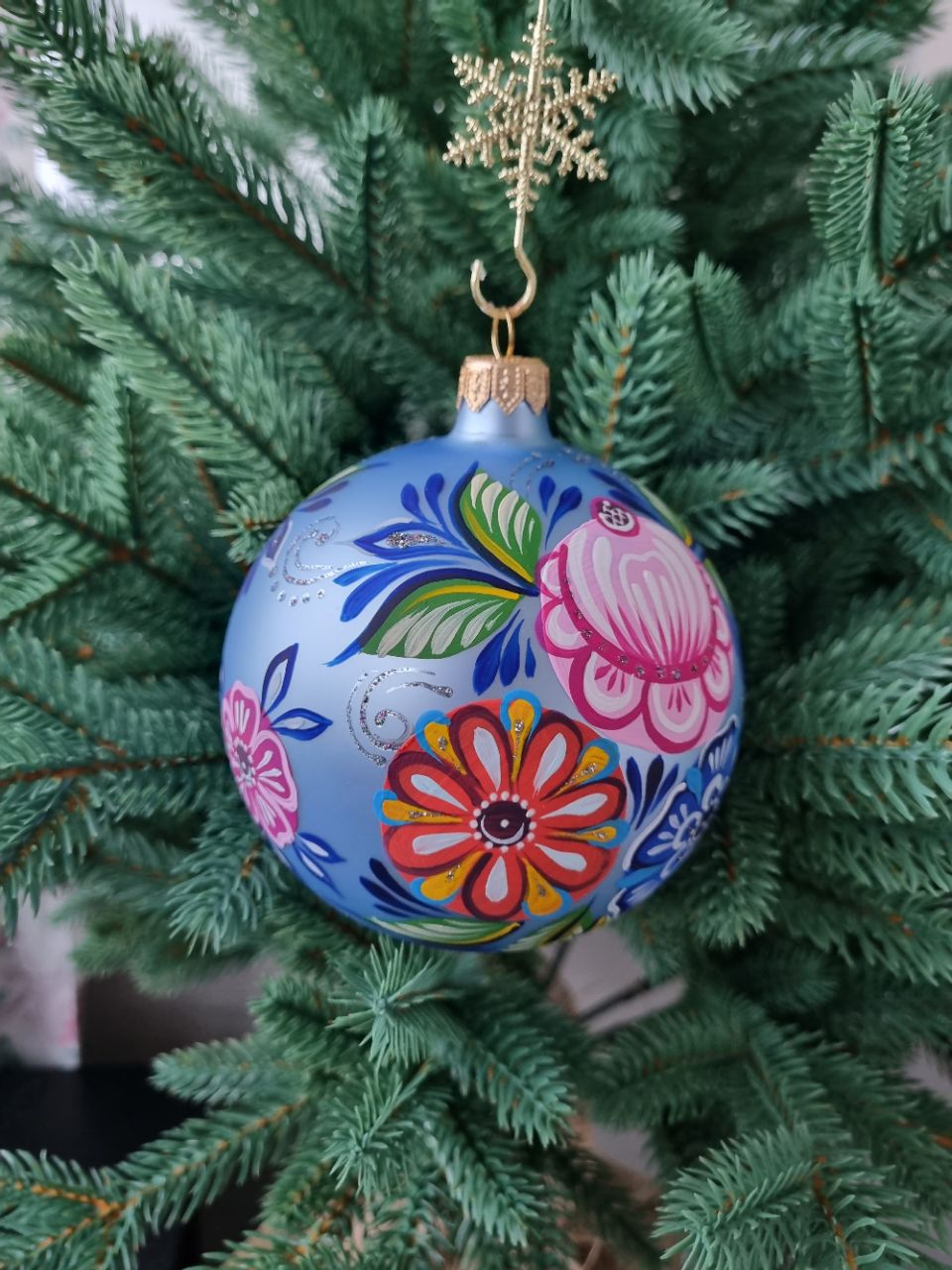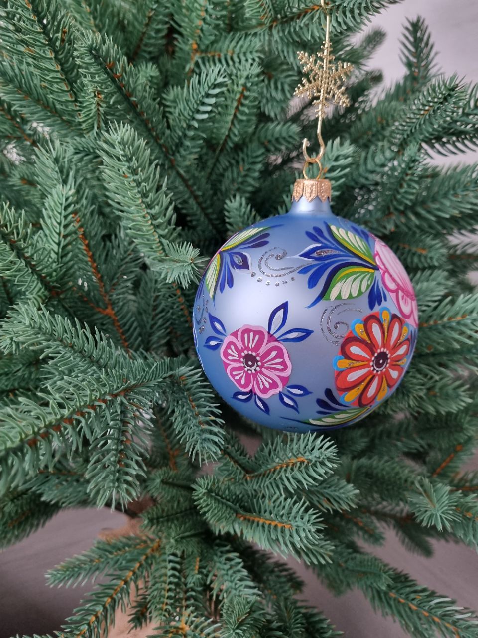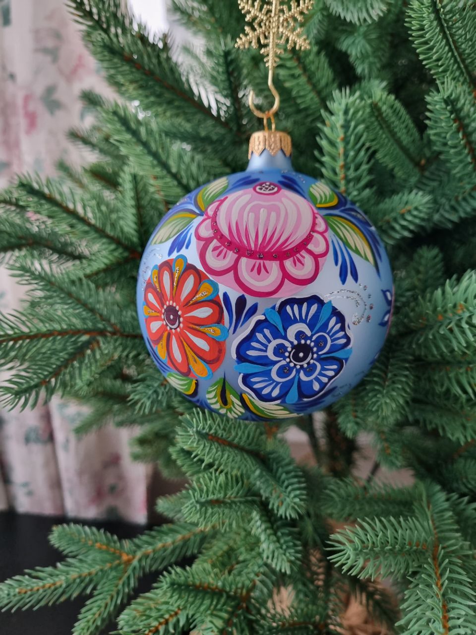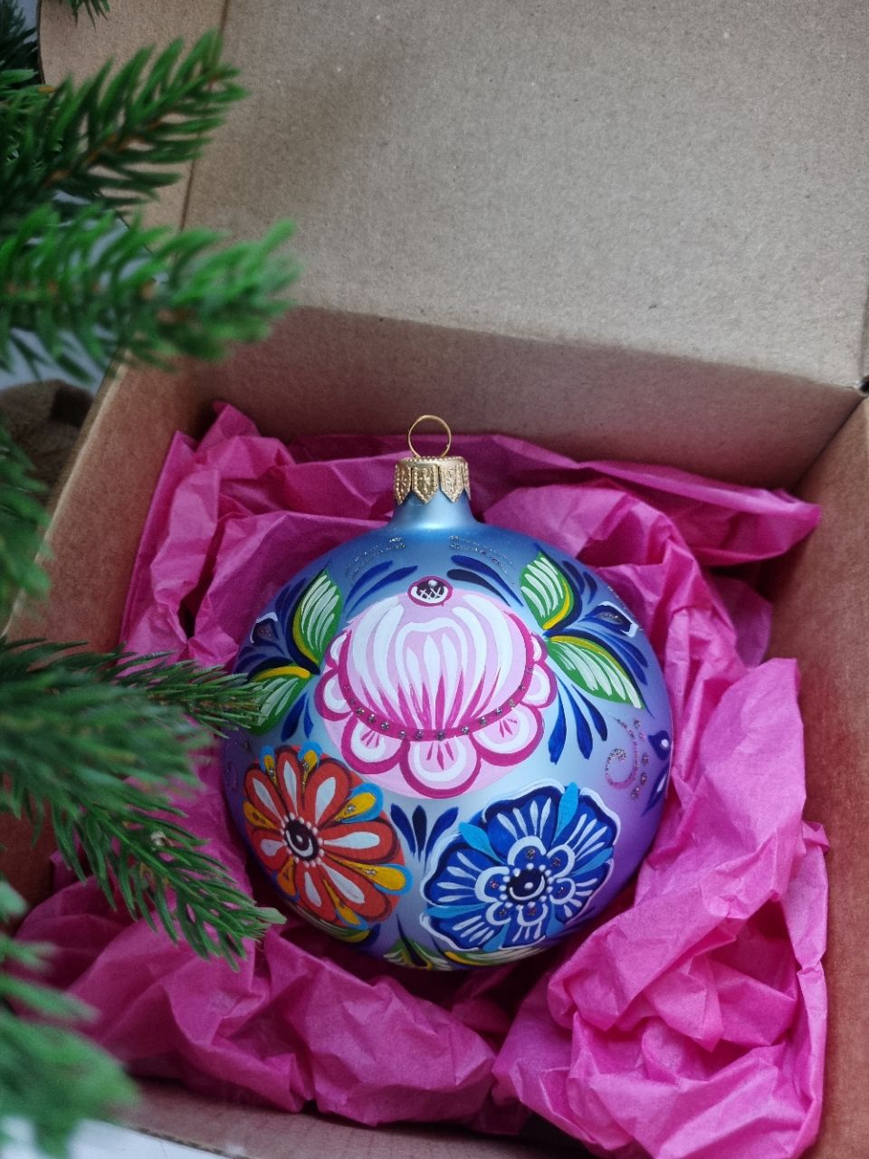 Шар стеклянный "Городецкая роспись, цветы" ручная работа