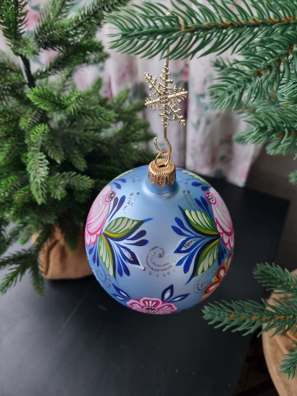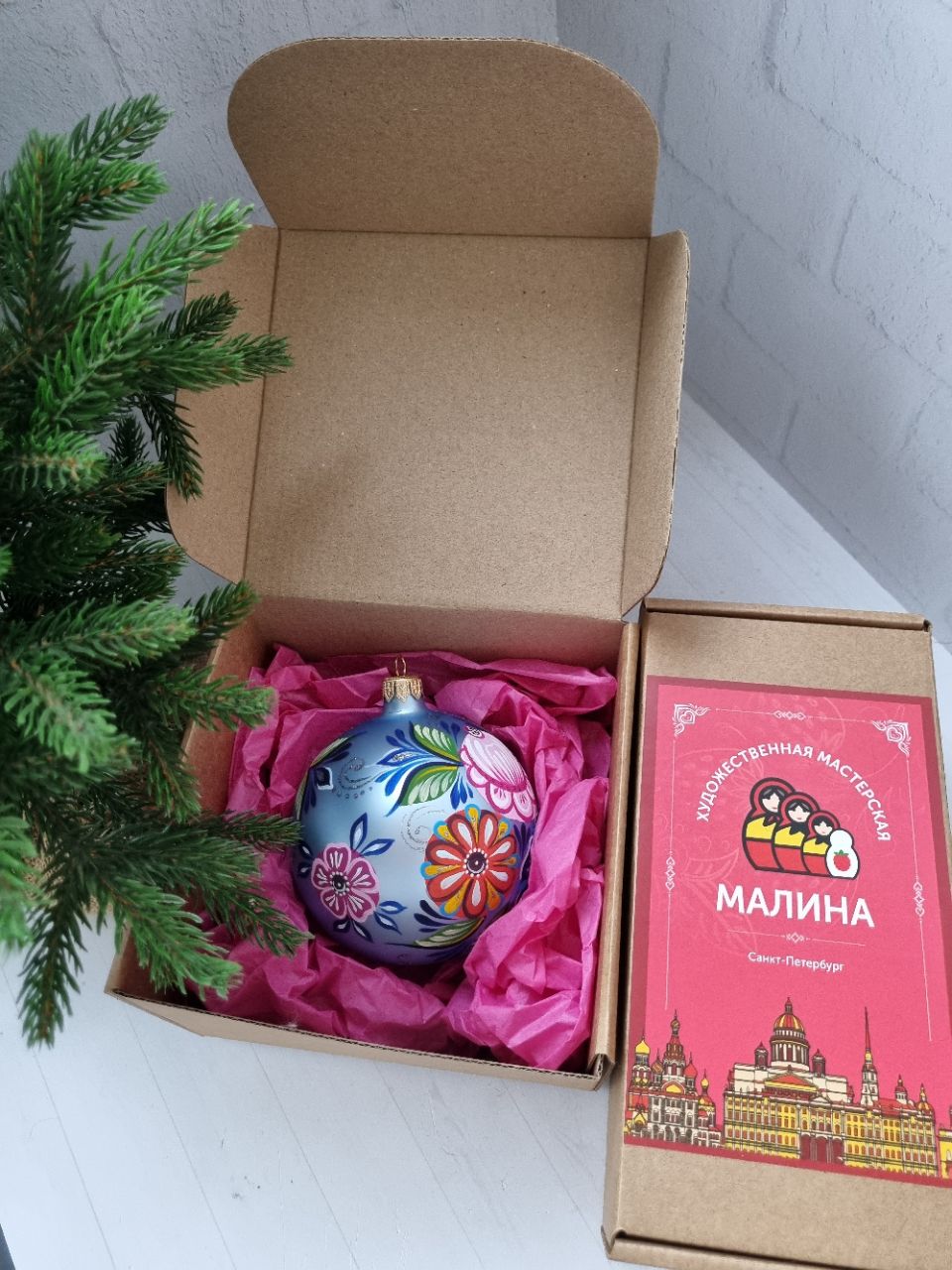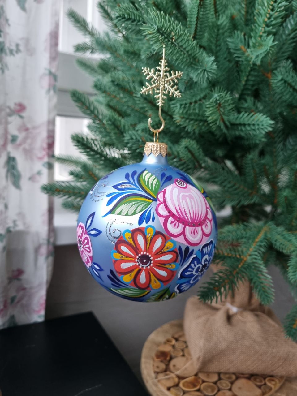 Шар стеклянный "Городецкая роспись, цветы" ручная работа