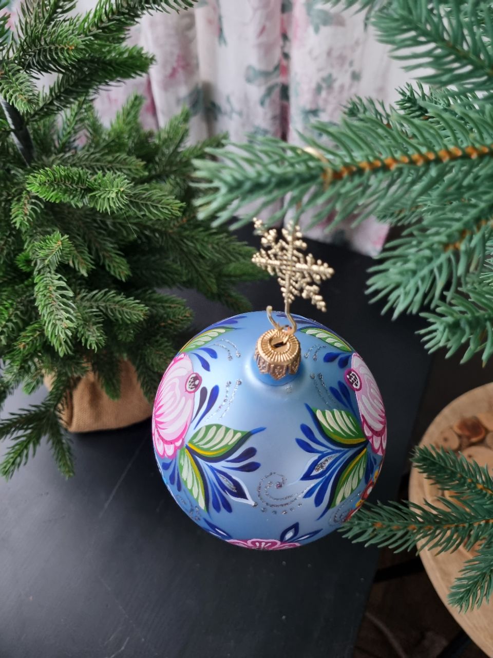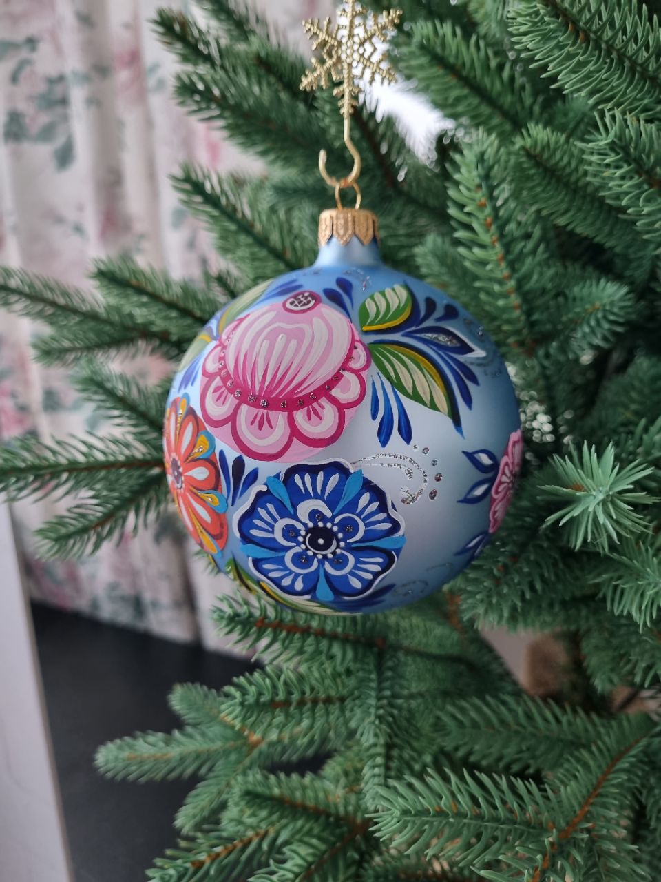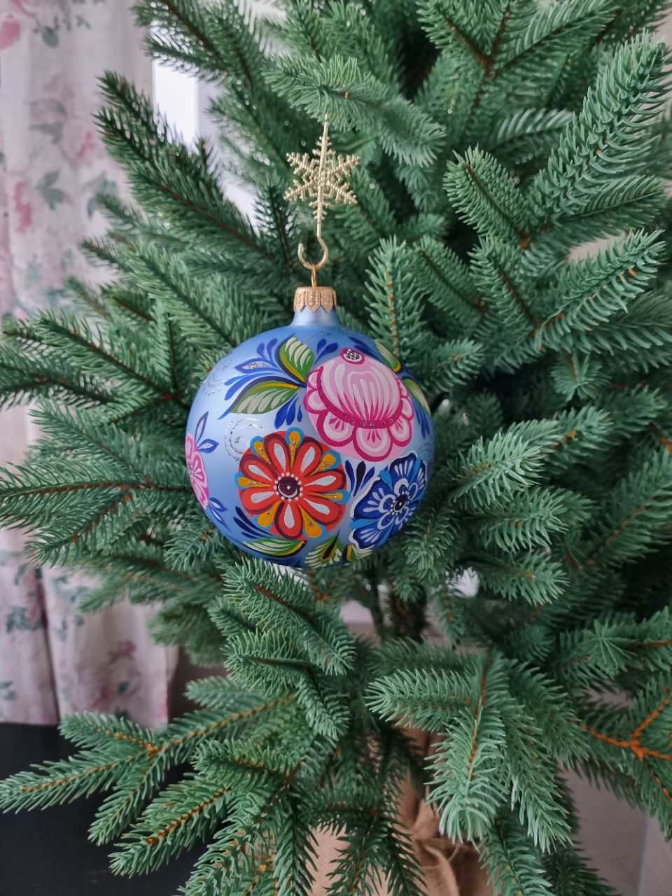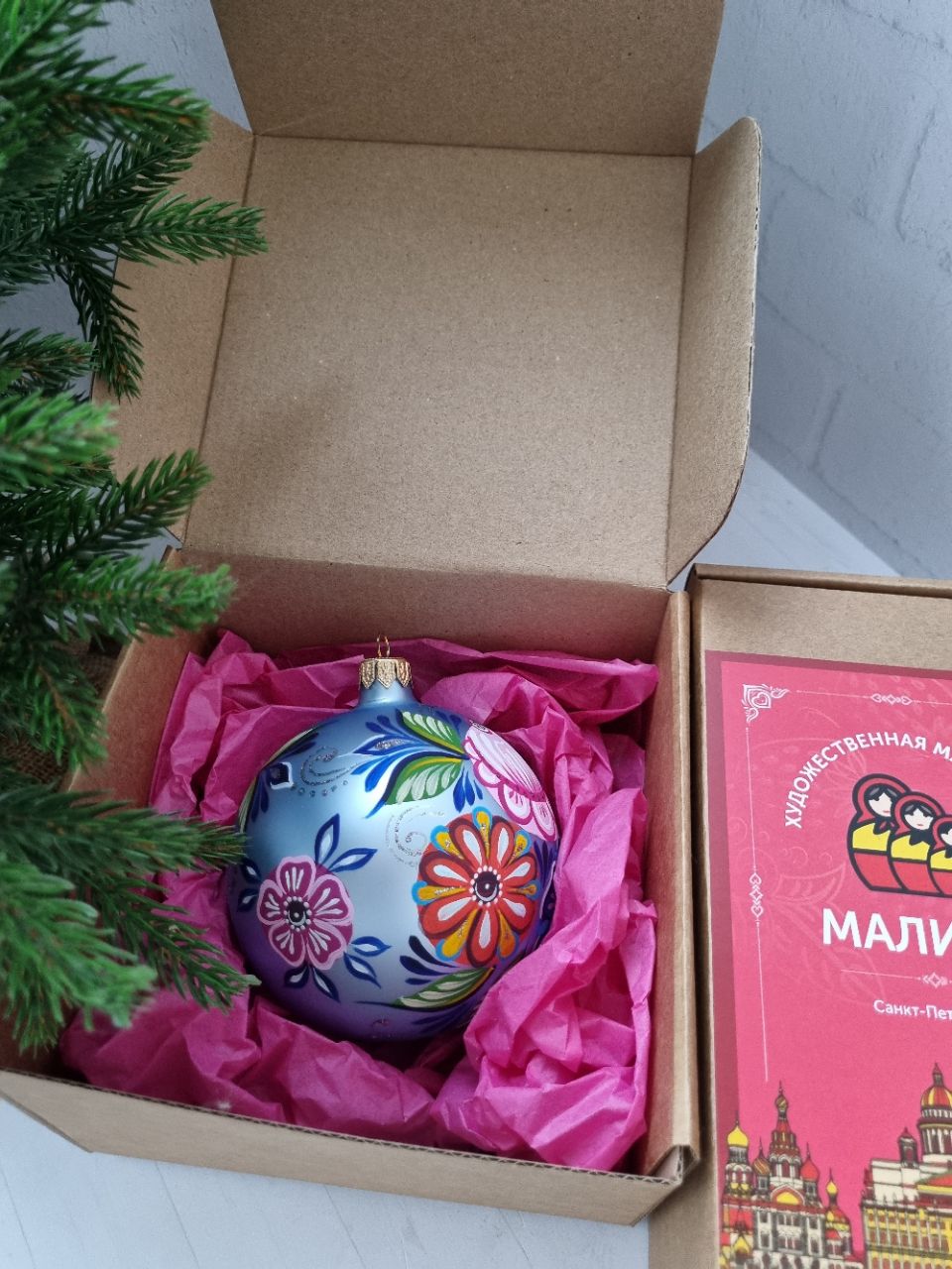 Шар стеклянный "Городецкая роспись, цветы" ручная работа