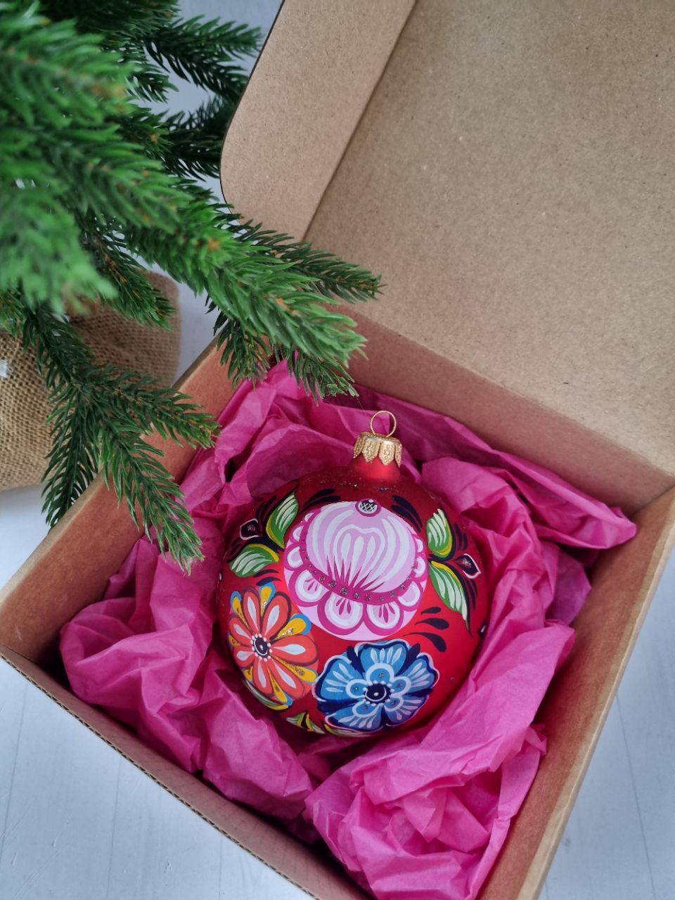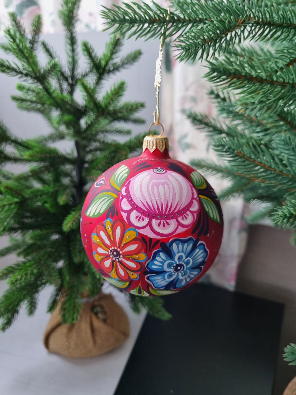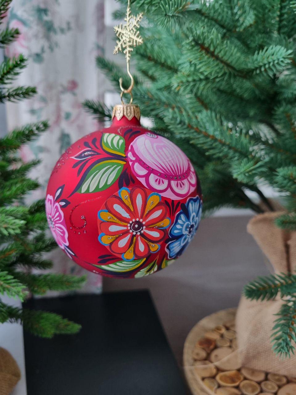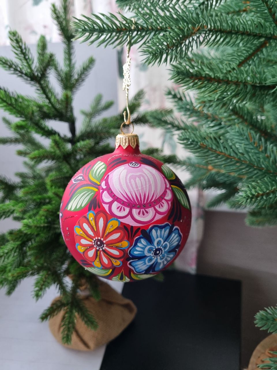 Шар стеклянный "Городецкая роспись" цветы, ручная работа