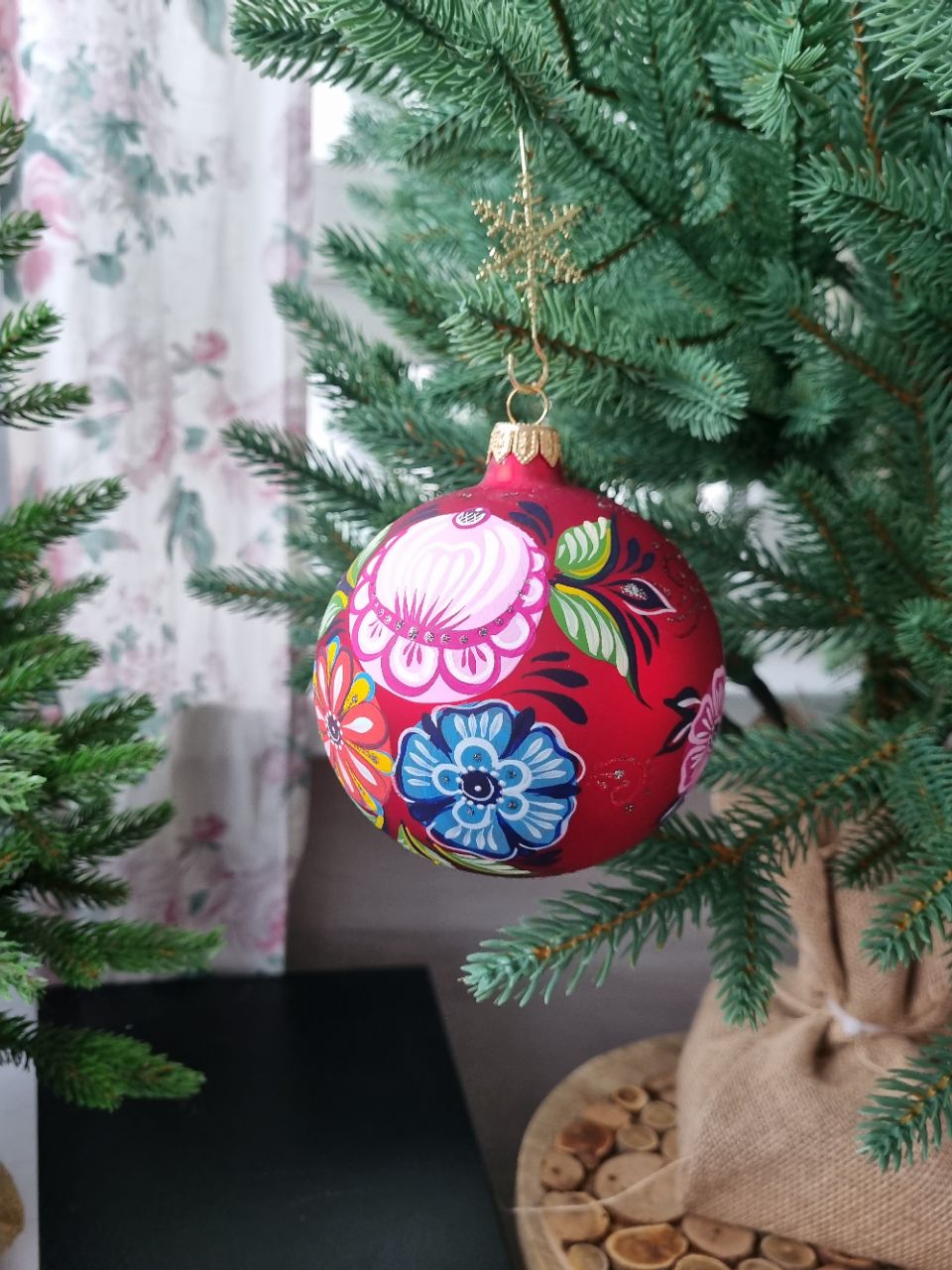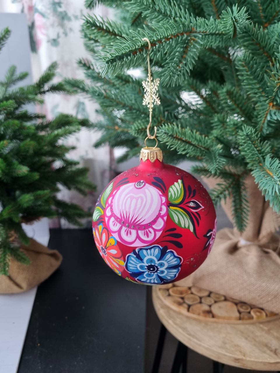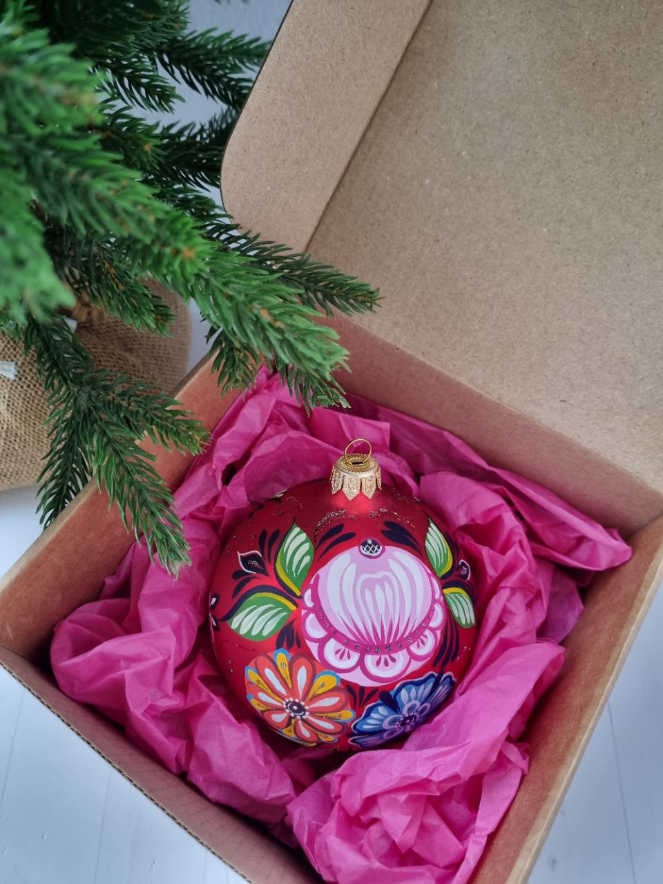 Шар стеклянный "Городецкая роспись" цветы, ручная работа