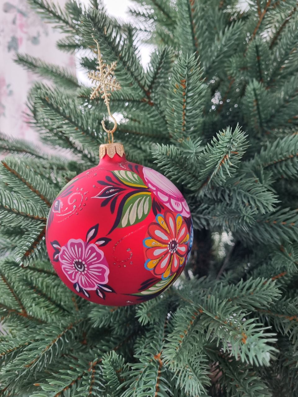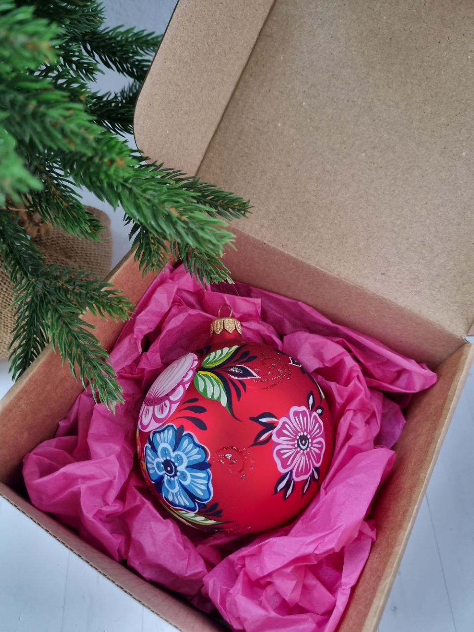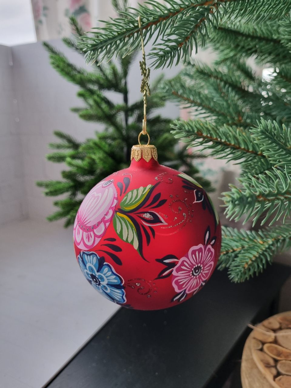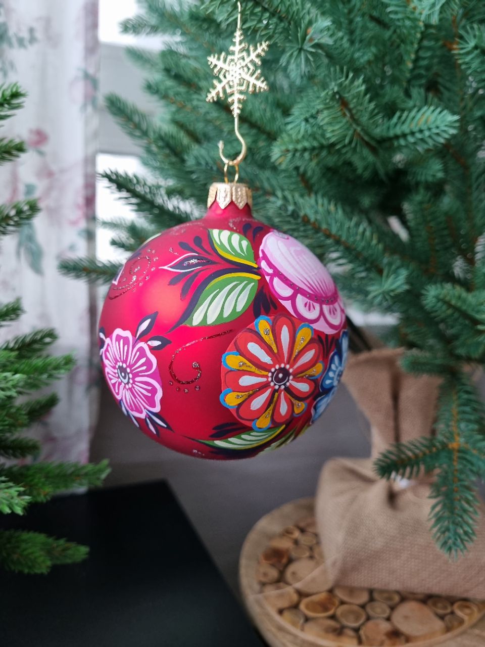 Шар стеклянный "Городецкая роспись" цветы, ручная работа