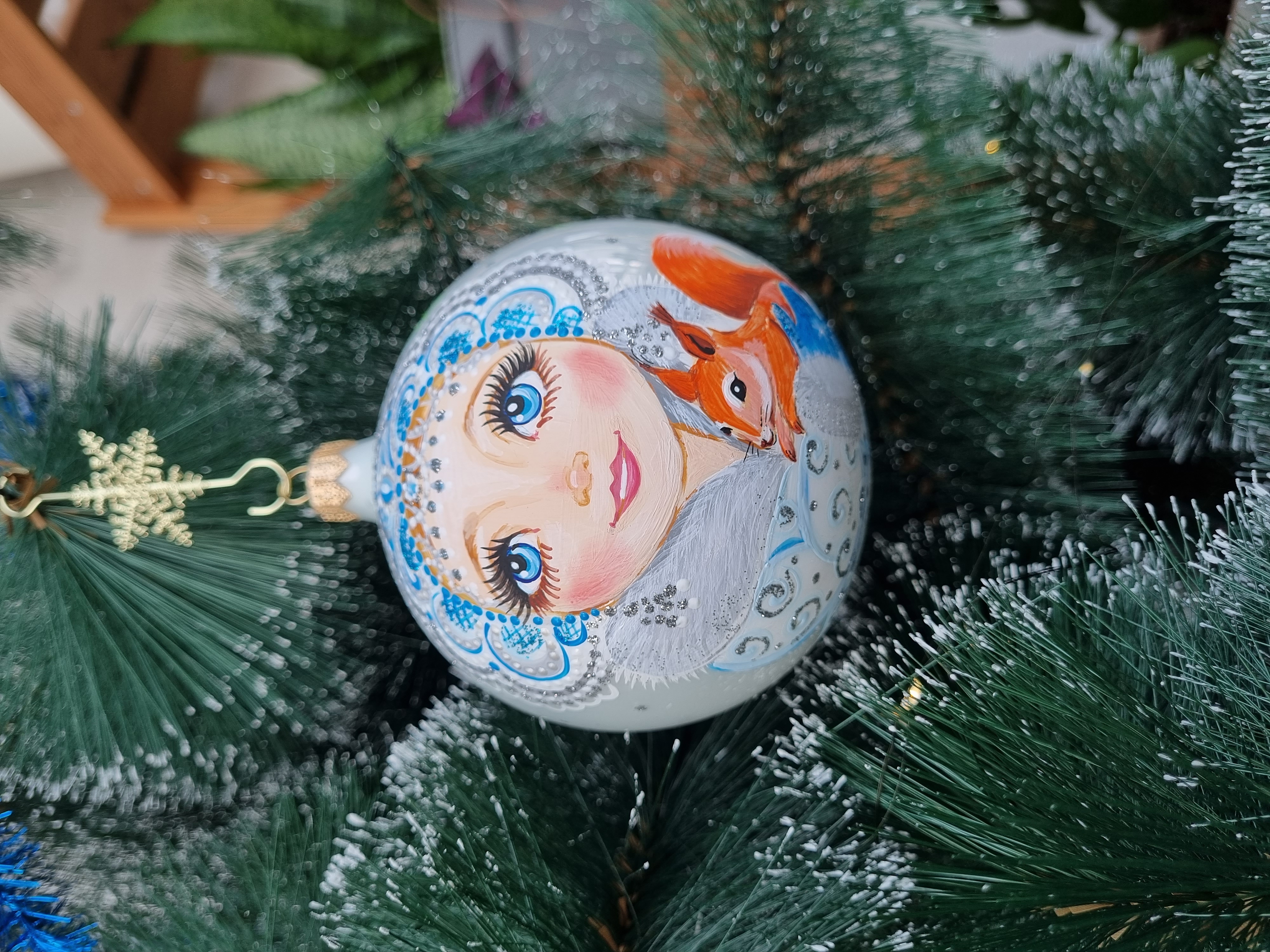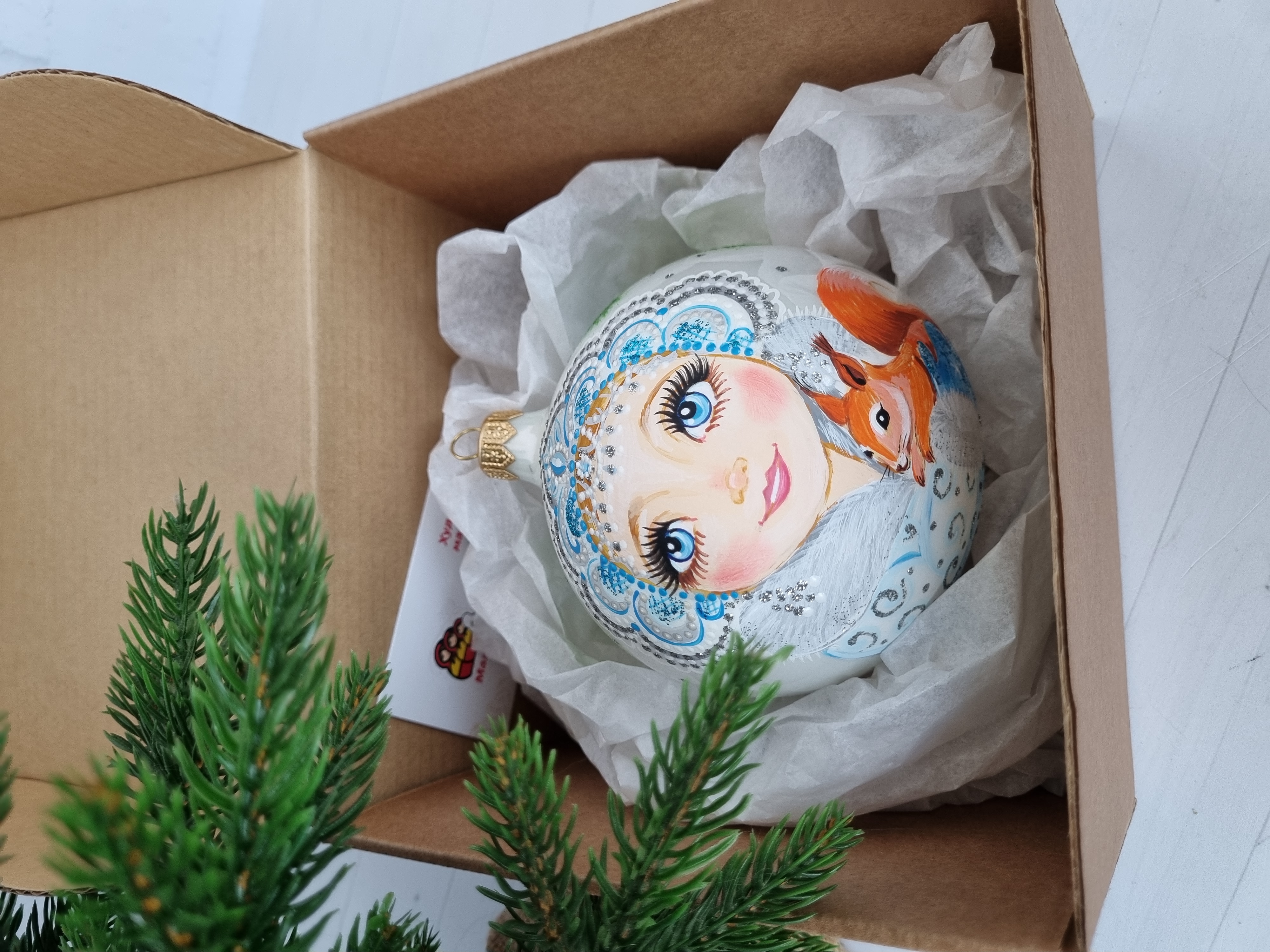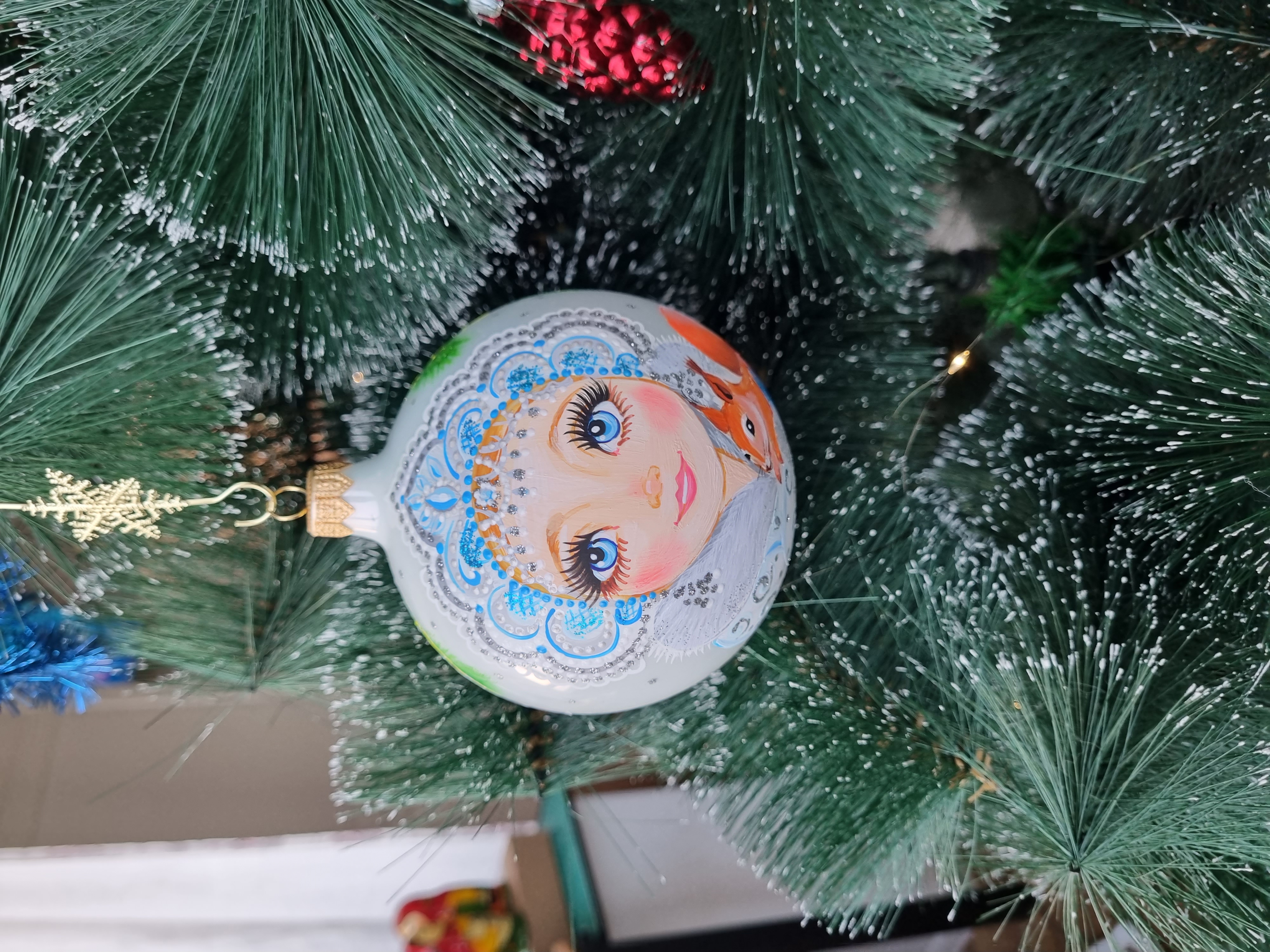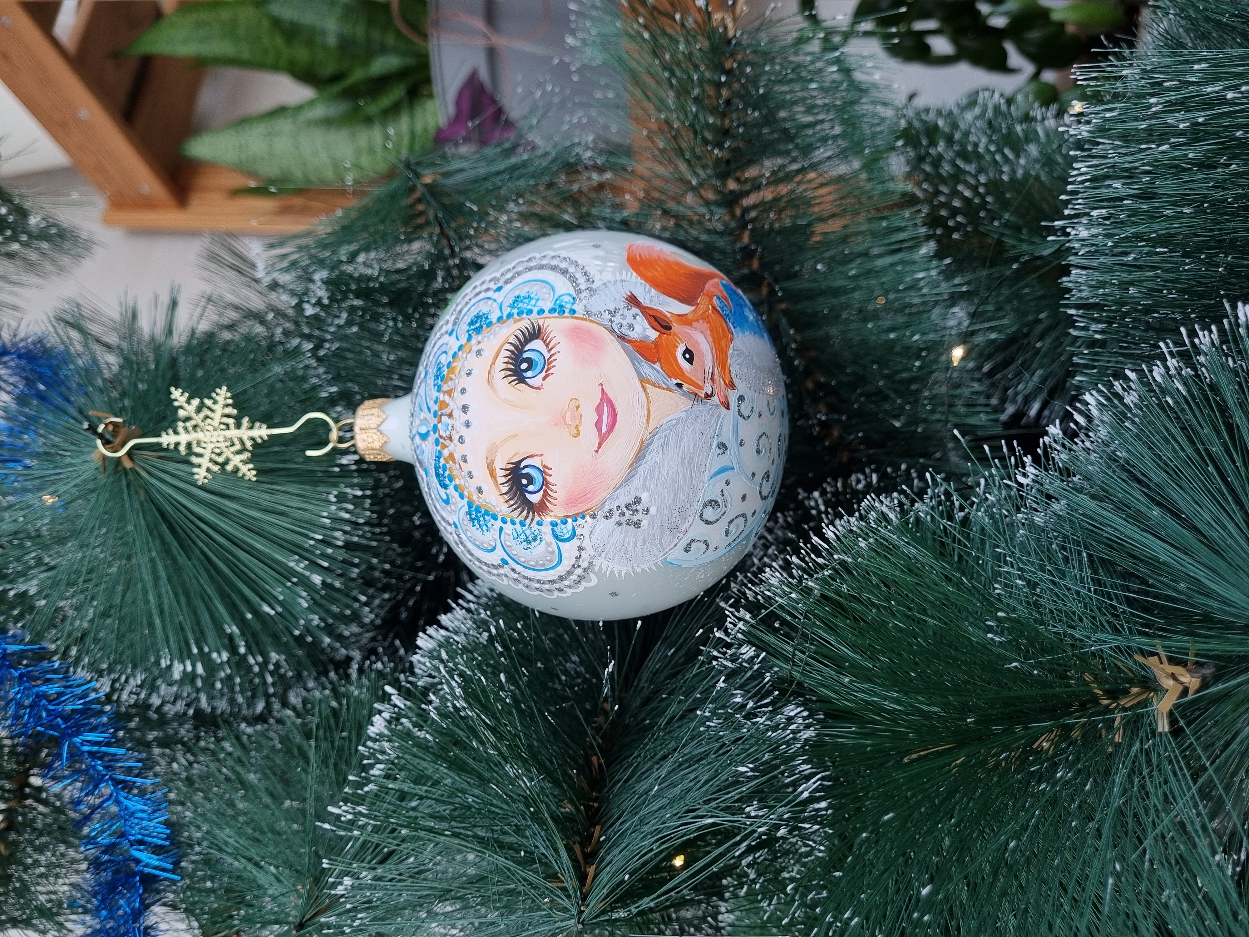 Шар стеклянный "снегурочка" из новогодней коллекции.