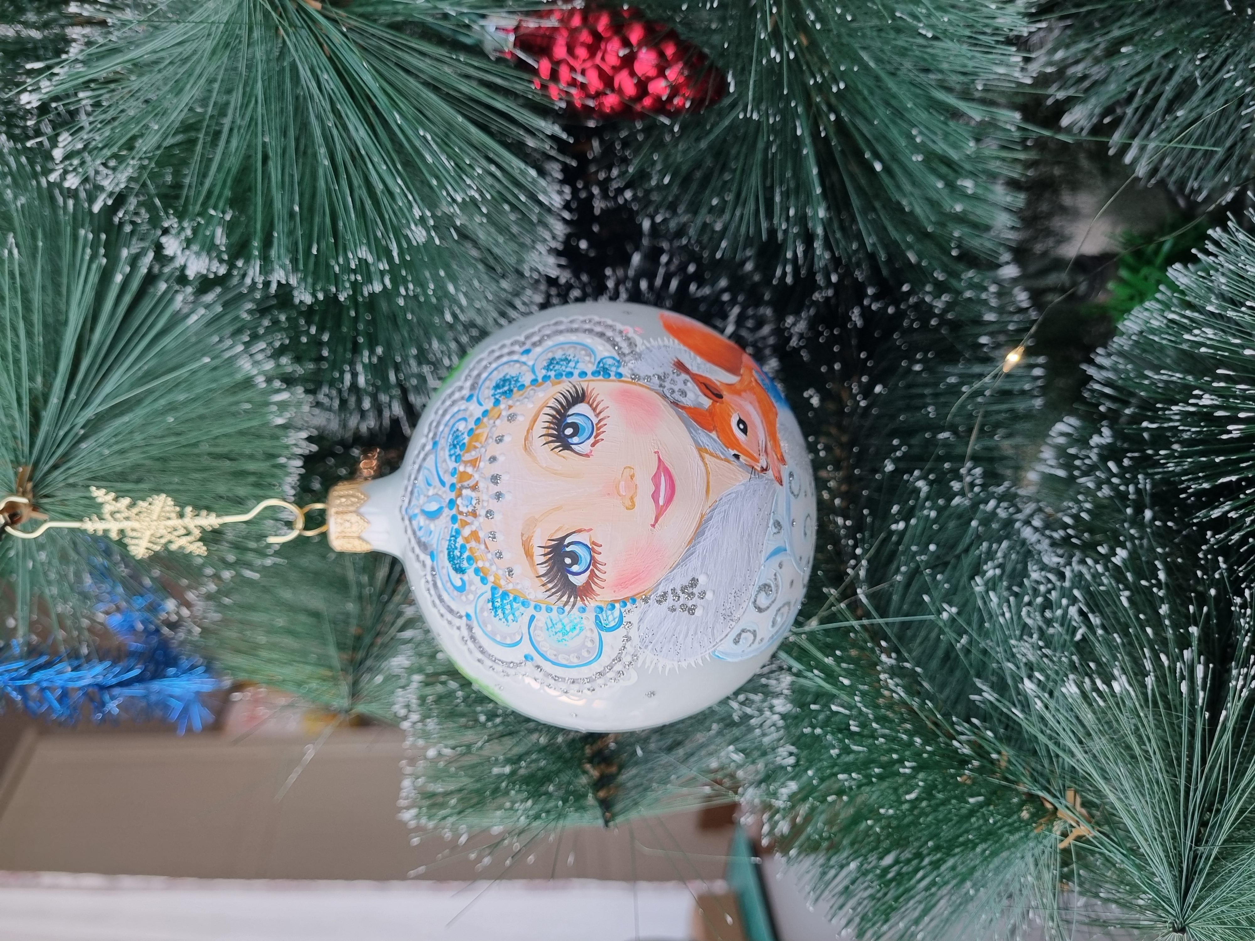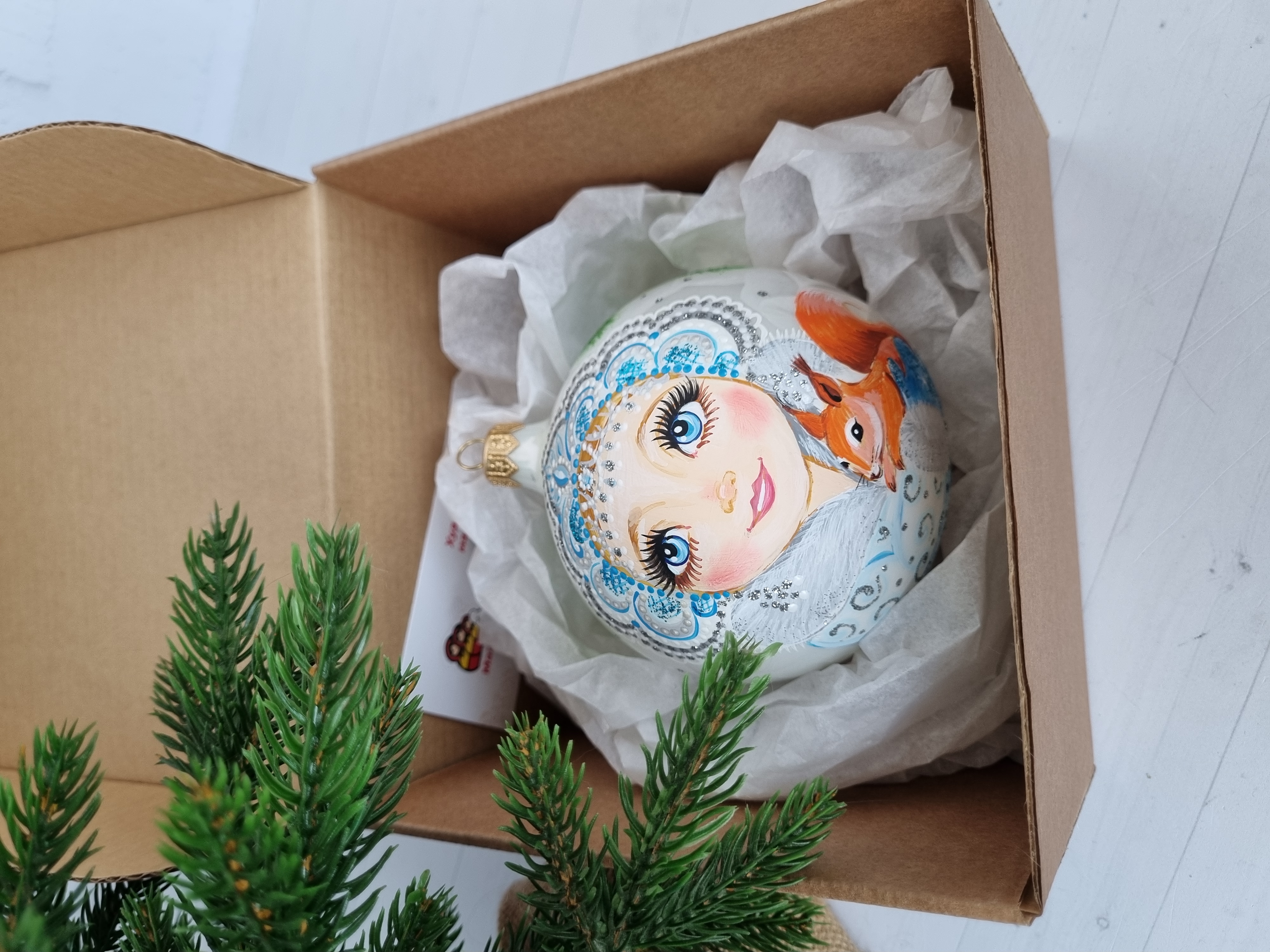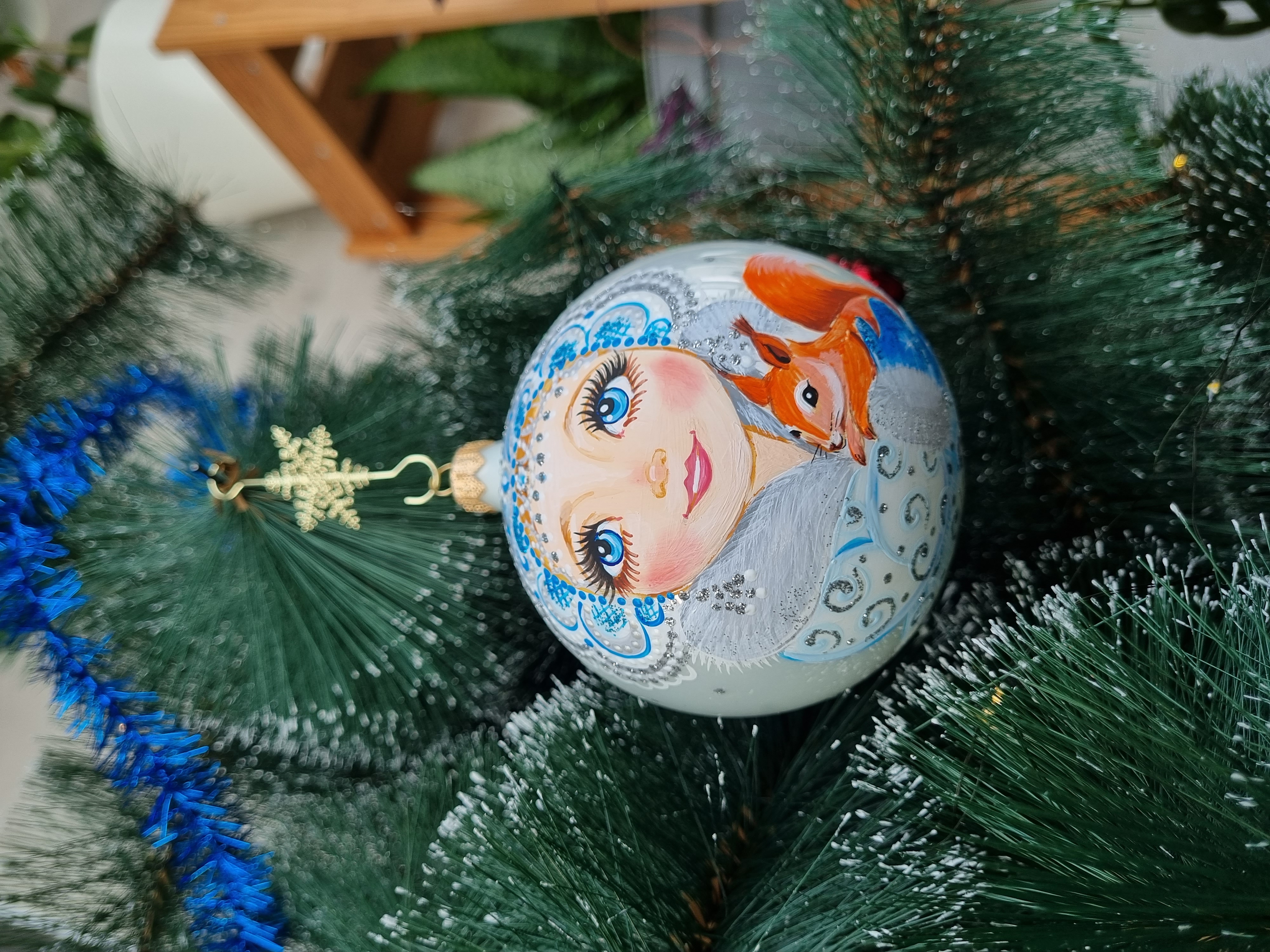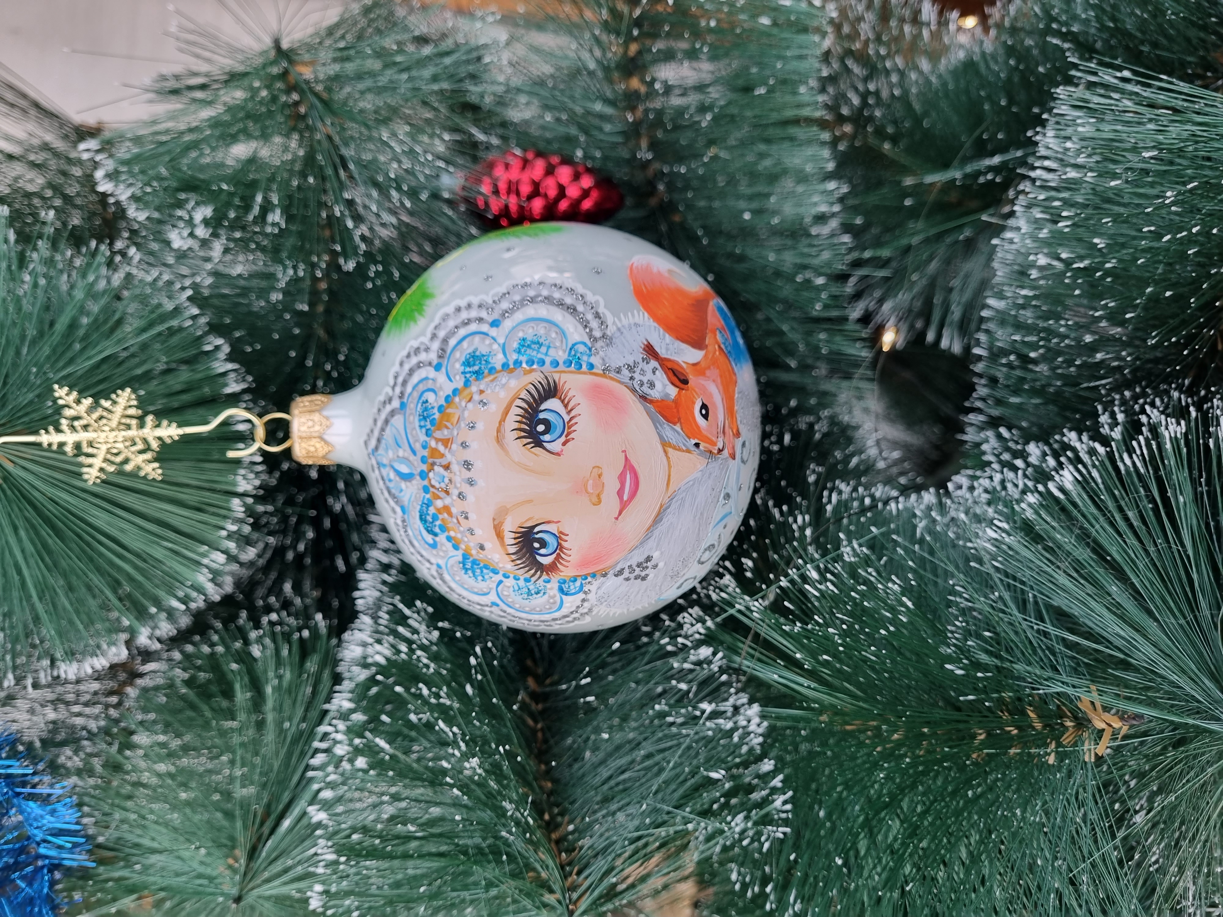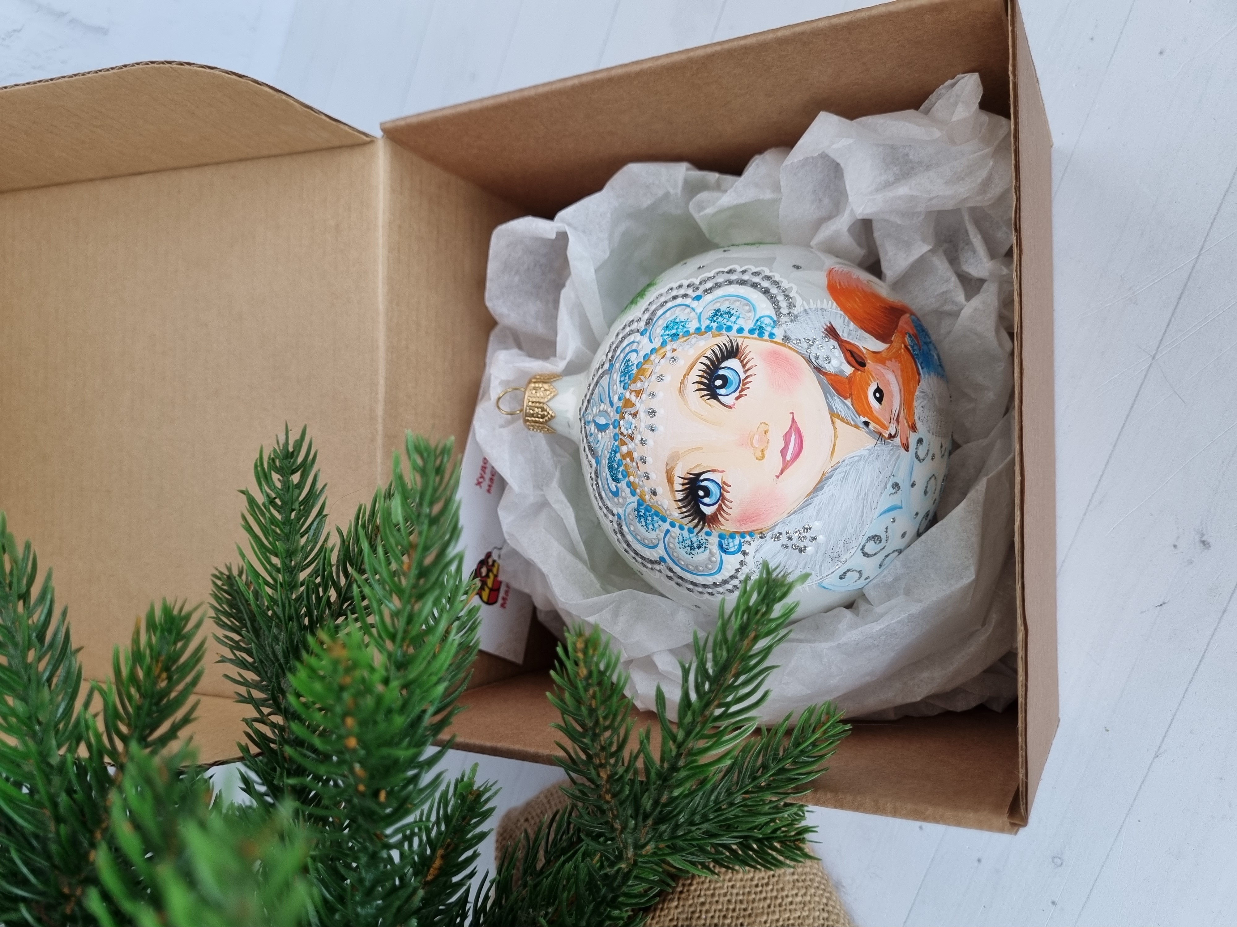 Шар стеклянный "снегурочка" из новогодней коллекции.