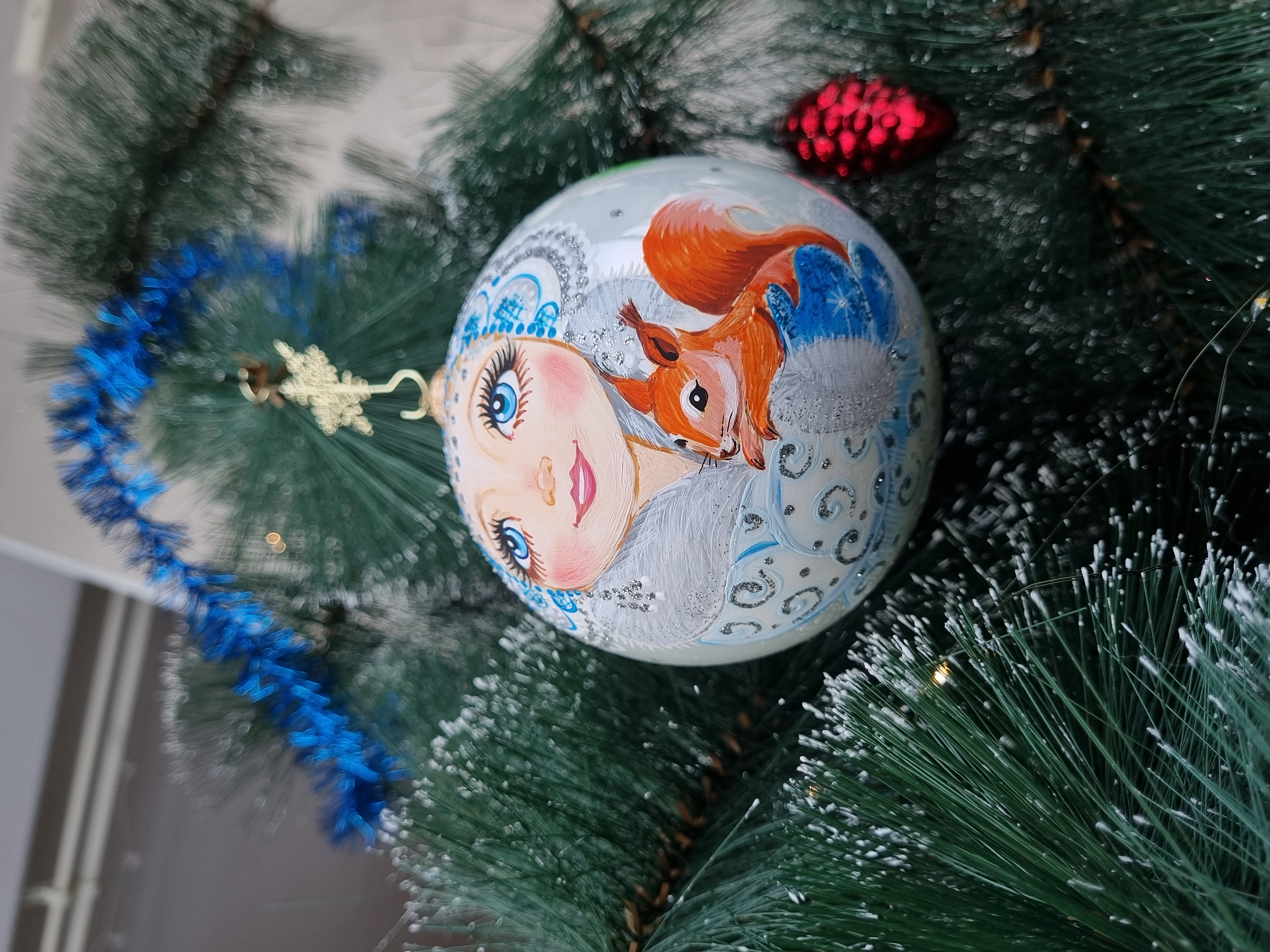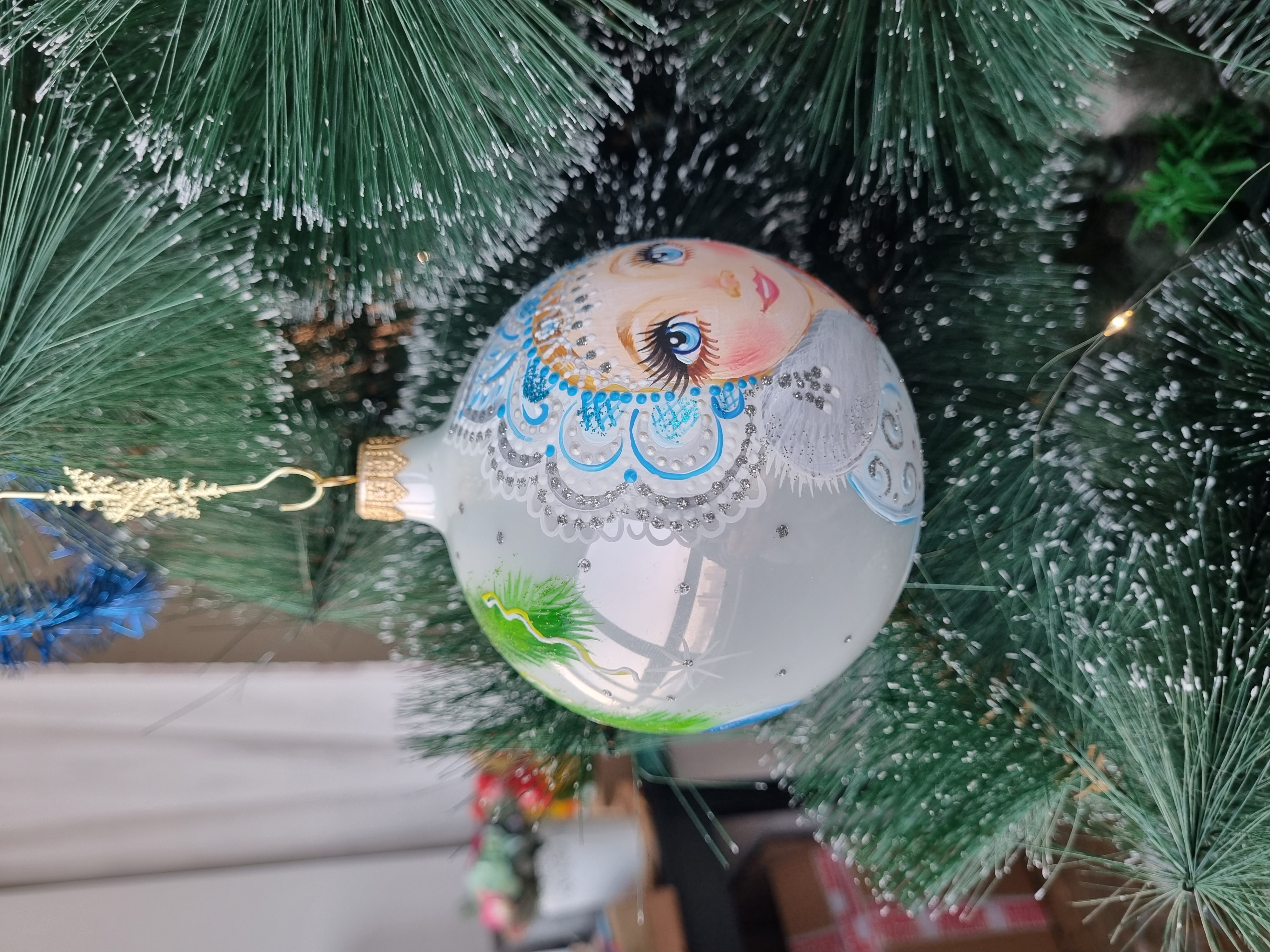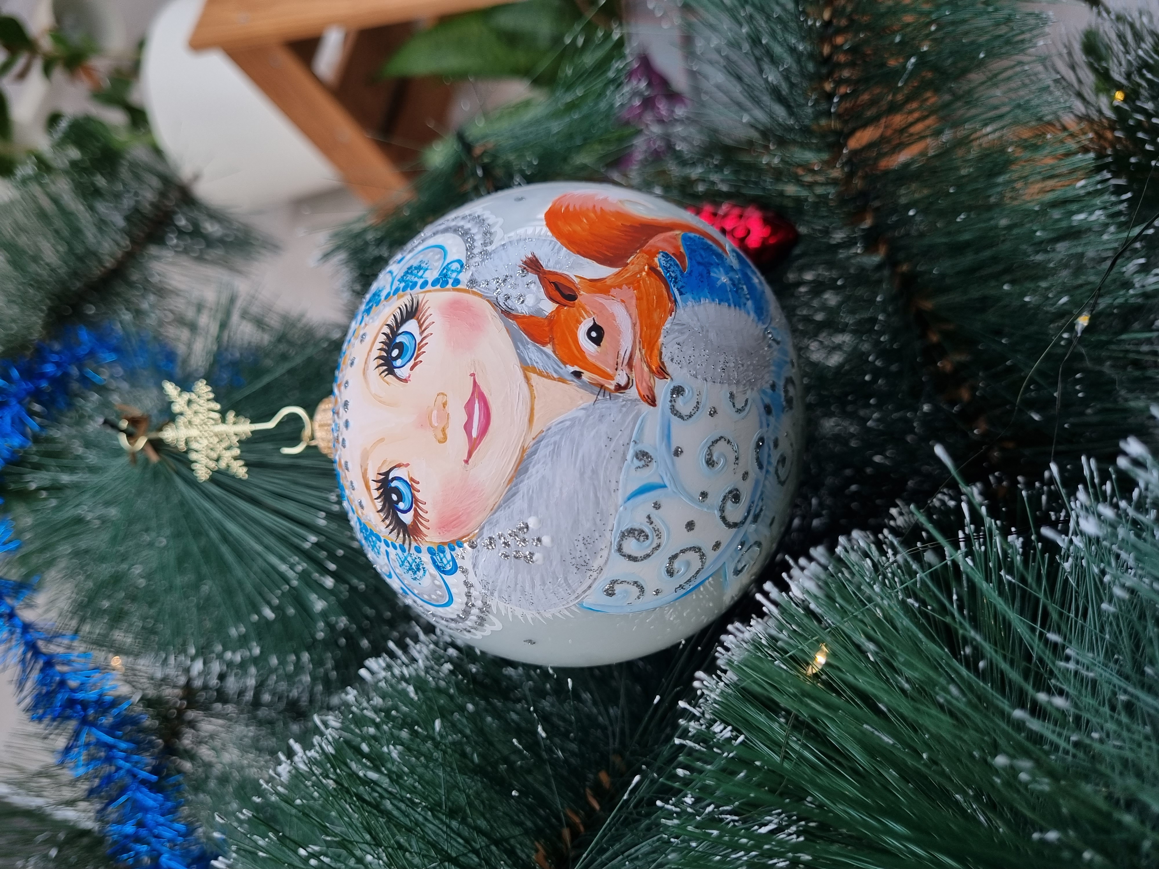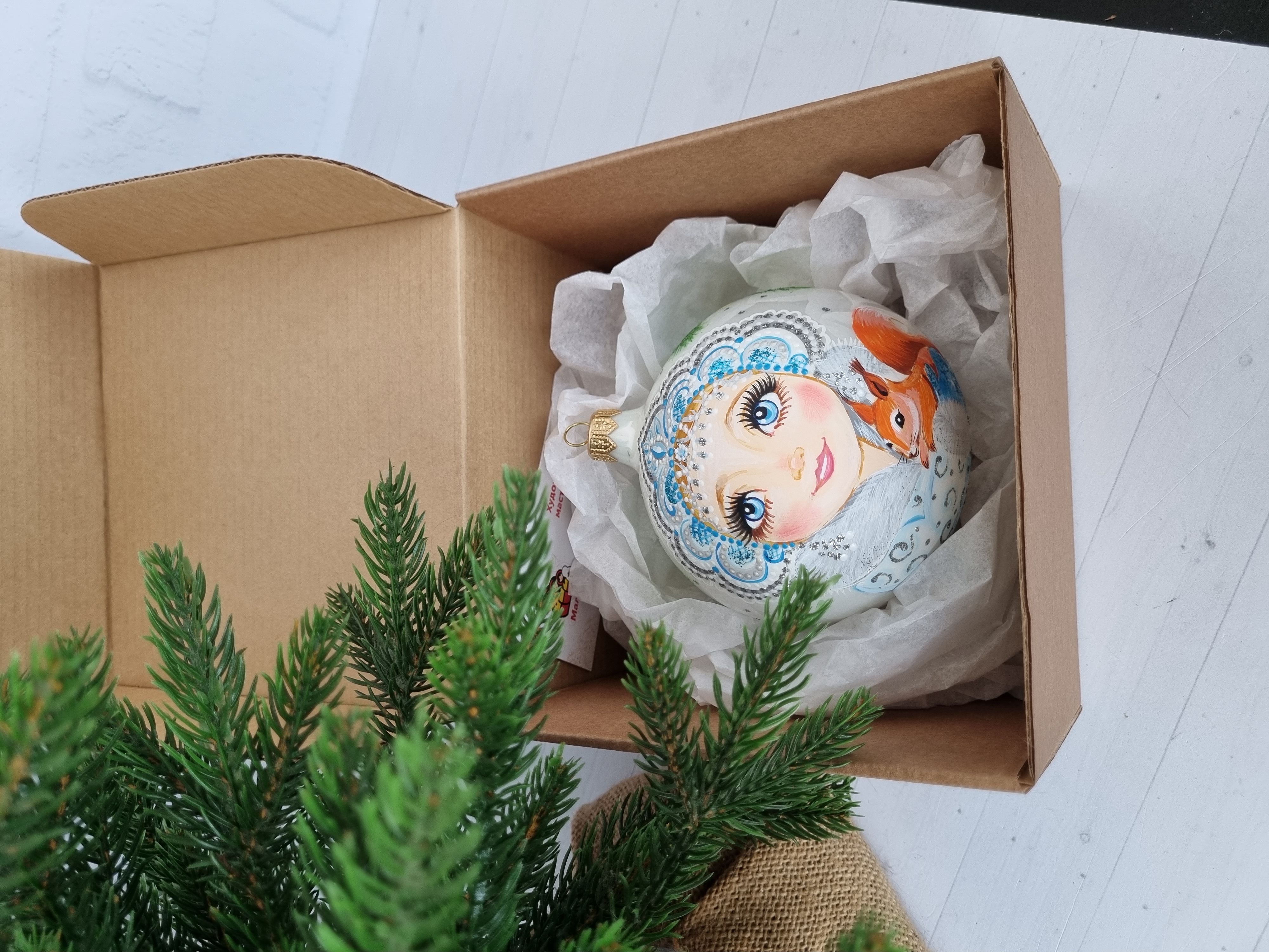 Шар стеклянный "снегурочка" из новогодней коллекции.