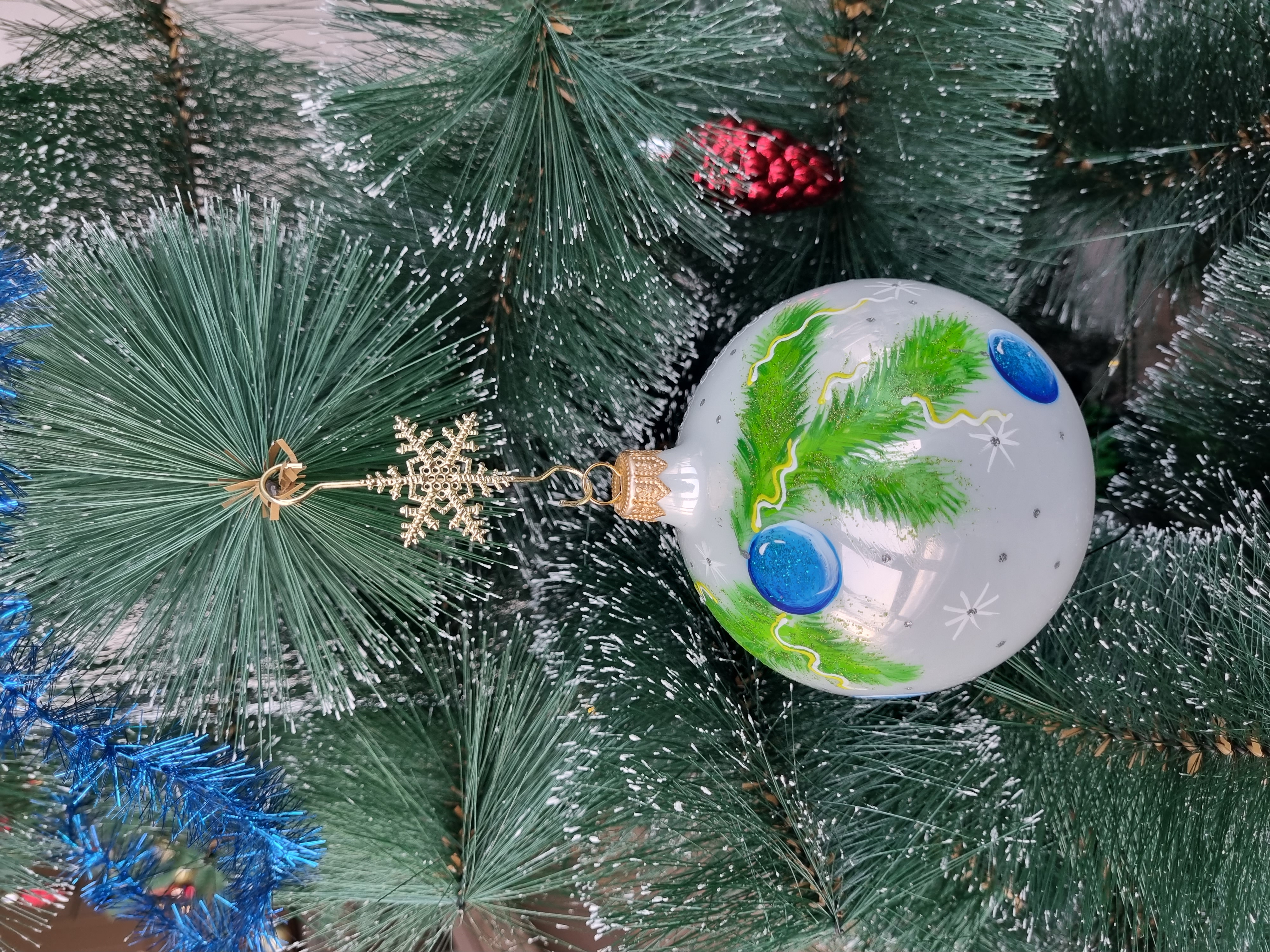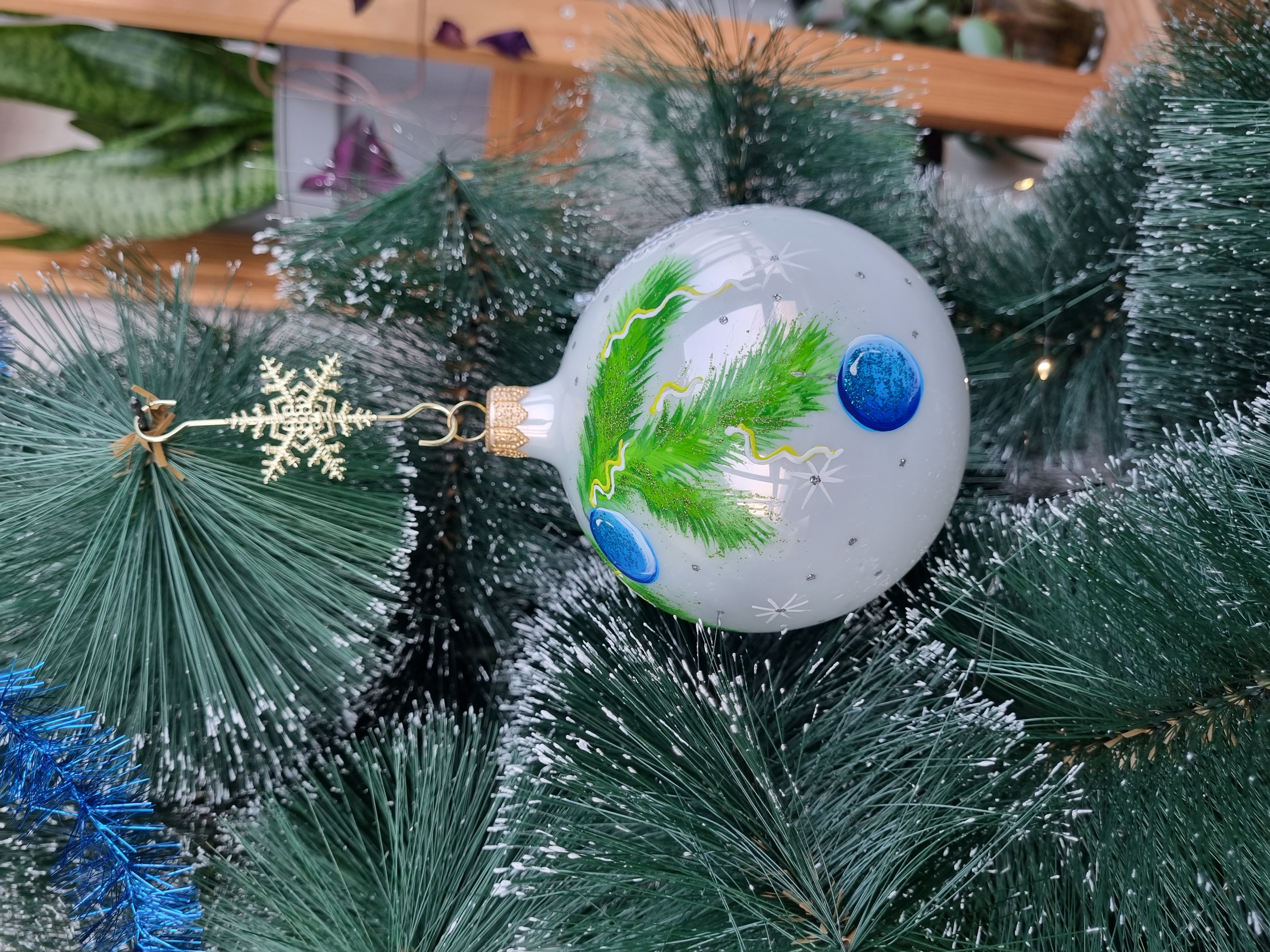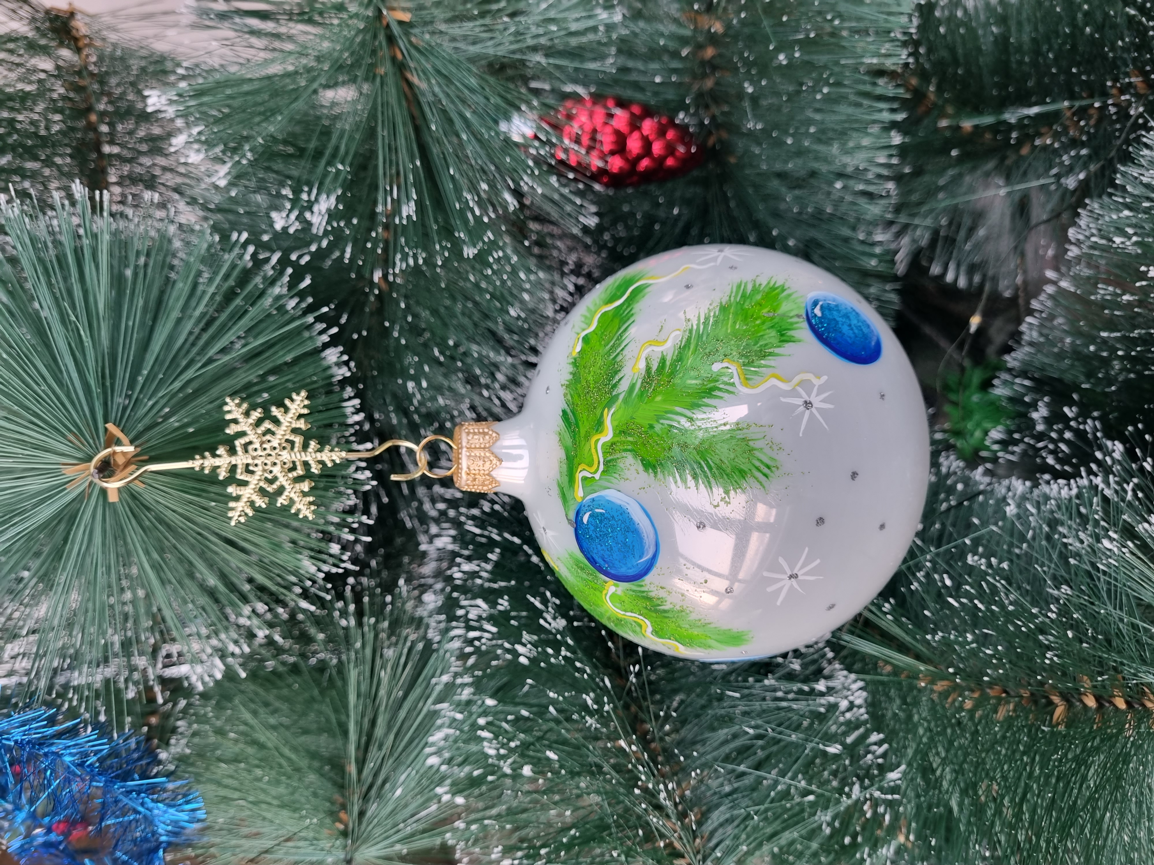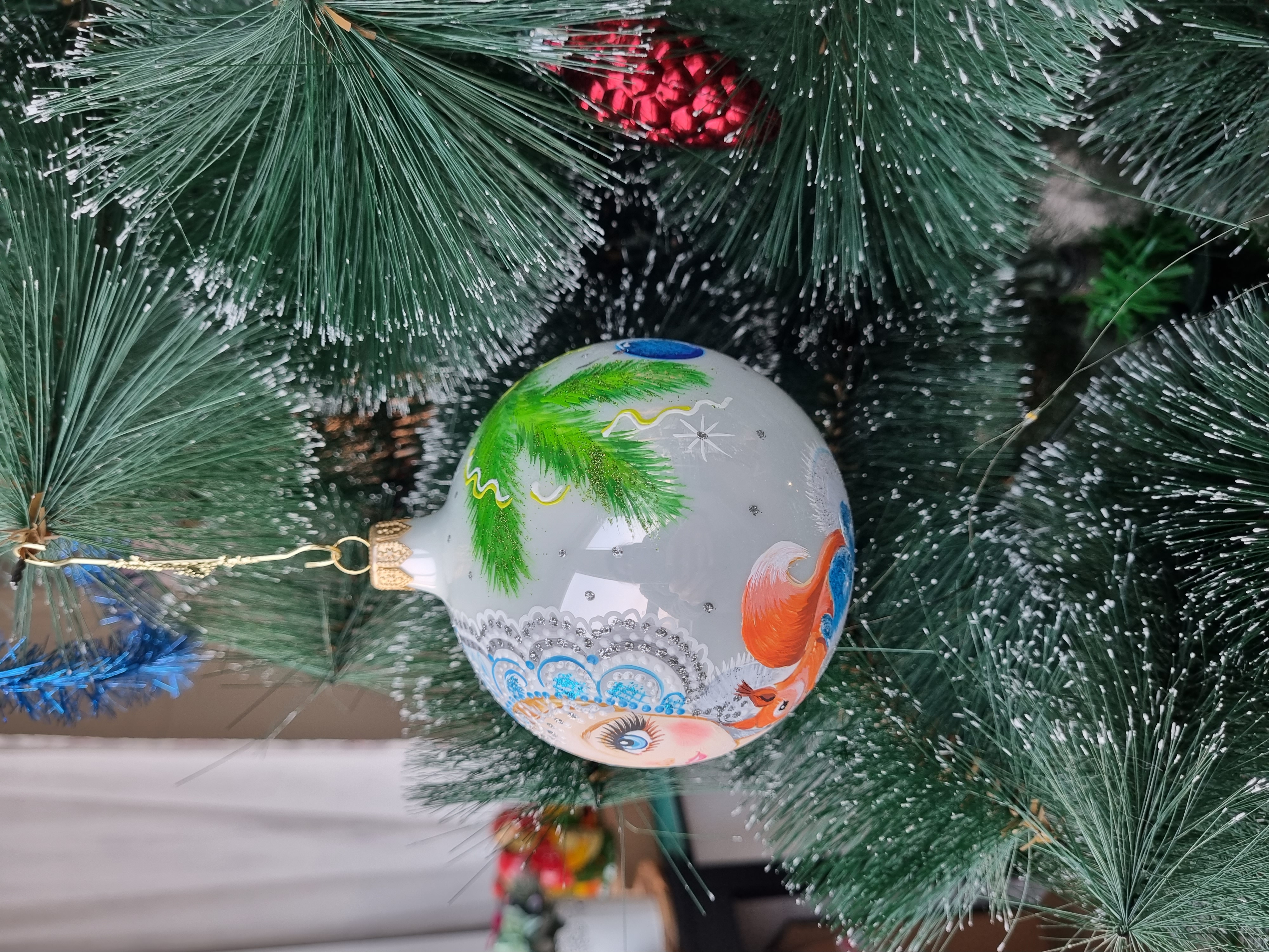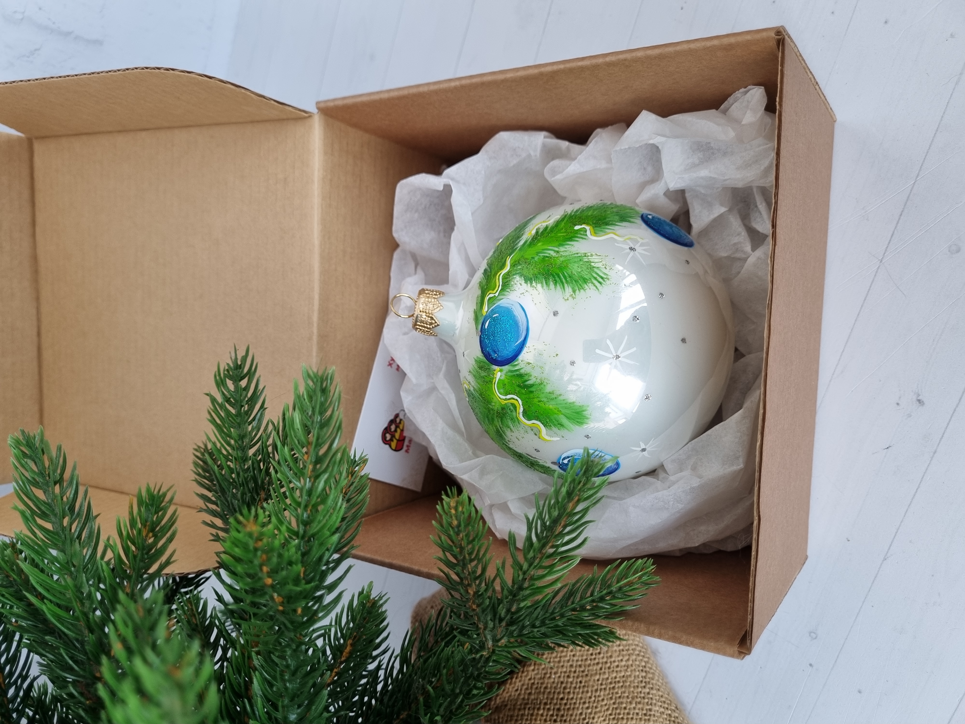 Шар стеклянный "снегурочка" из новогодней коллекции.