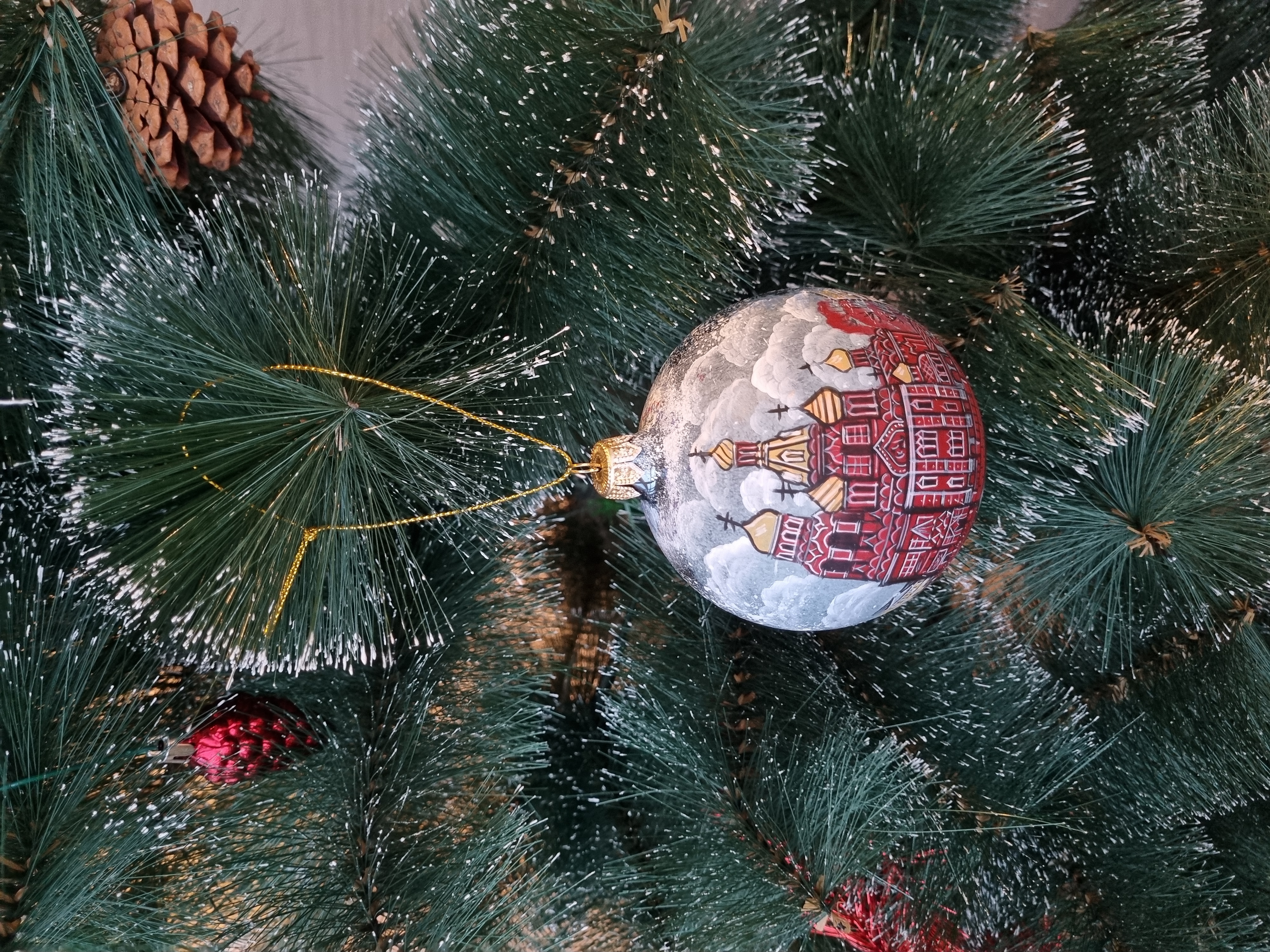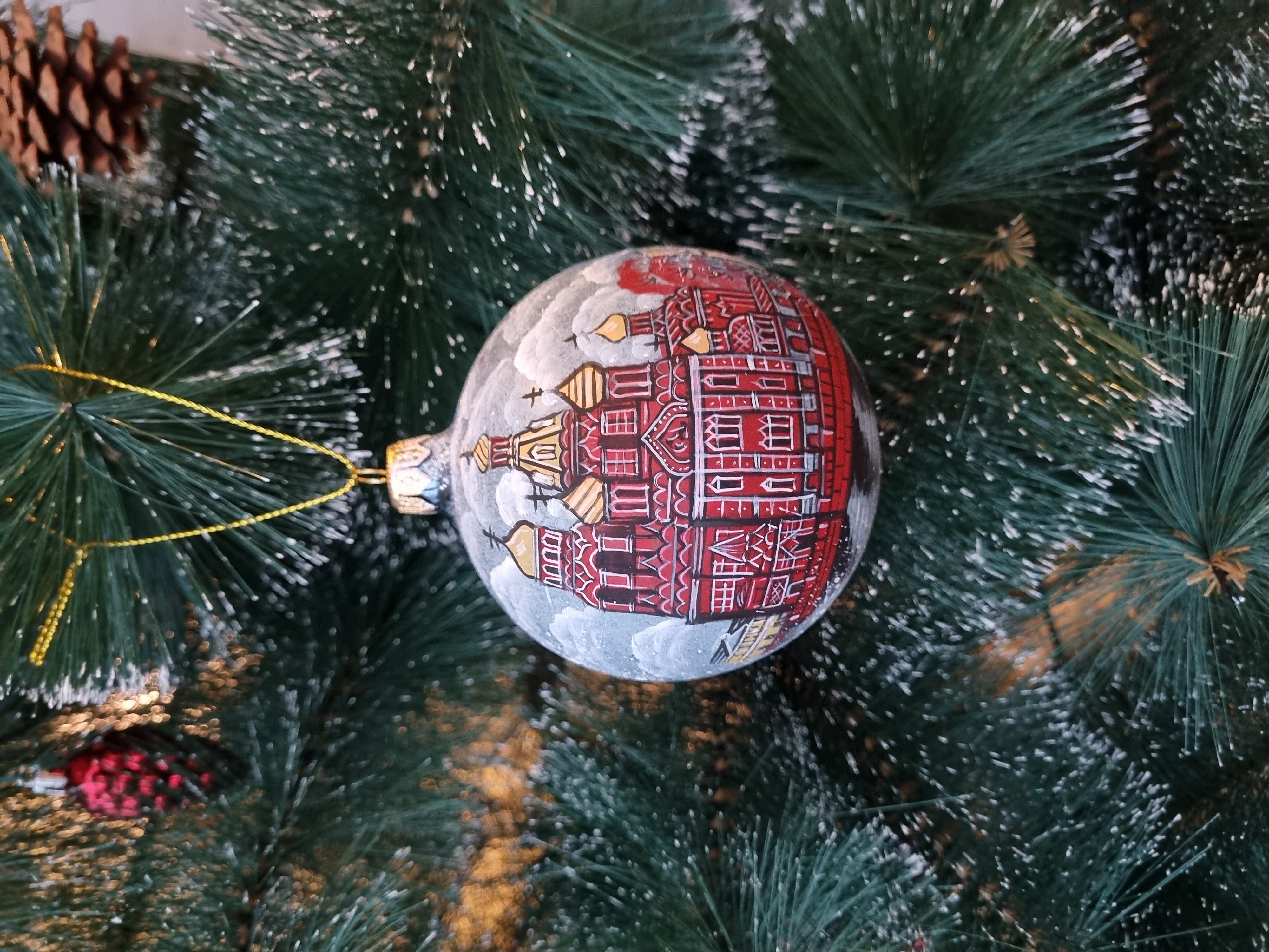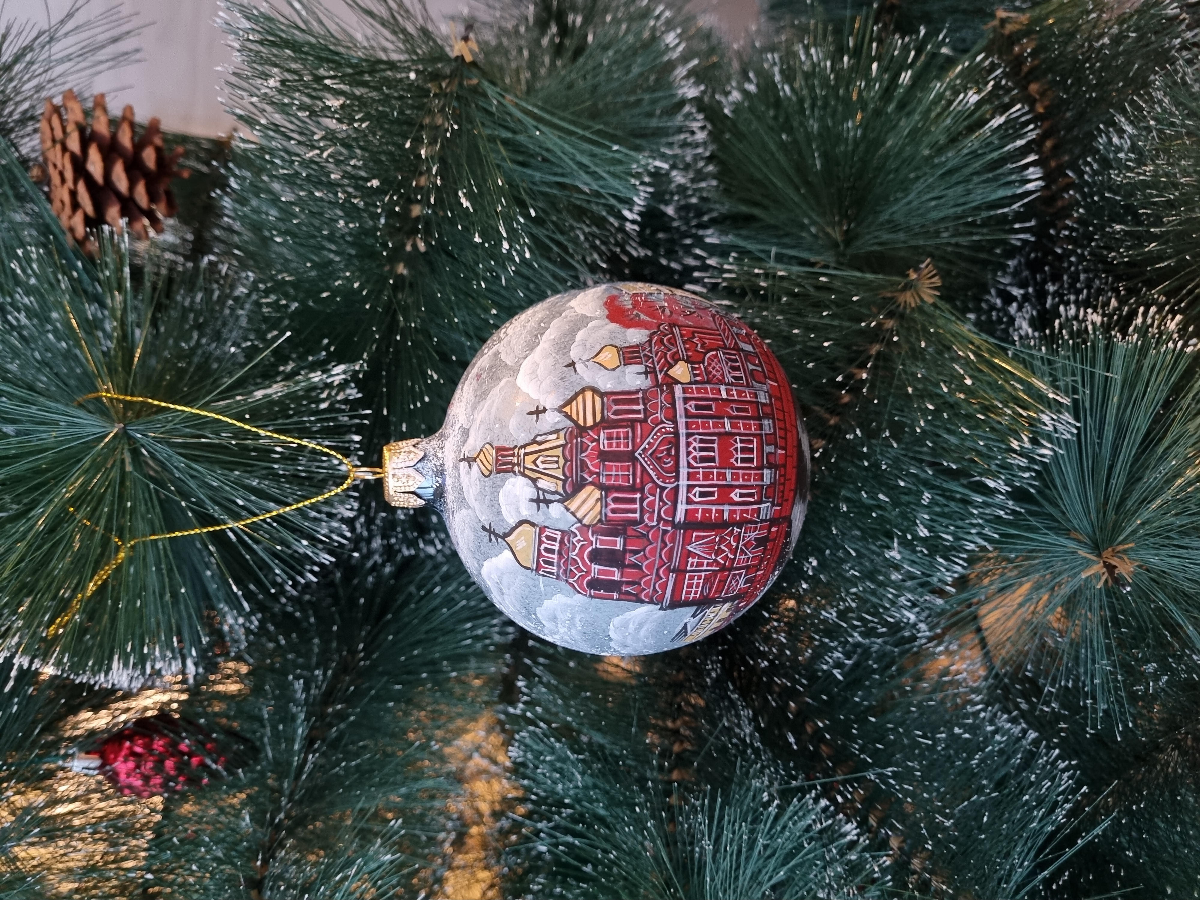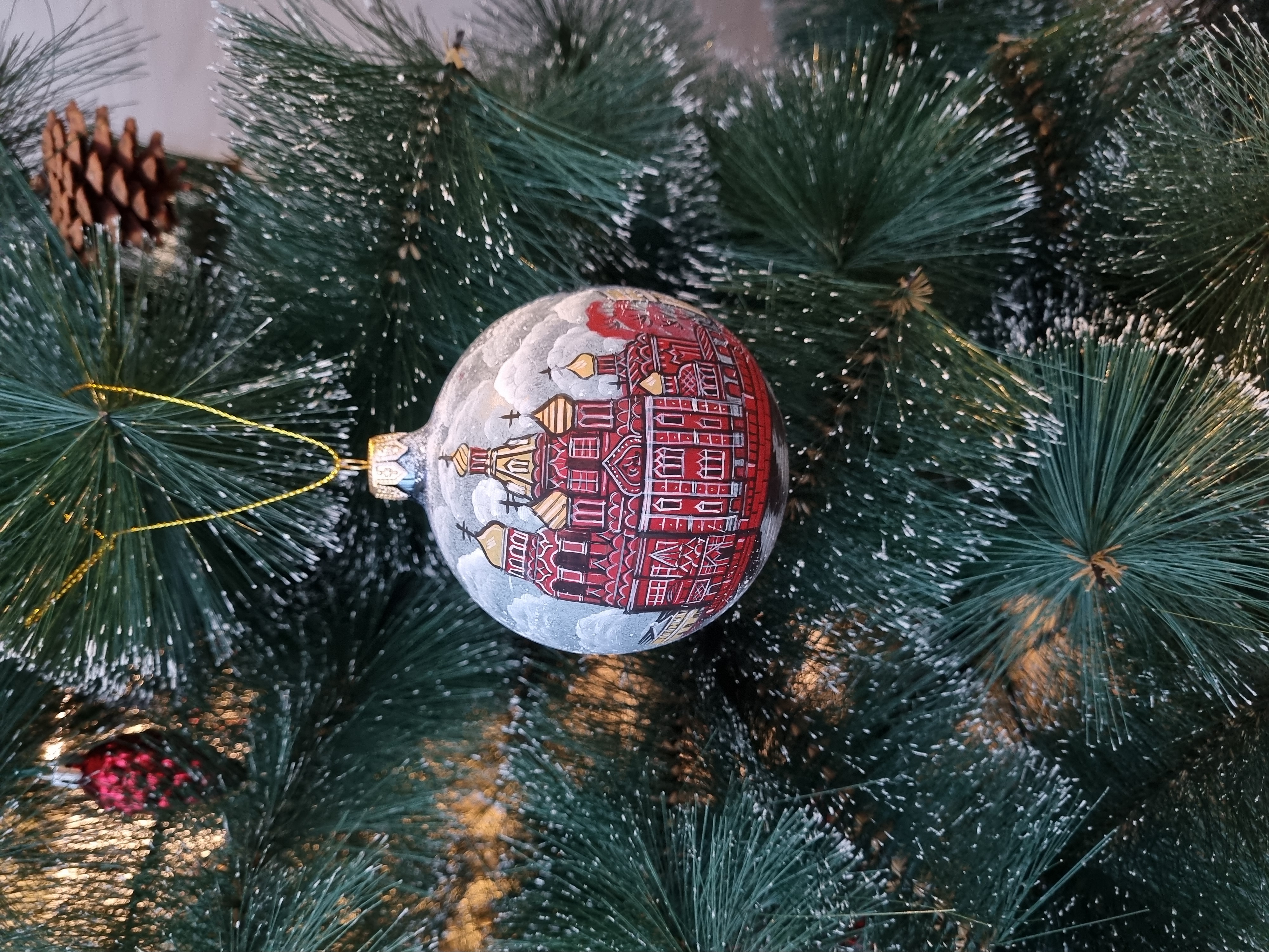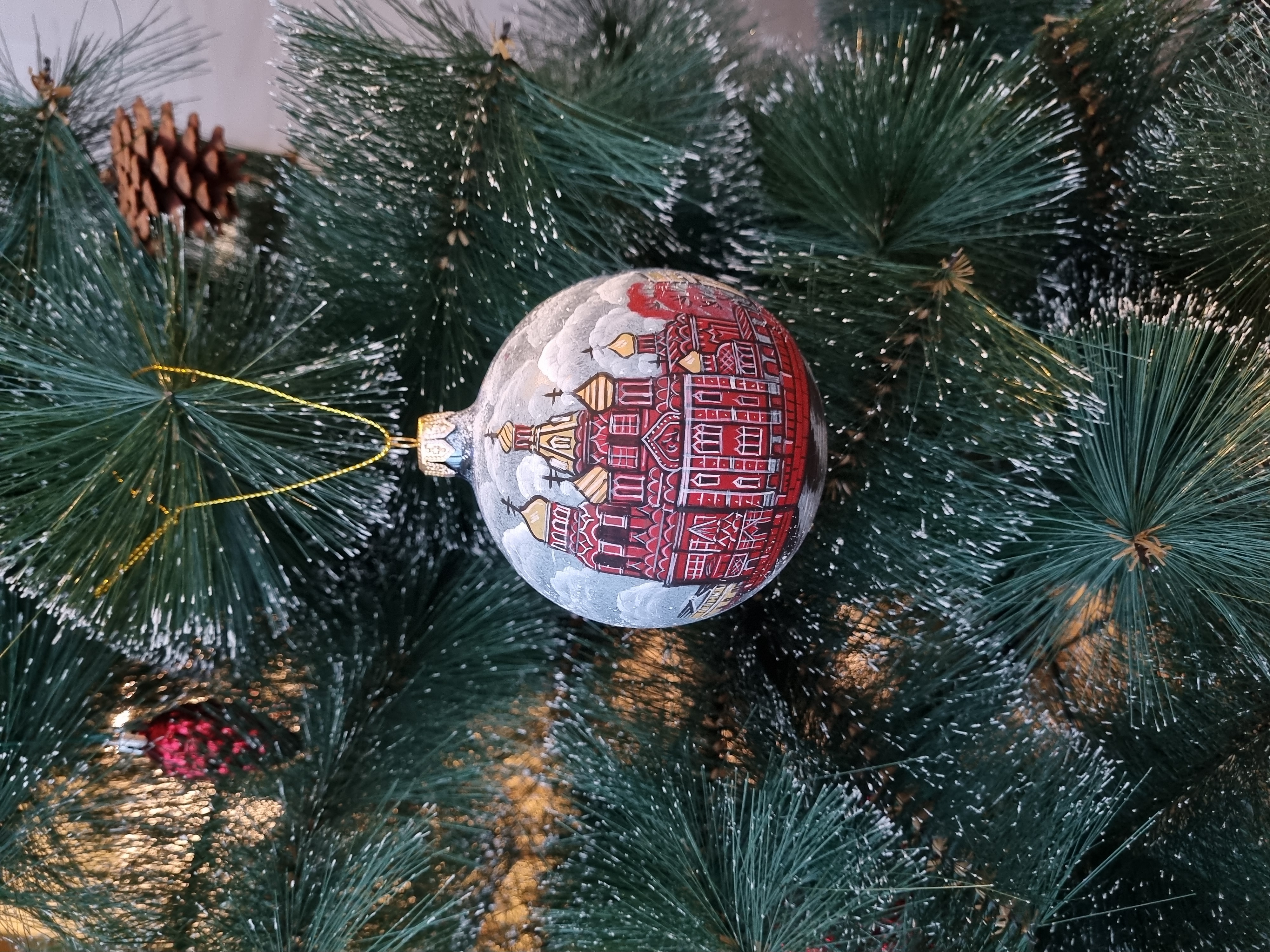 Шар стеклянный "Спас на крови", ручная роспись